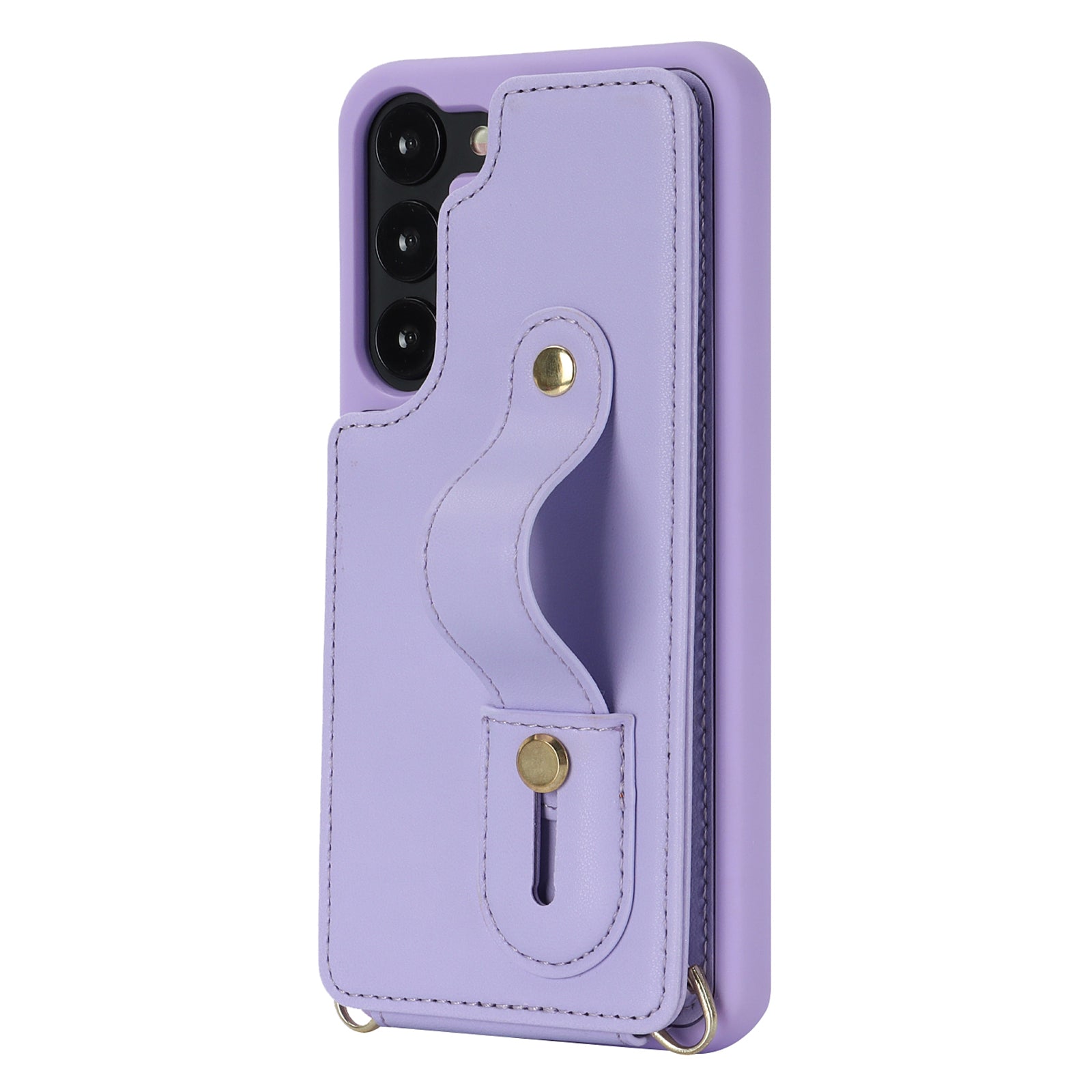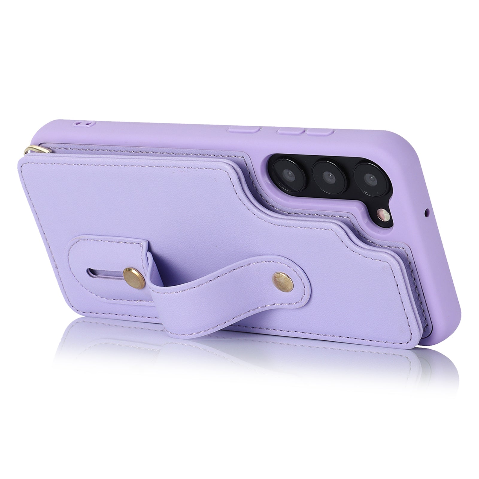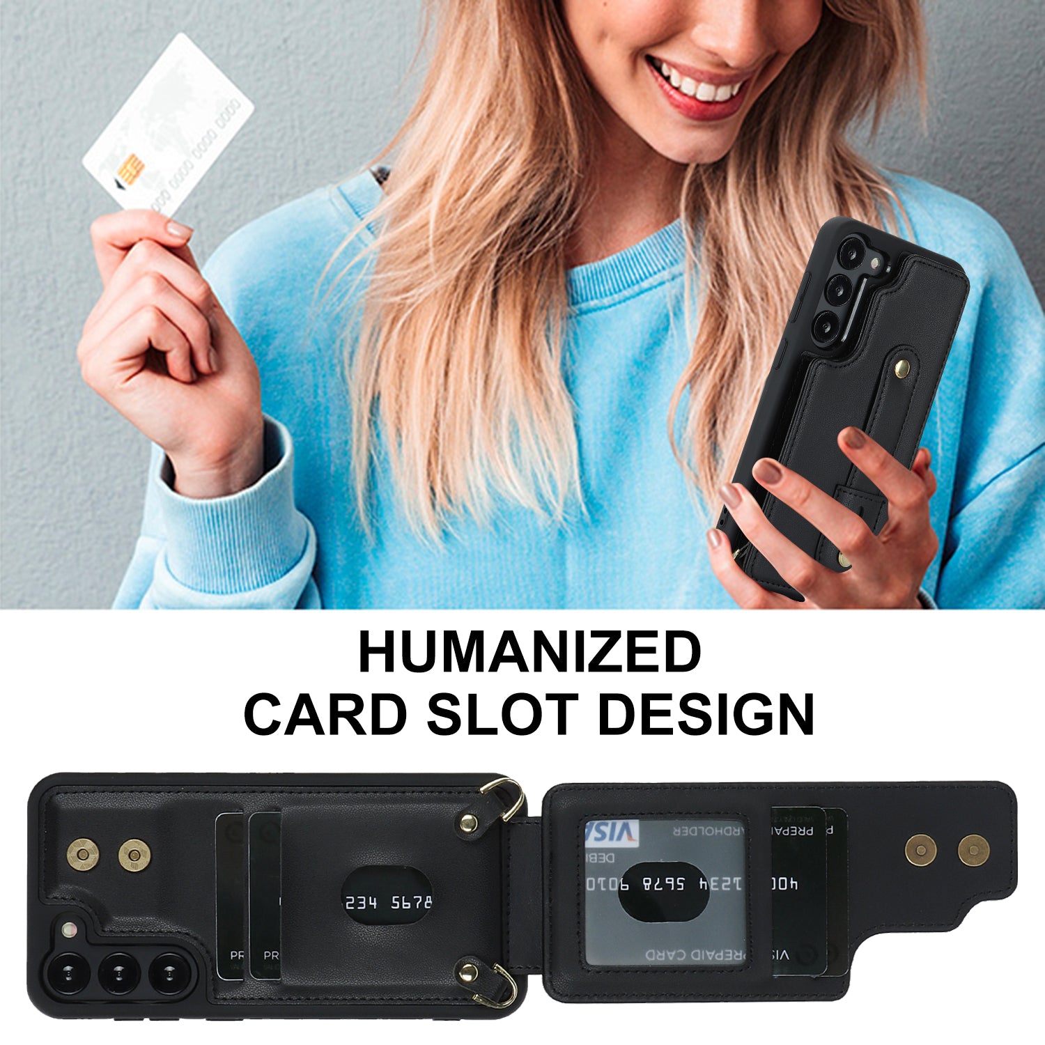 For Samsung Galaxy S22+ 5G Wristband Kickstand Phone Cover Card Slots Leather+TPU Case