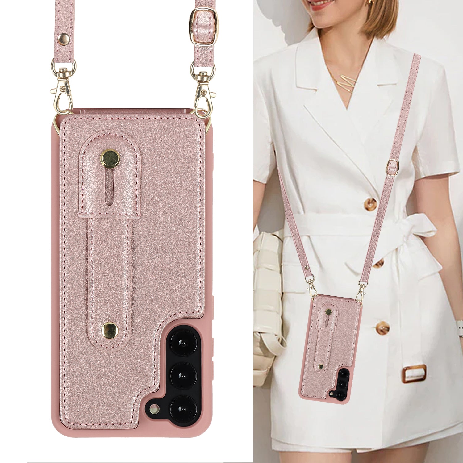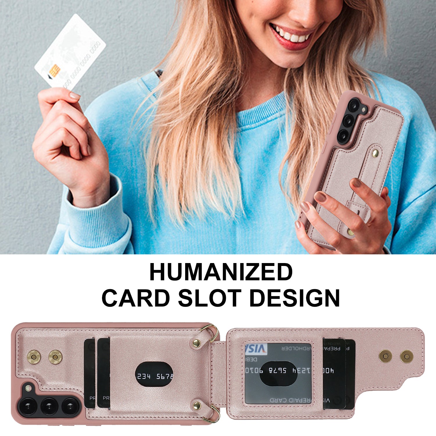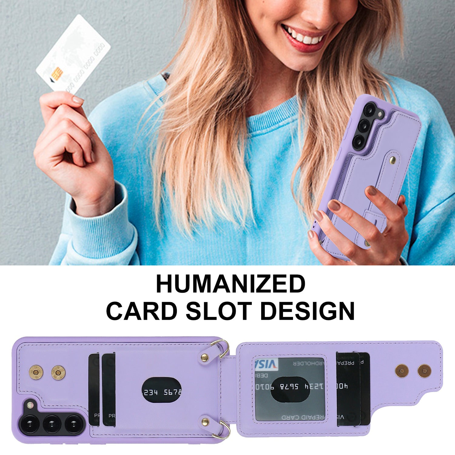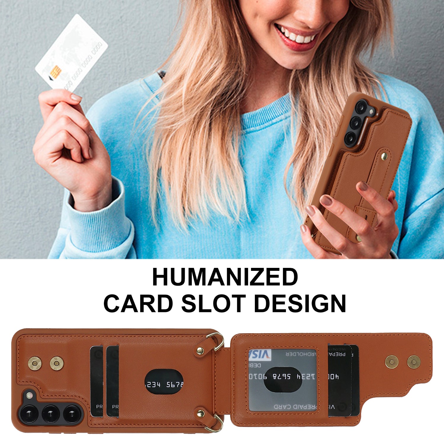 For Samsung Galaxy S22+ 5G Wristband Kickstand Phone Cover Card Slots Leather+TPU Case
