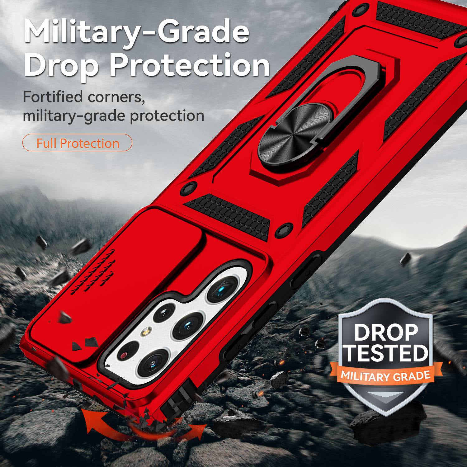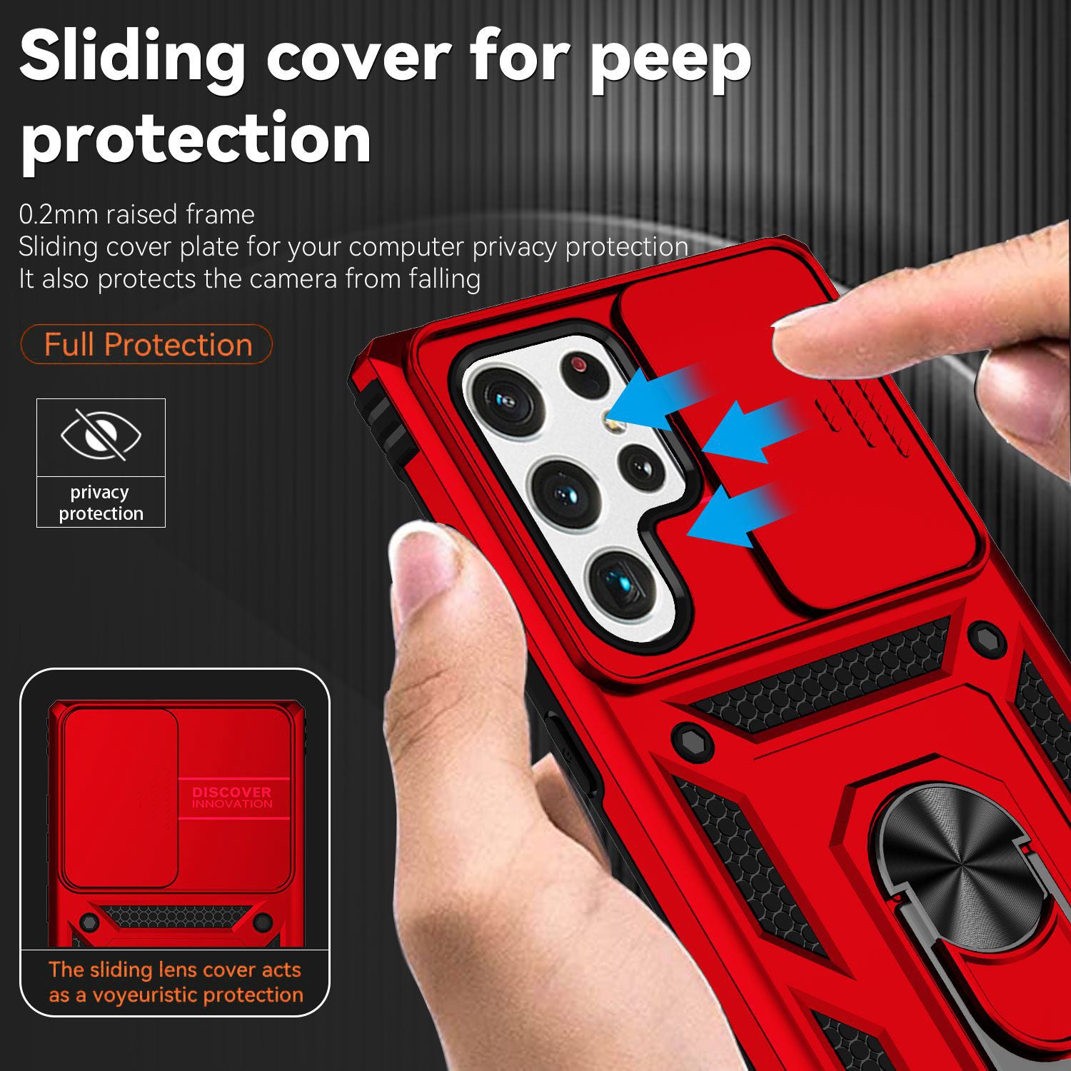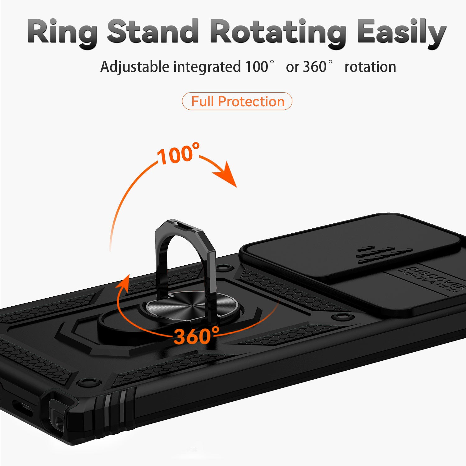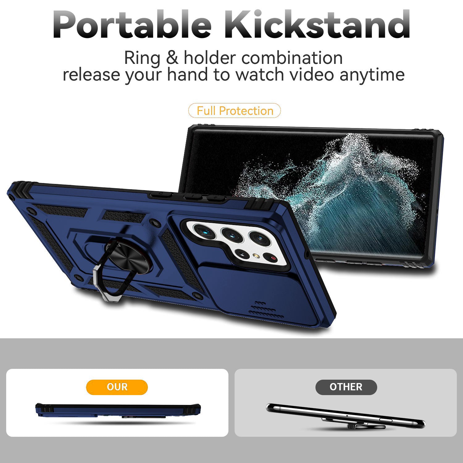 For Samsung Galaxy S22 Ultra 5G Ring Kickstand Back Case TPU+PC Hybrid Phone Cover with Slide Camera Protection
