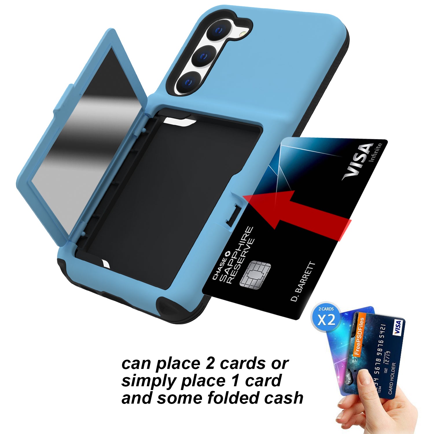 For Samsung Galaxy S23 Cardcase Series Card Holder Thick Phone Case Kickstand Mirror Function PC + TPU Cover
