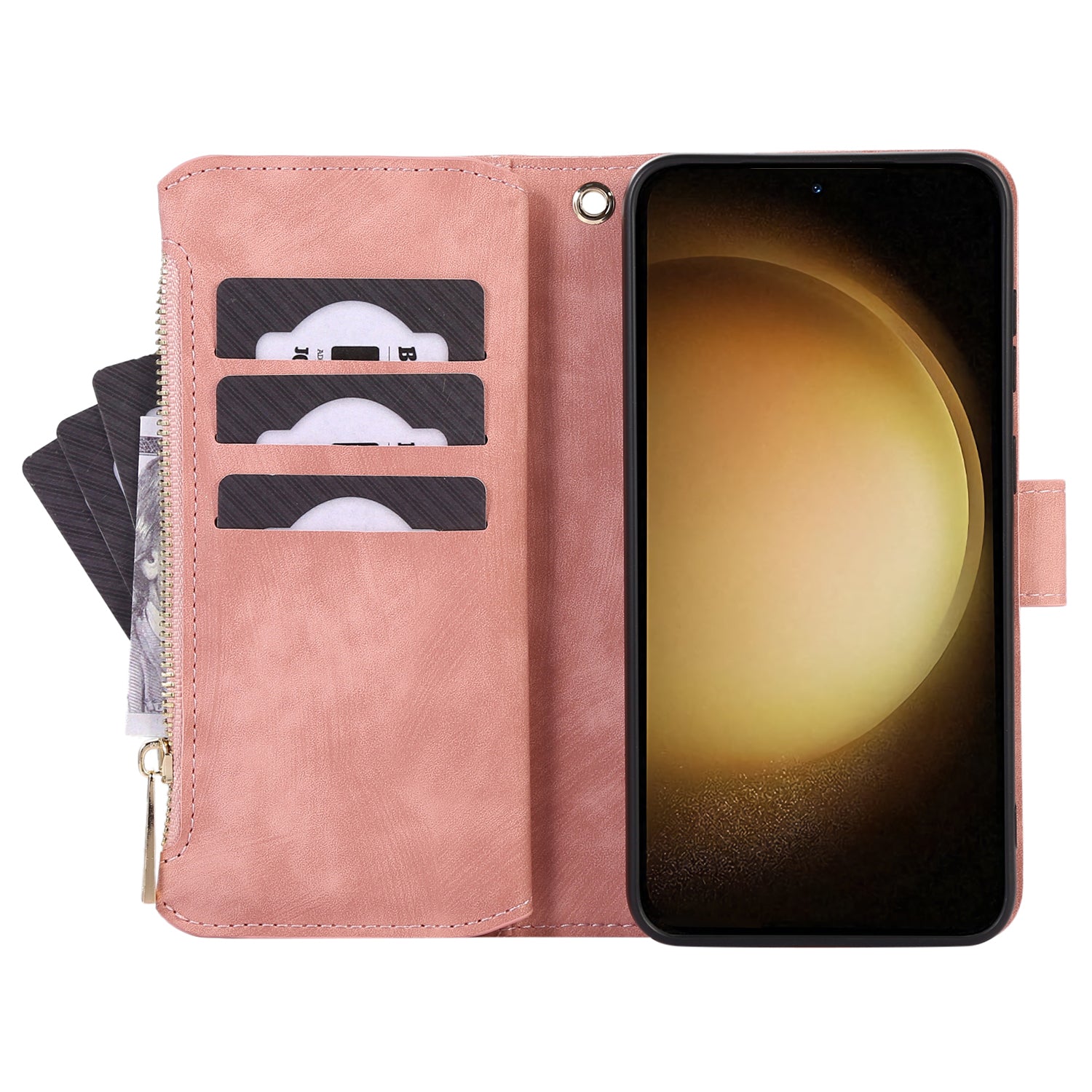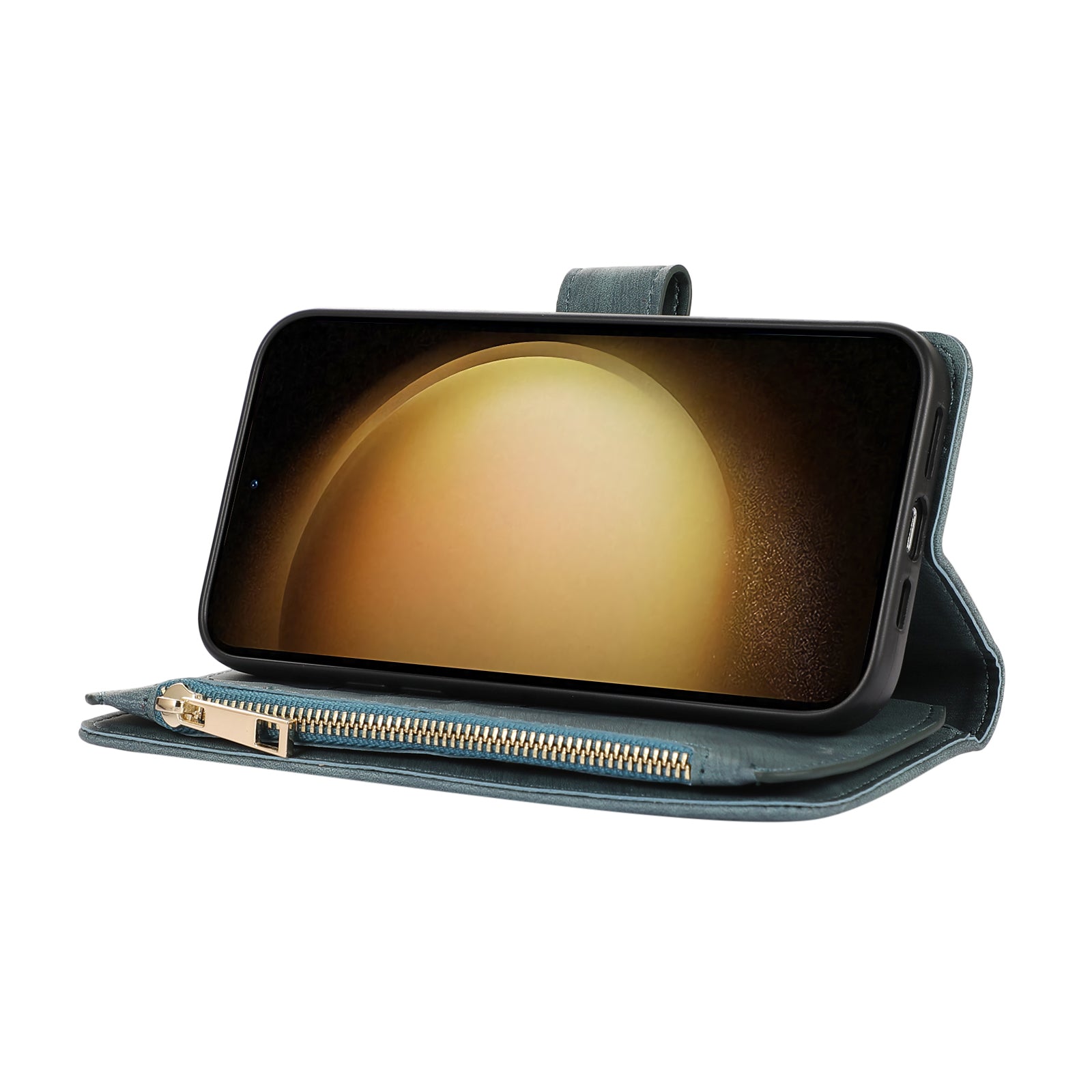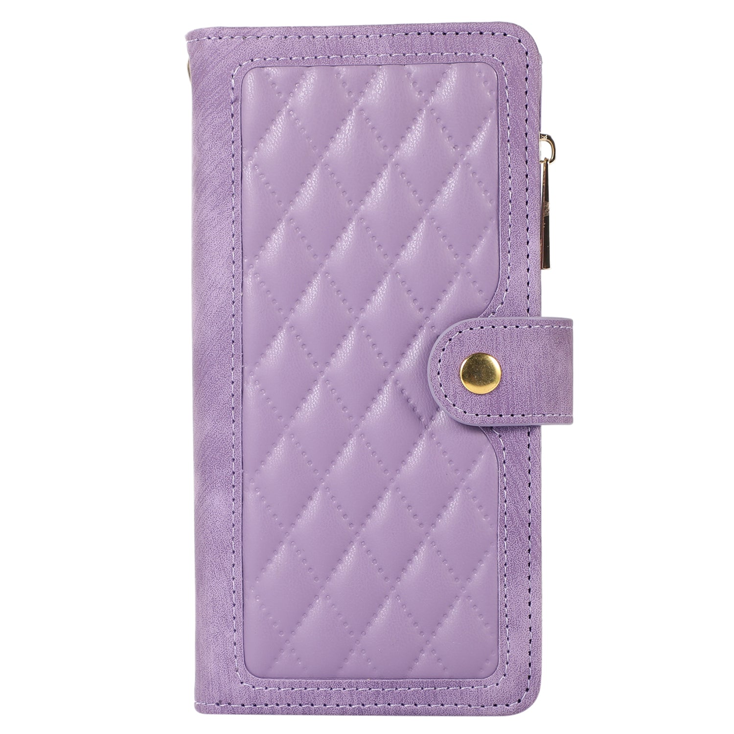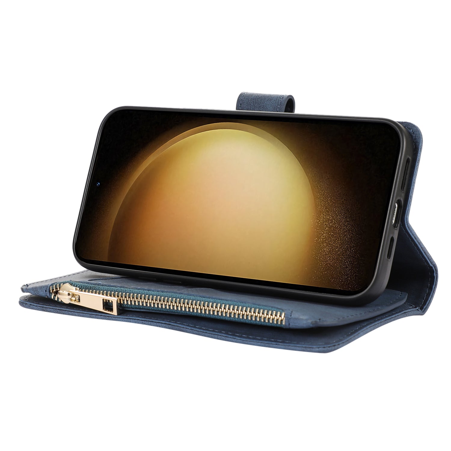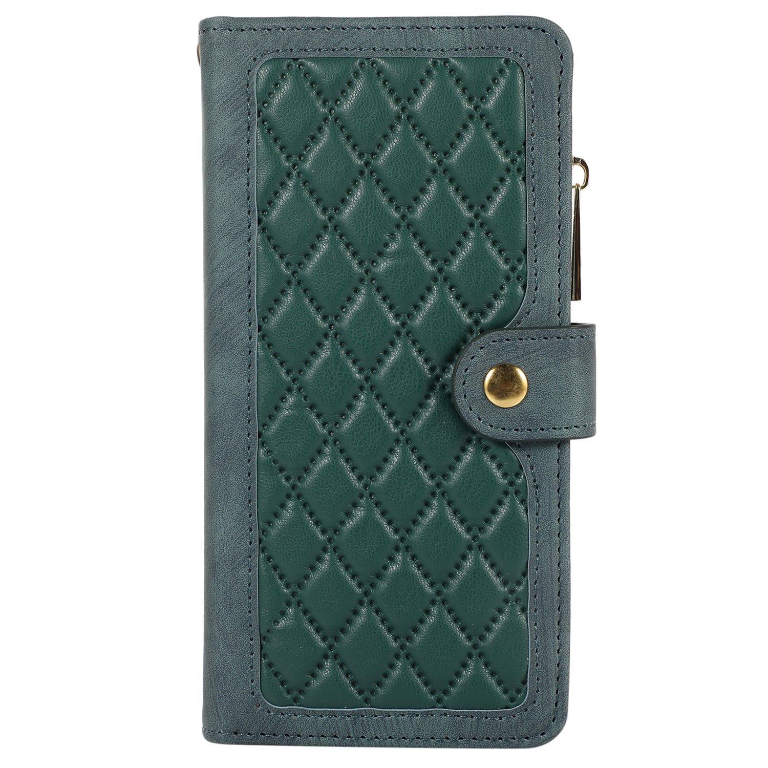 For Samsung Galaxy S23 Phone Case Multiple Card Slots Rhombus PU Leather Flip Cover with Zippered Pocket