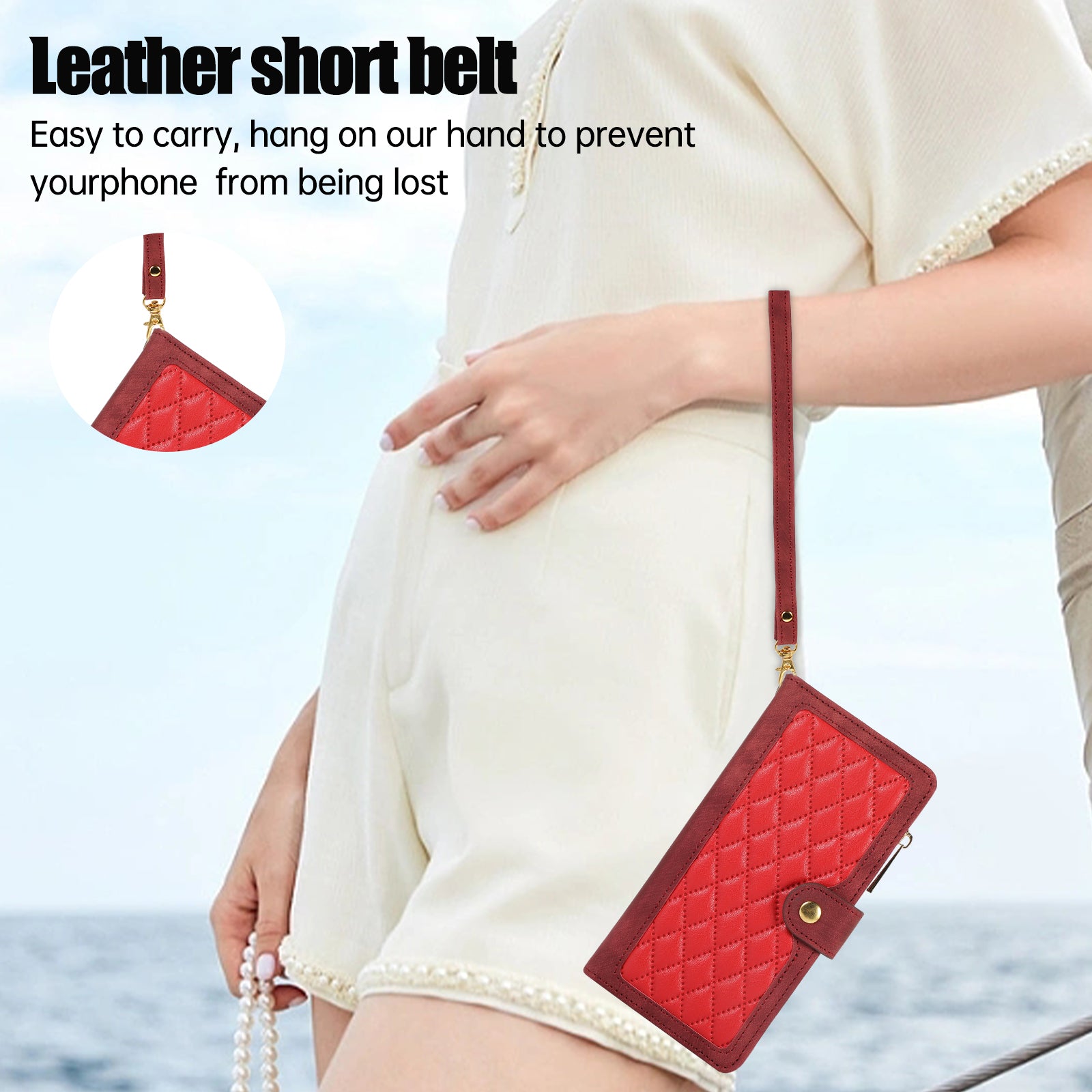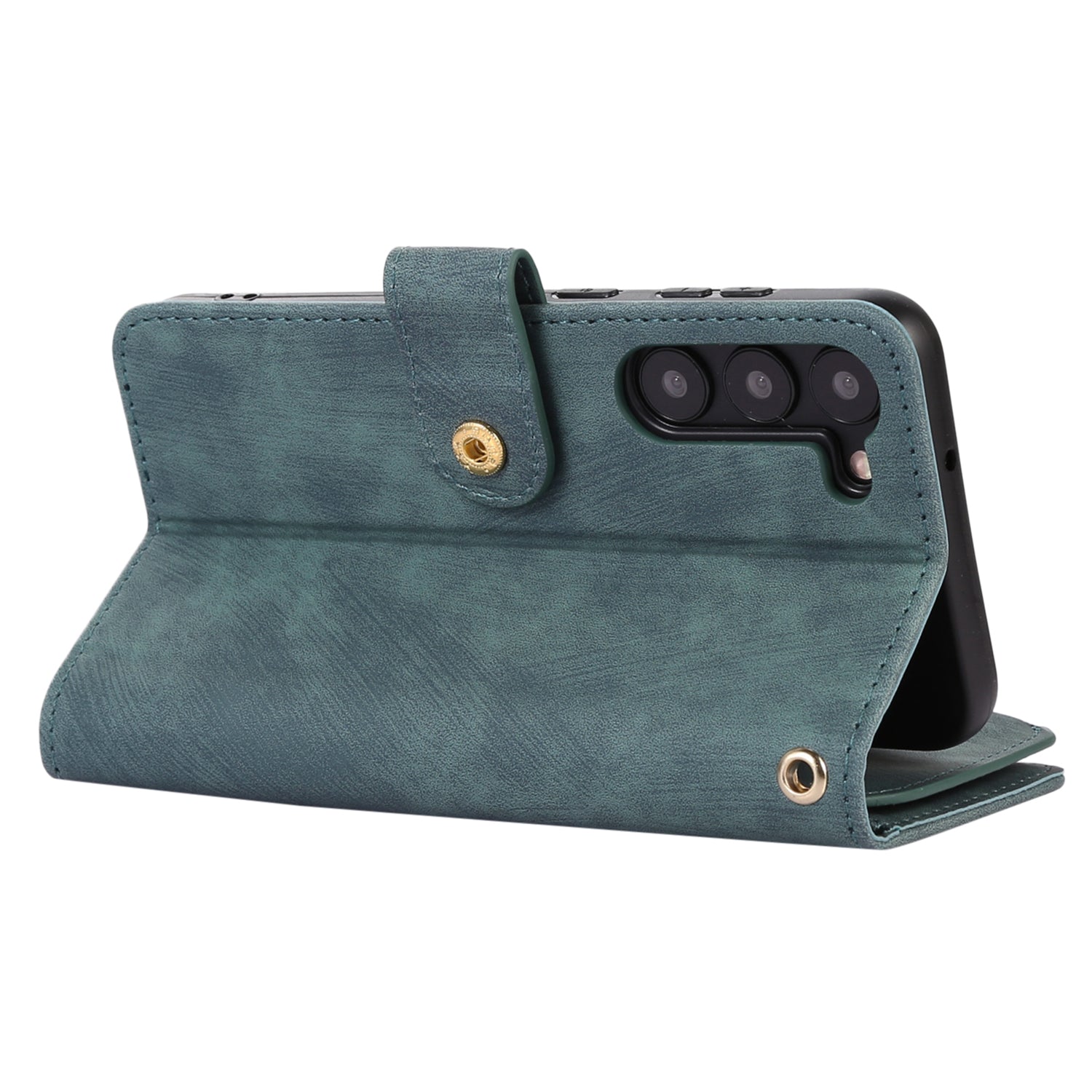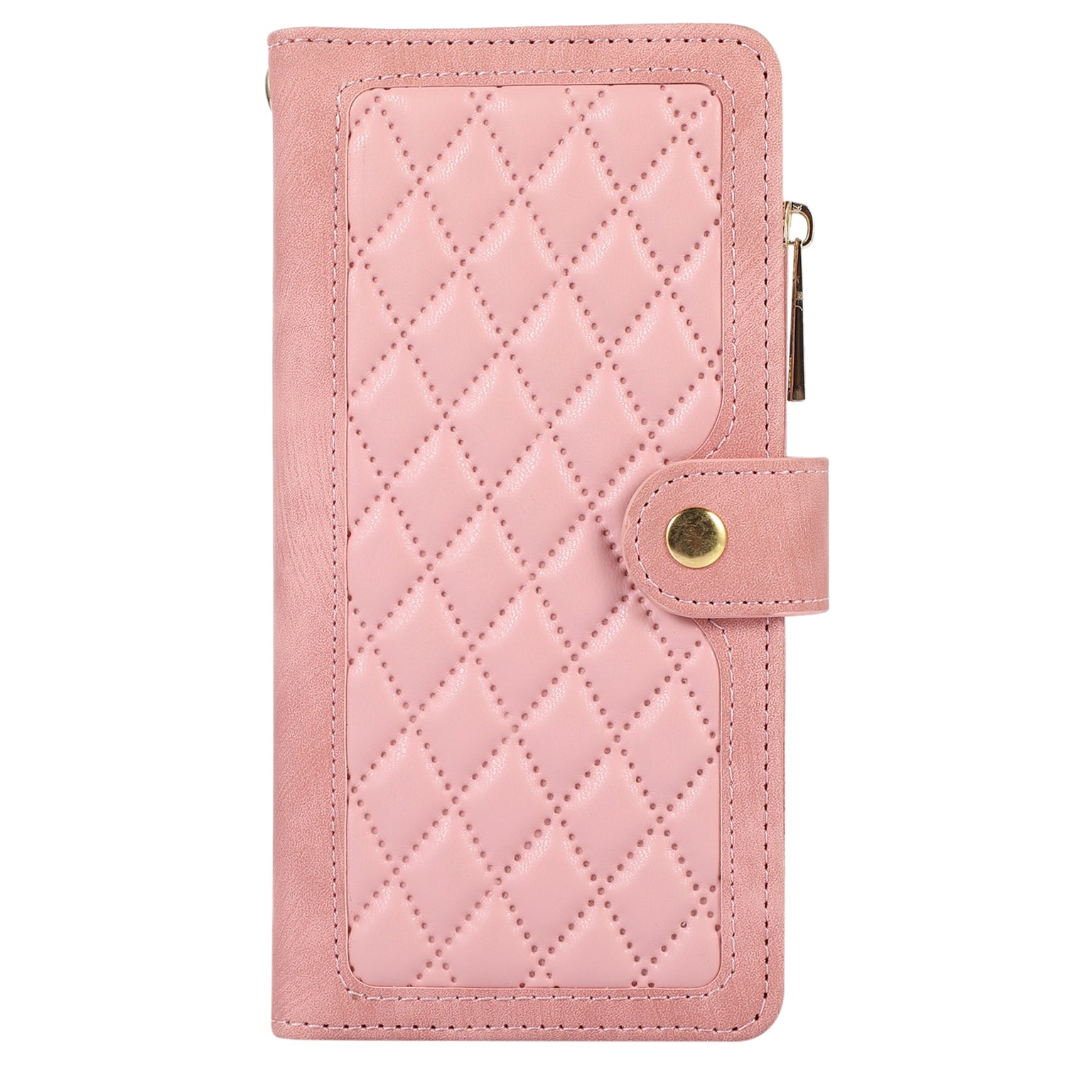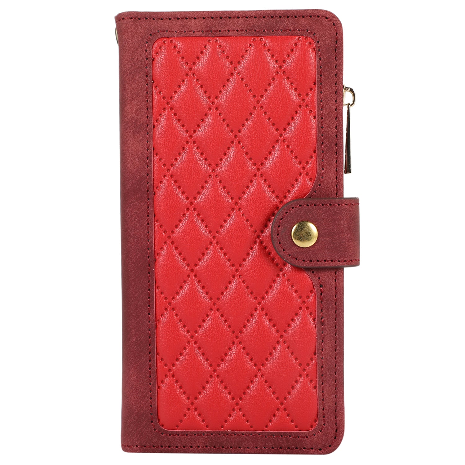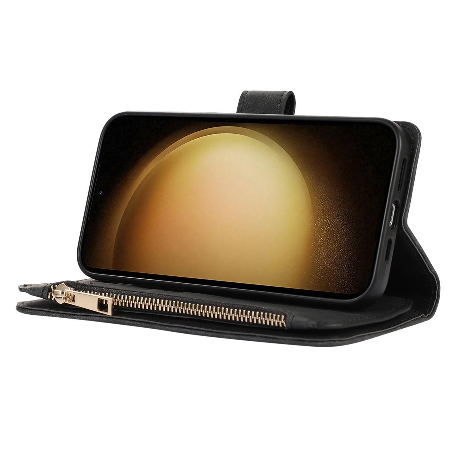 For Samsung Galaxy S23 Phone Case Multiple Card Slots Rhombus PU Leather Flip Cover with Zippered Pocket