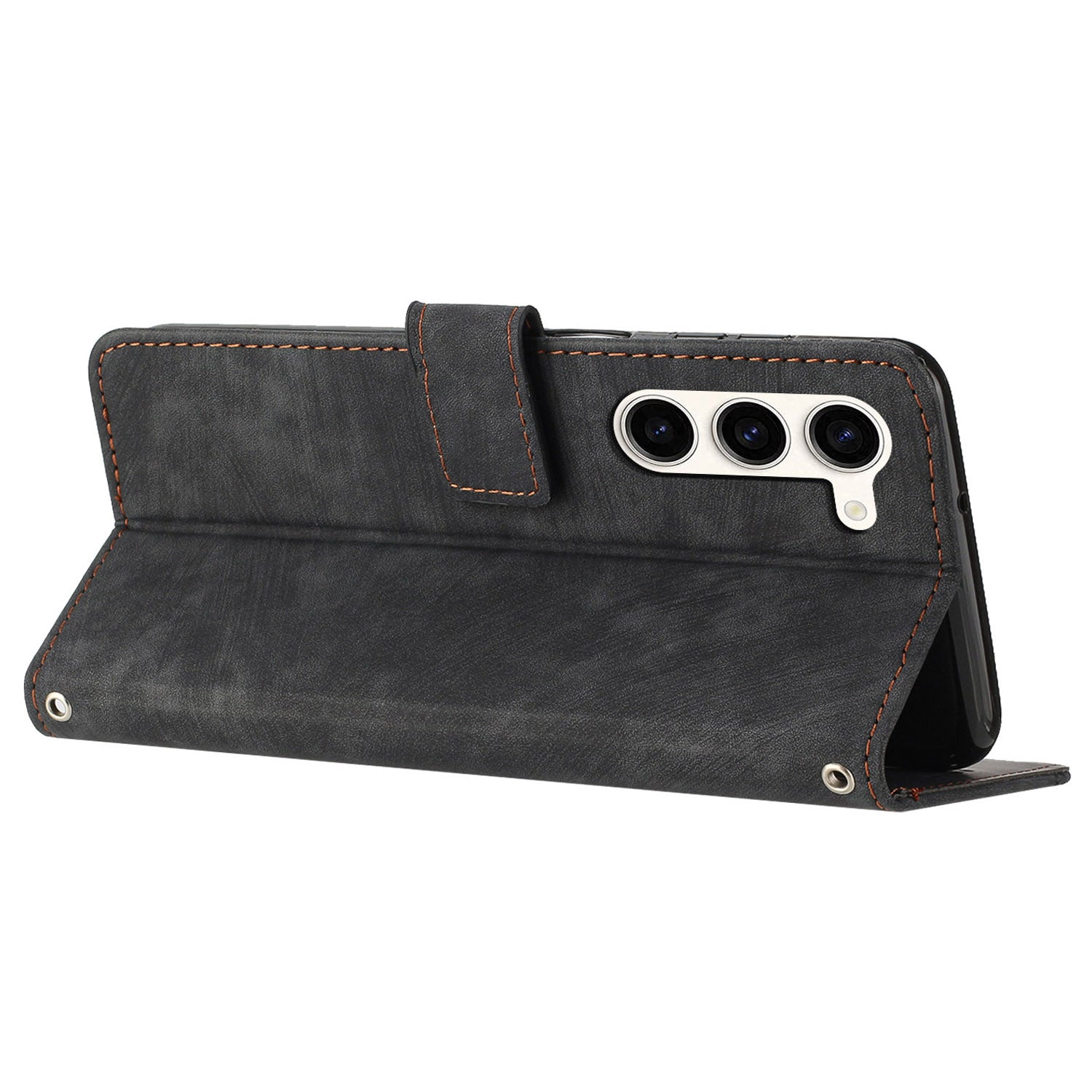 - The magnetic clasp closes easily and firmly to keep the phone, cash and cards in one place neatly and securely