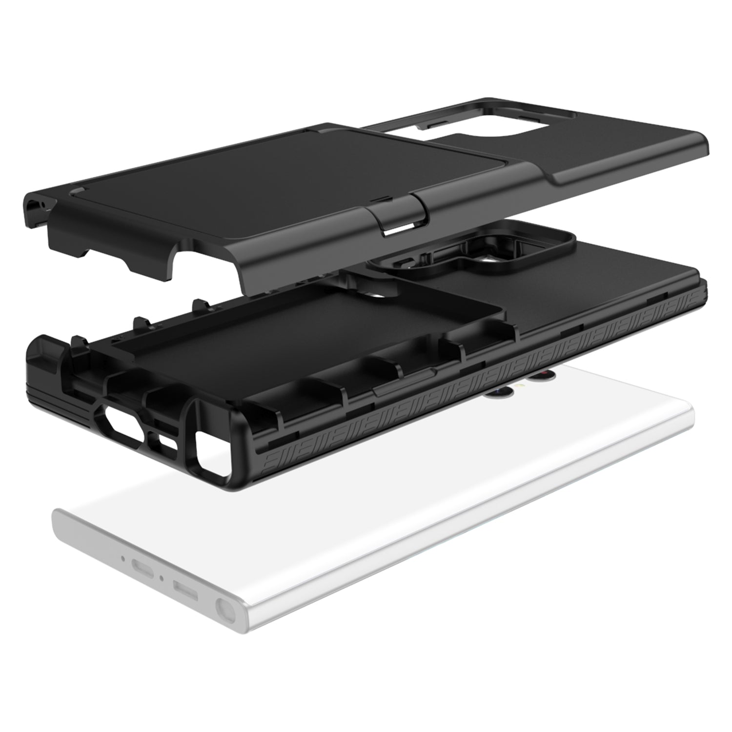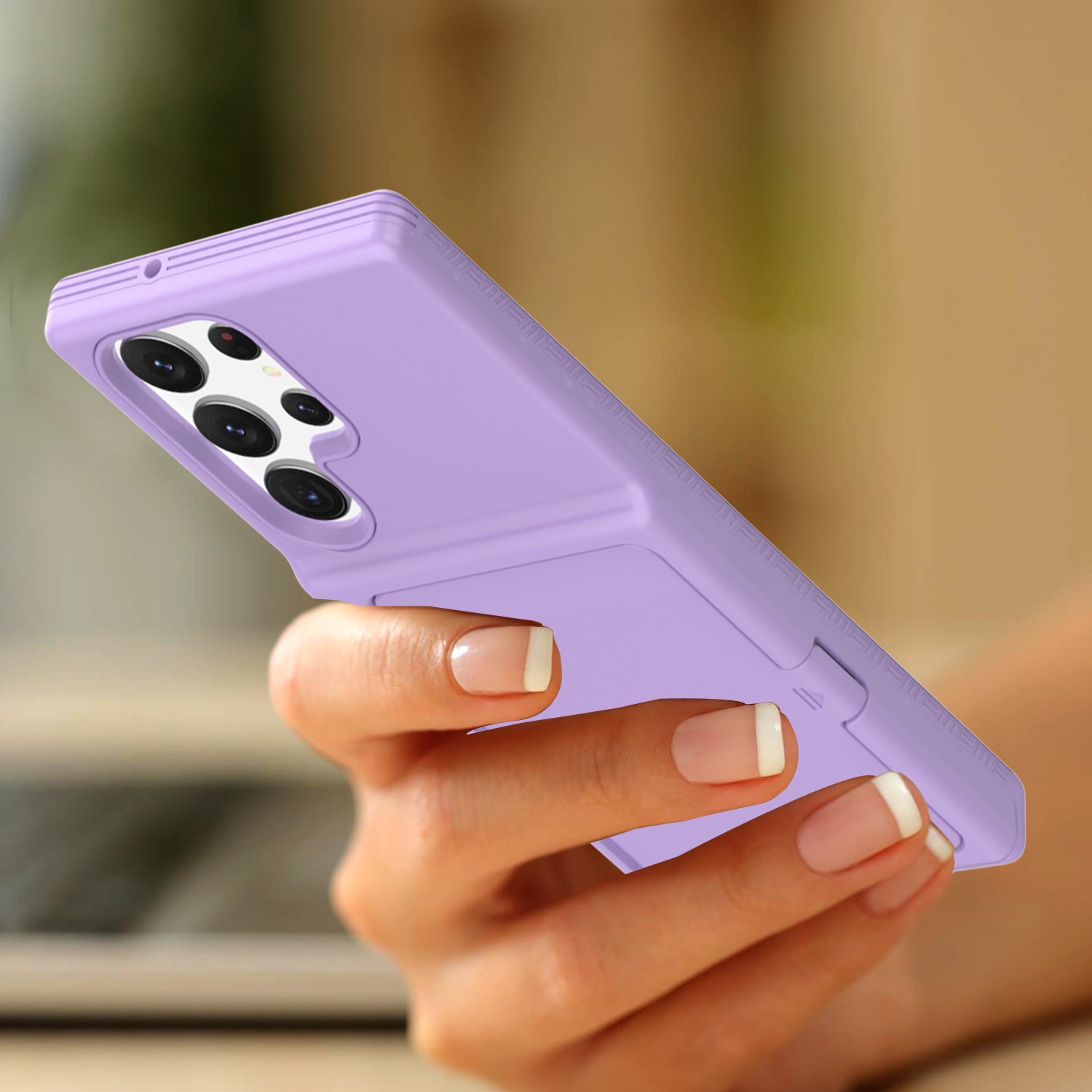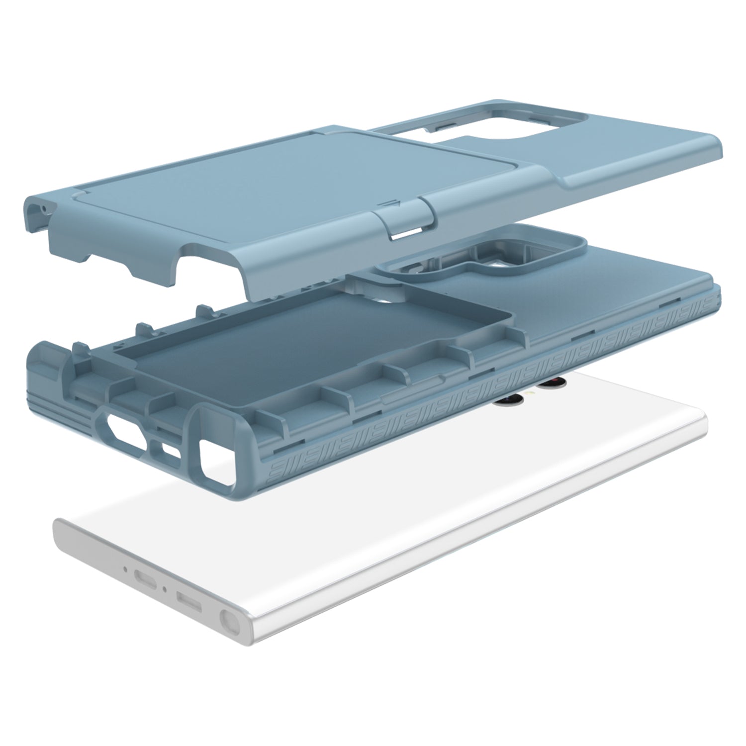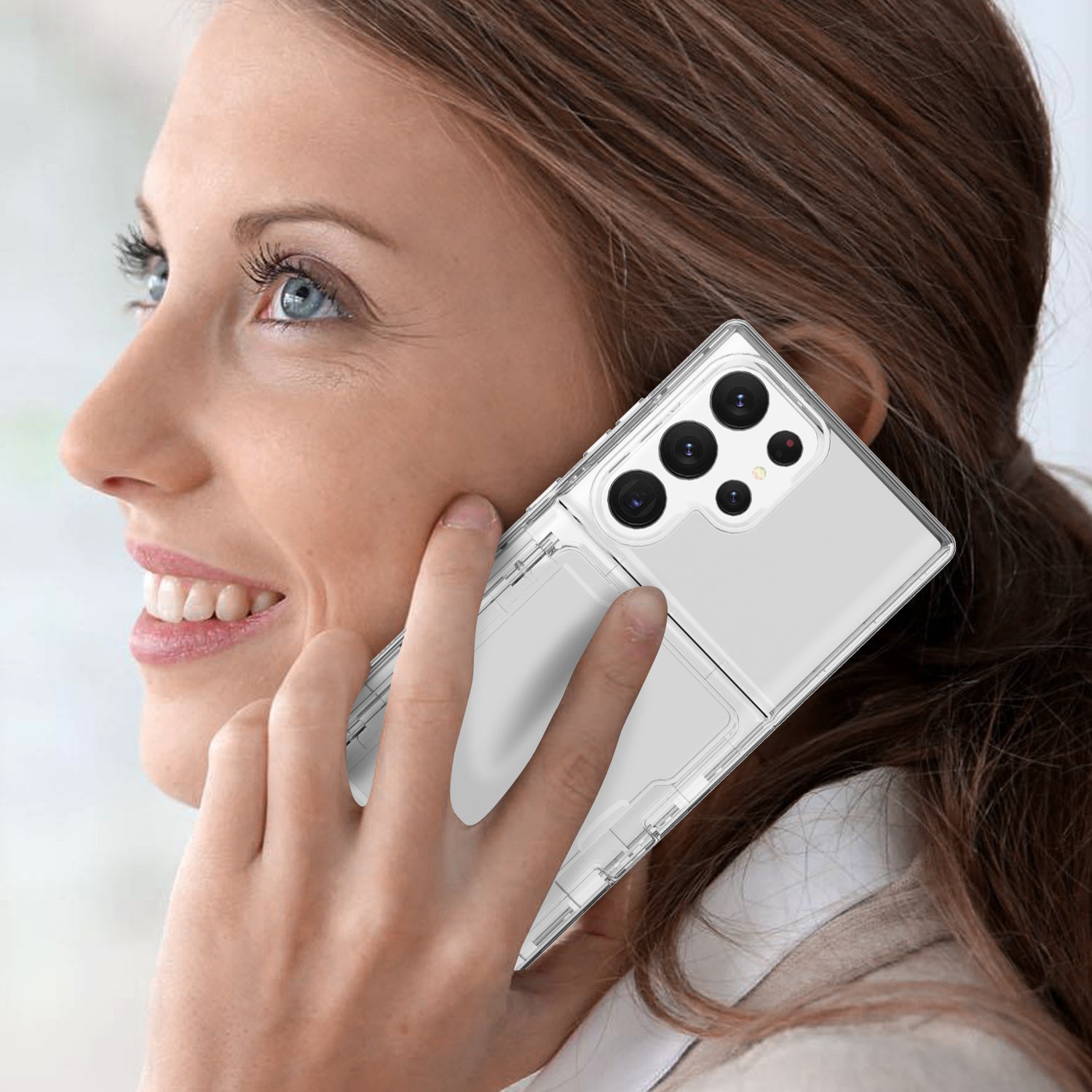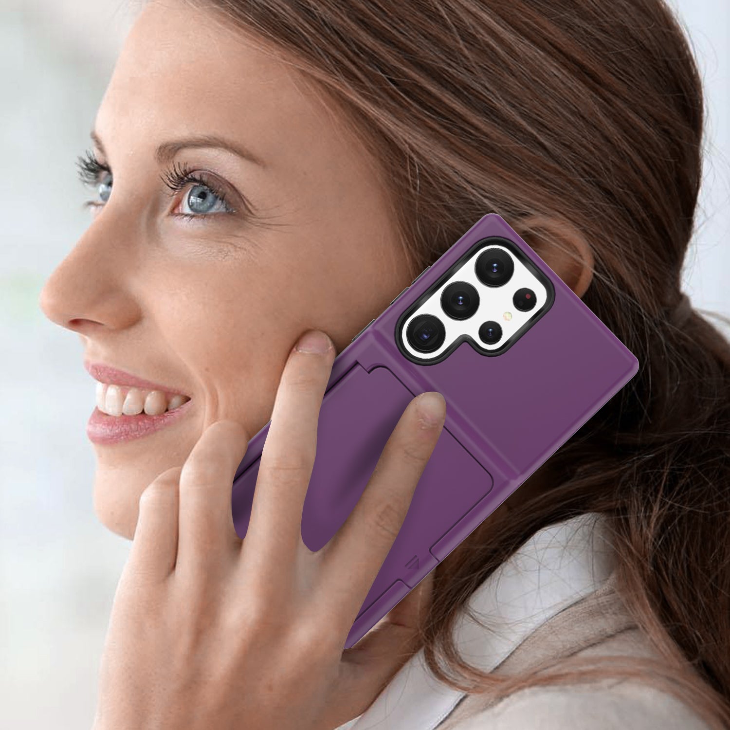 For Samsung Galaxy S23 Ultra Cardcase Series PC + TPU Phone Case Mirror Design Card Slots Kickstand Thickened Cover