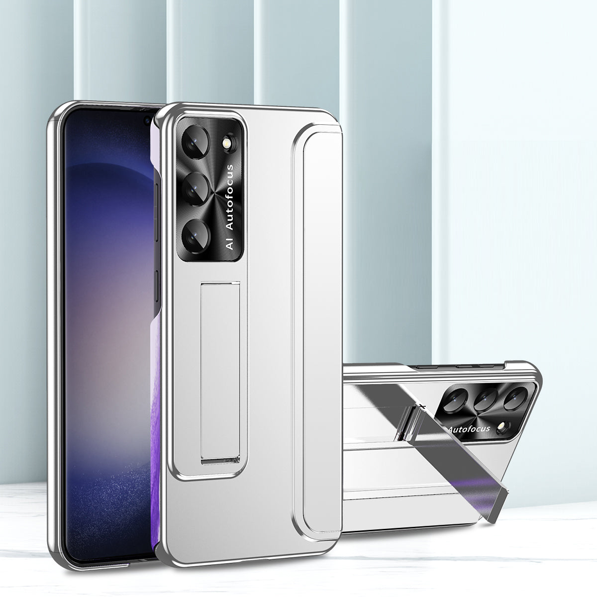 For Samsung Galaxy S23 Ultra Electroplating Phone Case Hard PC Hidden Kickstand Back Cover