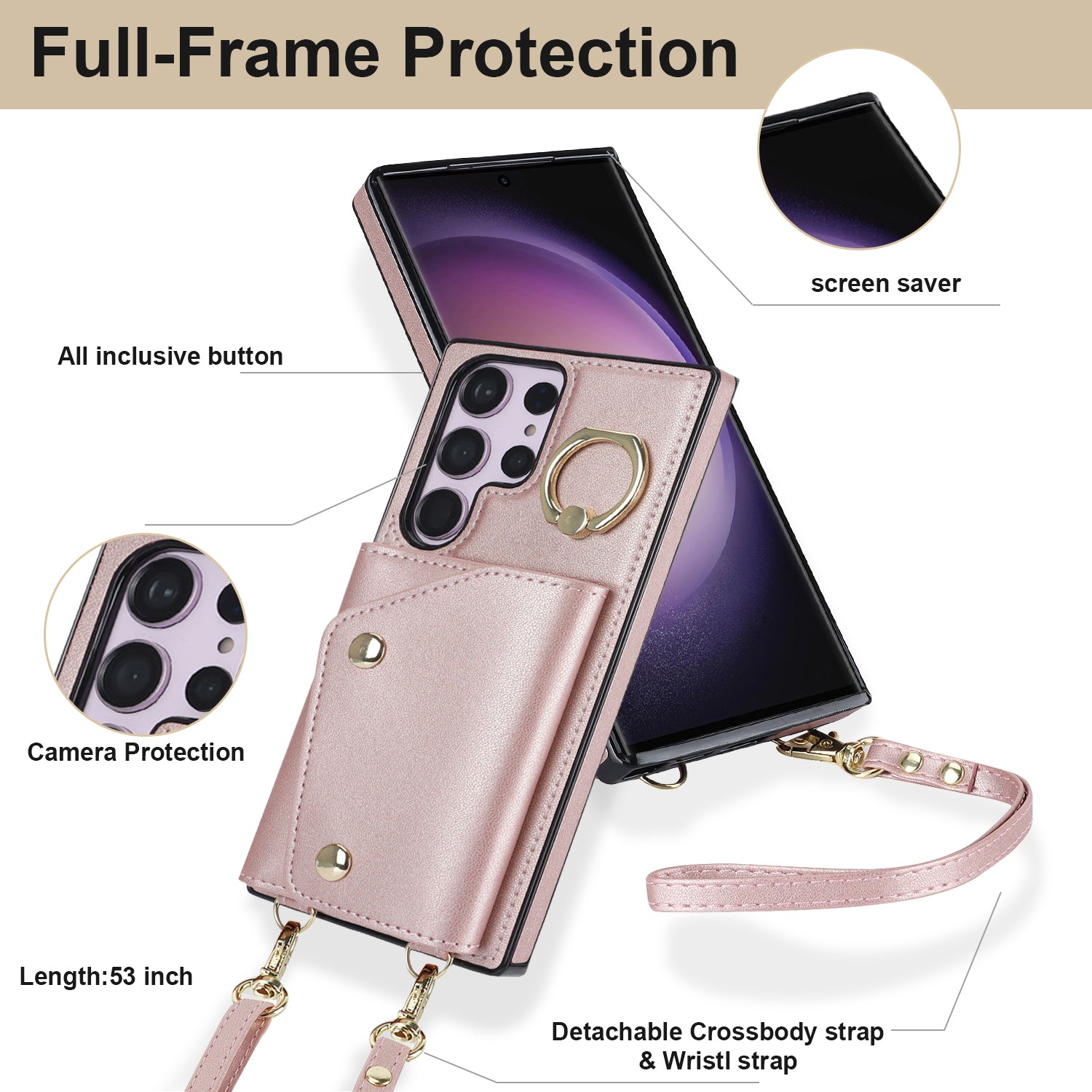 For Samsung Galaxy S23 Ultra Ring Kickstand Zipper Wallet Case PU Leather + TPU Phone Cover