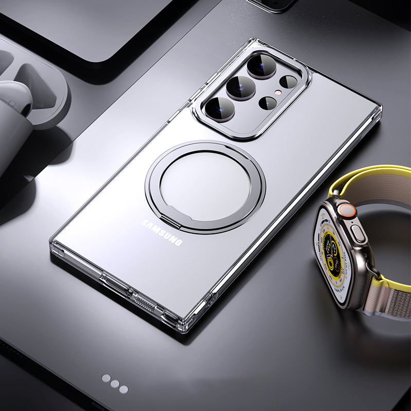 For Samsung Galaxy S23 Ultra TPU+Acrylic Matte Phone Case Rotatable Kickstand Cover Compatible with MagSafe
