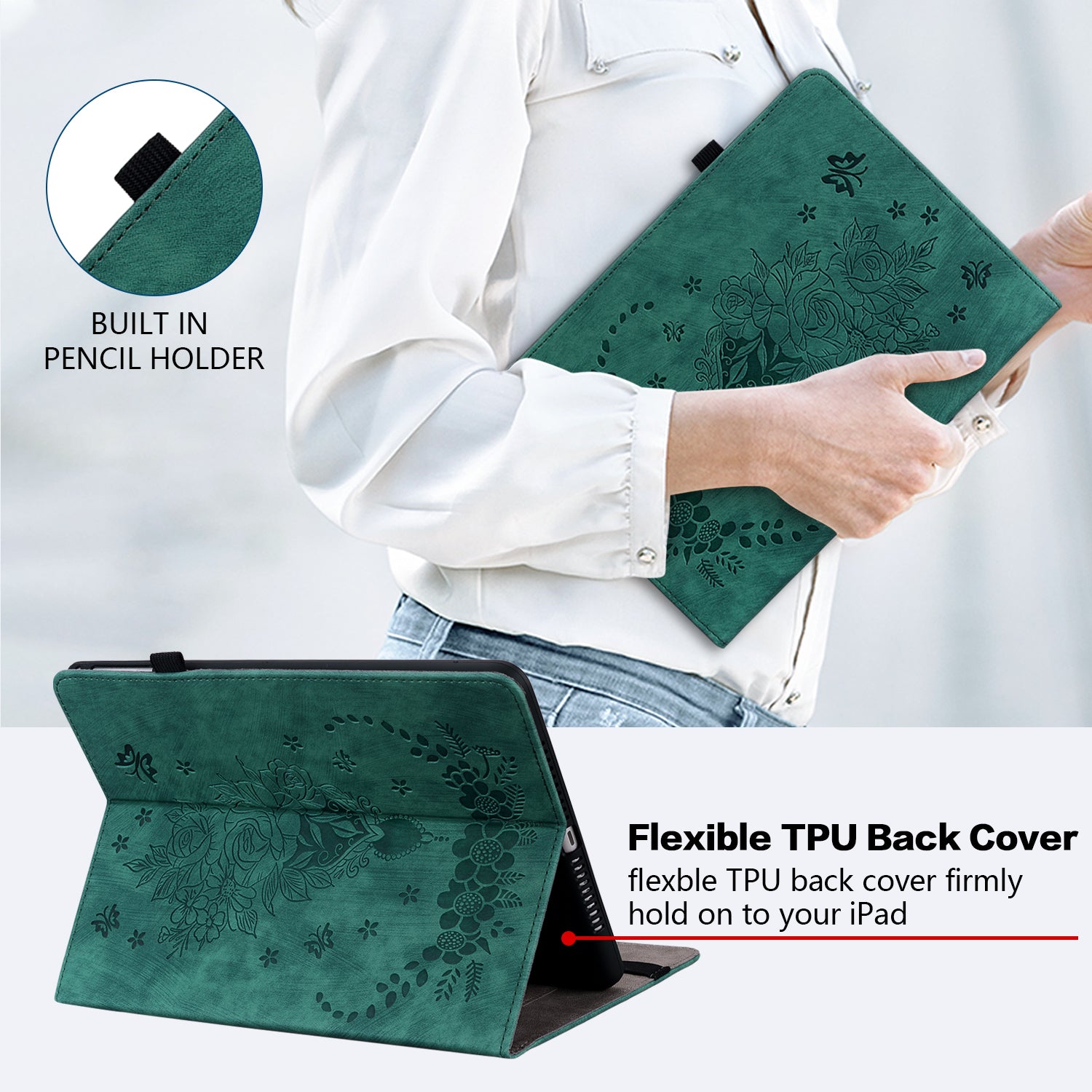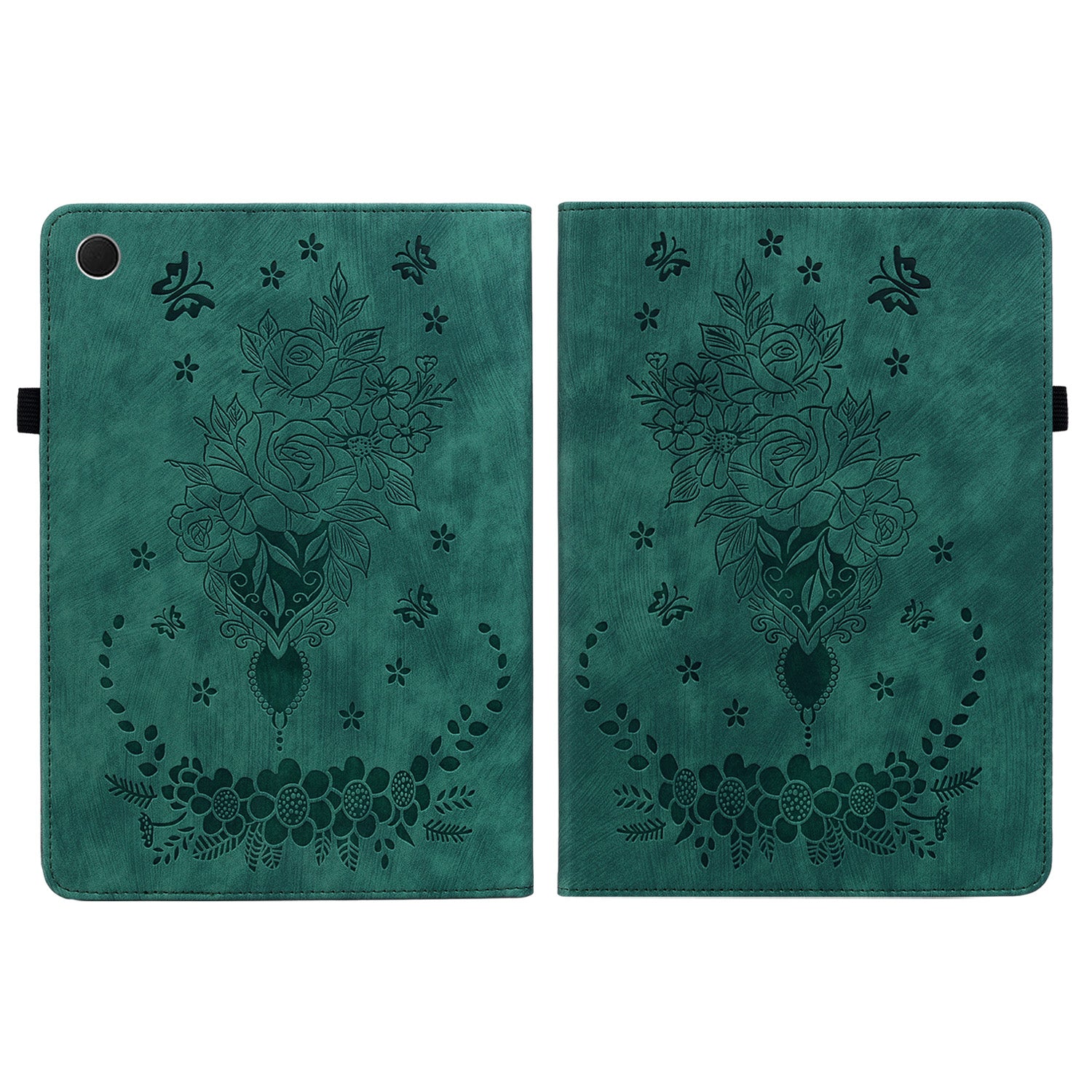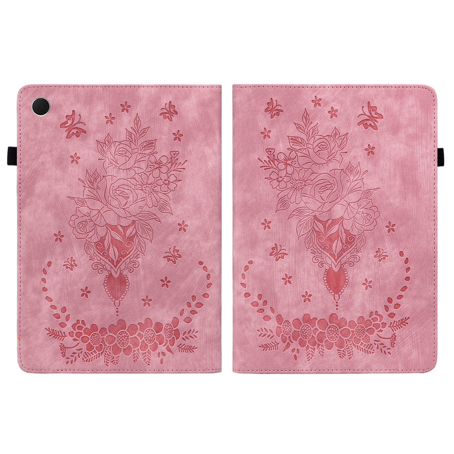 For Samsung Galaxy Tab A9+ PU Leather Card Holder Tablet Cover Butterfly Rose Imprinted Stand Case