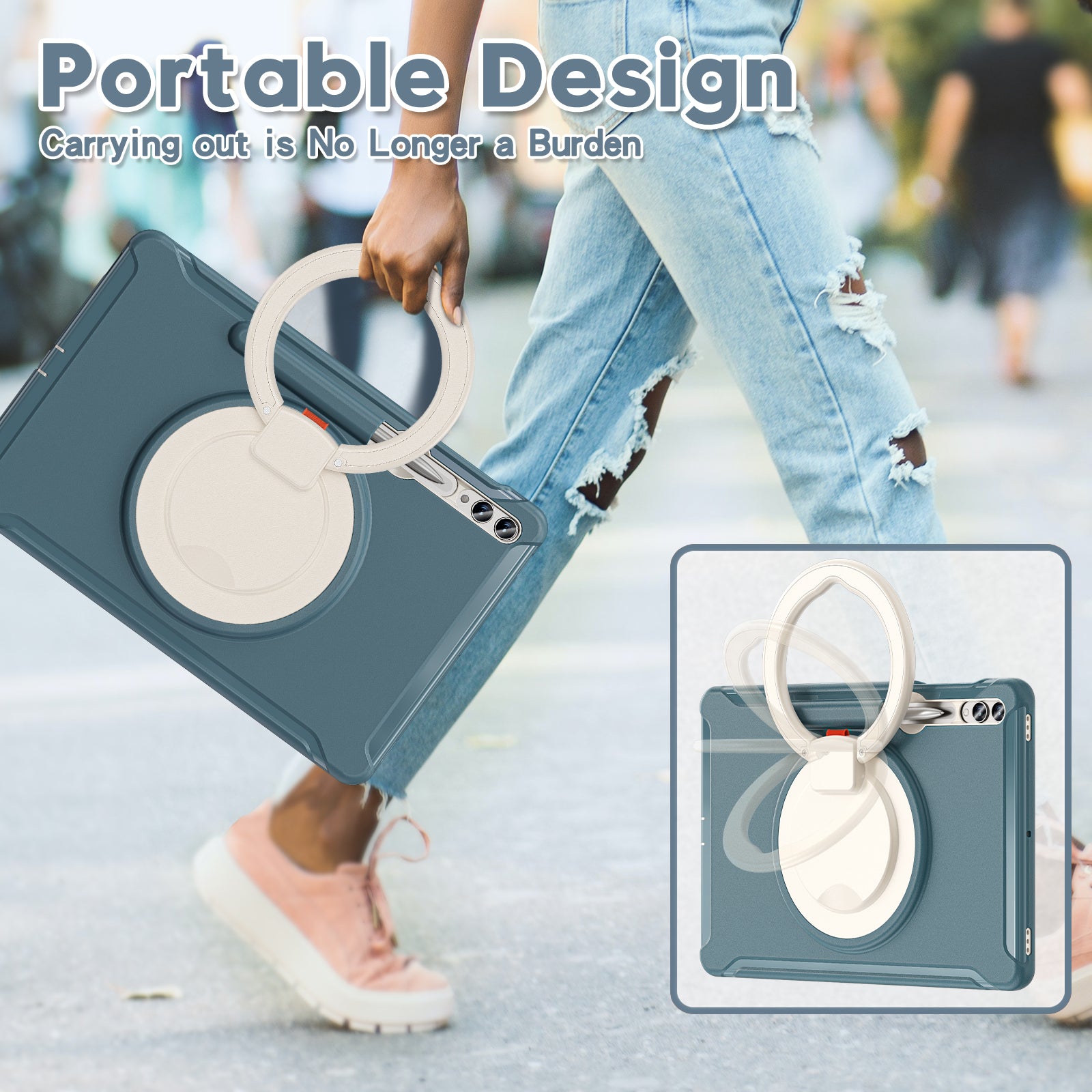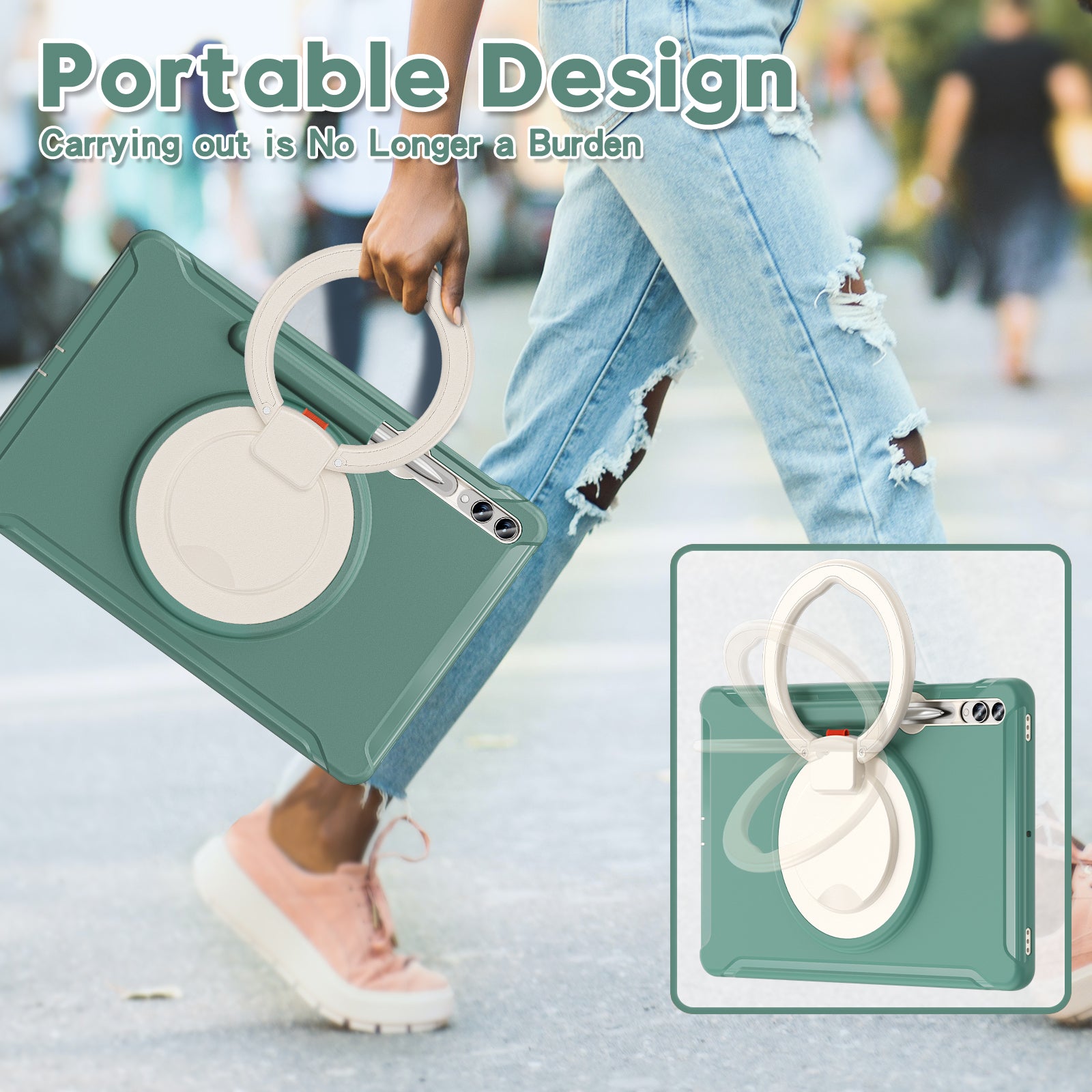 - Integrated 360-degree rotary kickstand frees your hands for landscape or portrait viewing, also can be a hand-hold grip for easy carrying