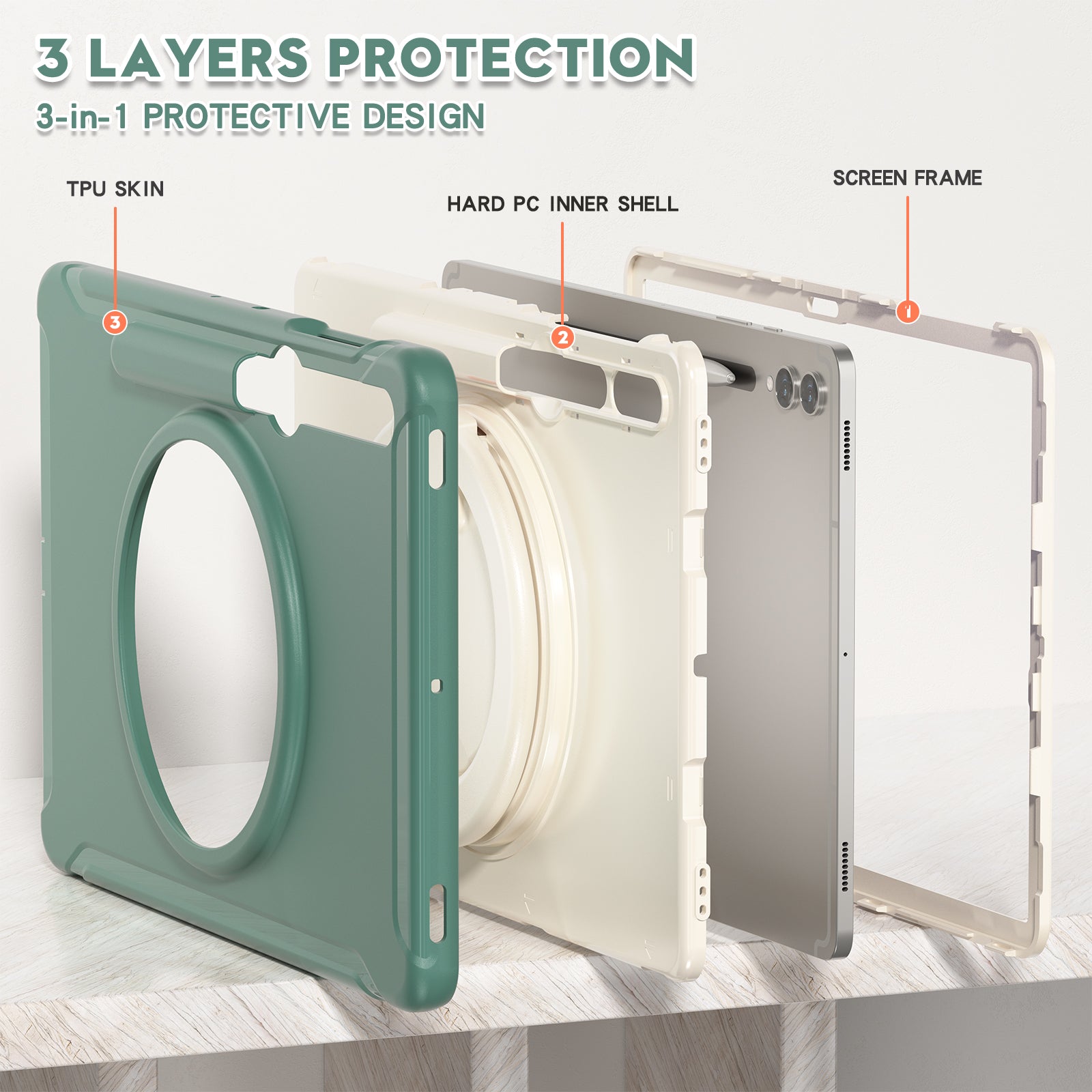 For Samsung Galaxy Tab S9 FE+ / S7+ T970 / Tab S7 FE T730 / Tab S8+ X800 / Tab S9+ X810 Case PC+TPU Rotating Kickstand Tablet Cover with Pen Holder