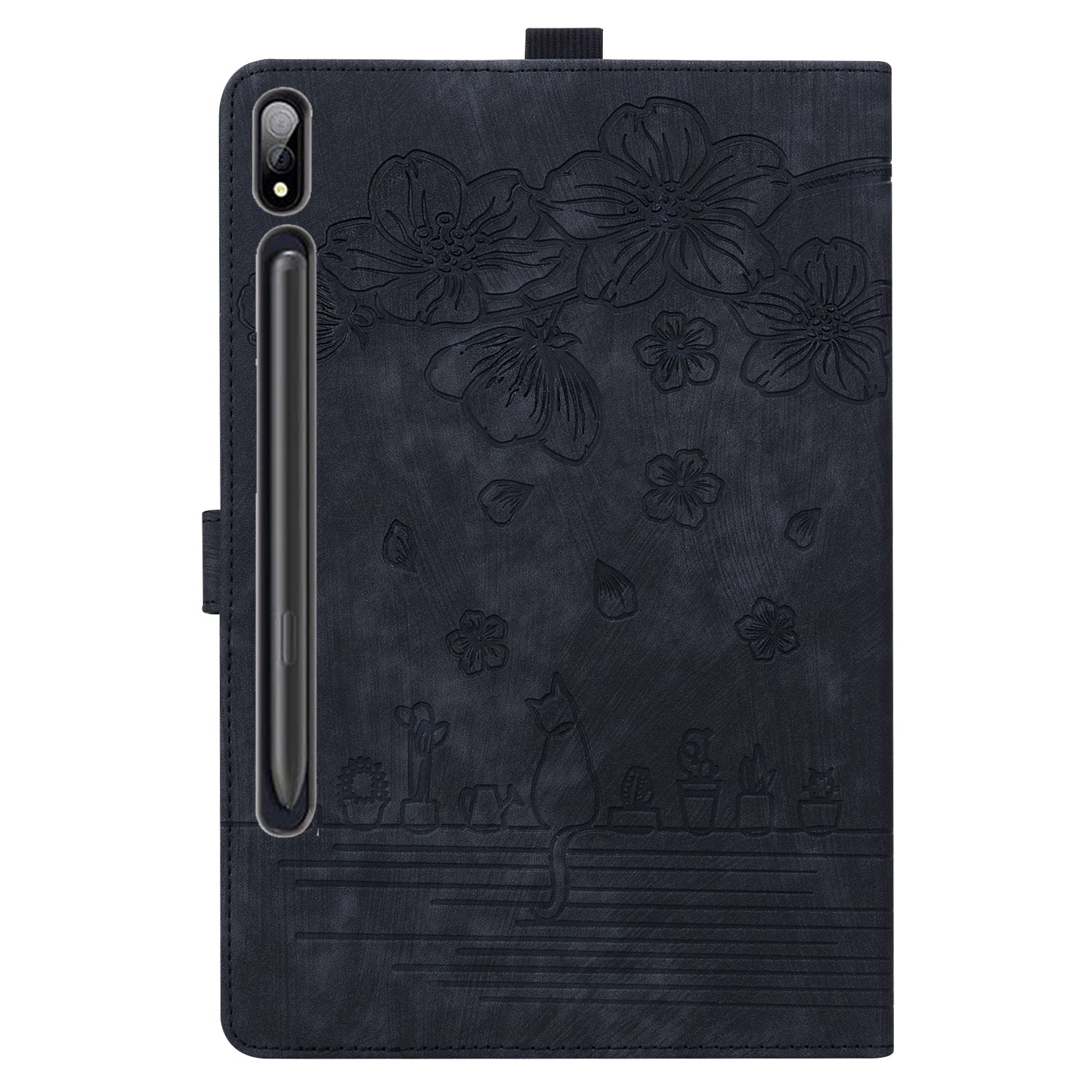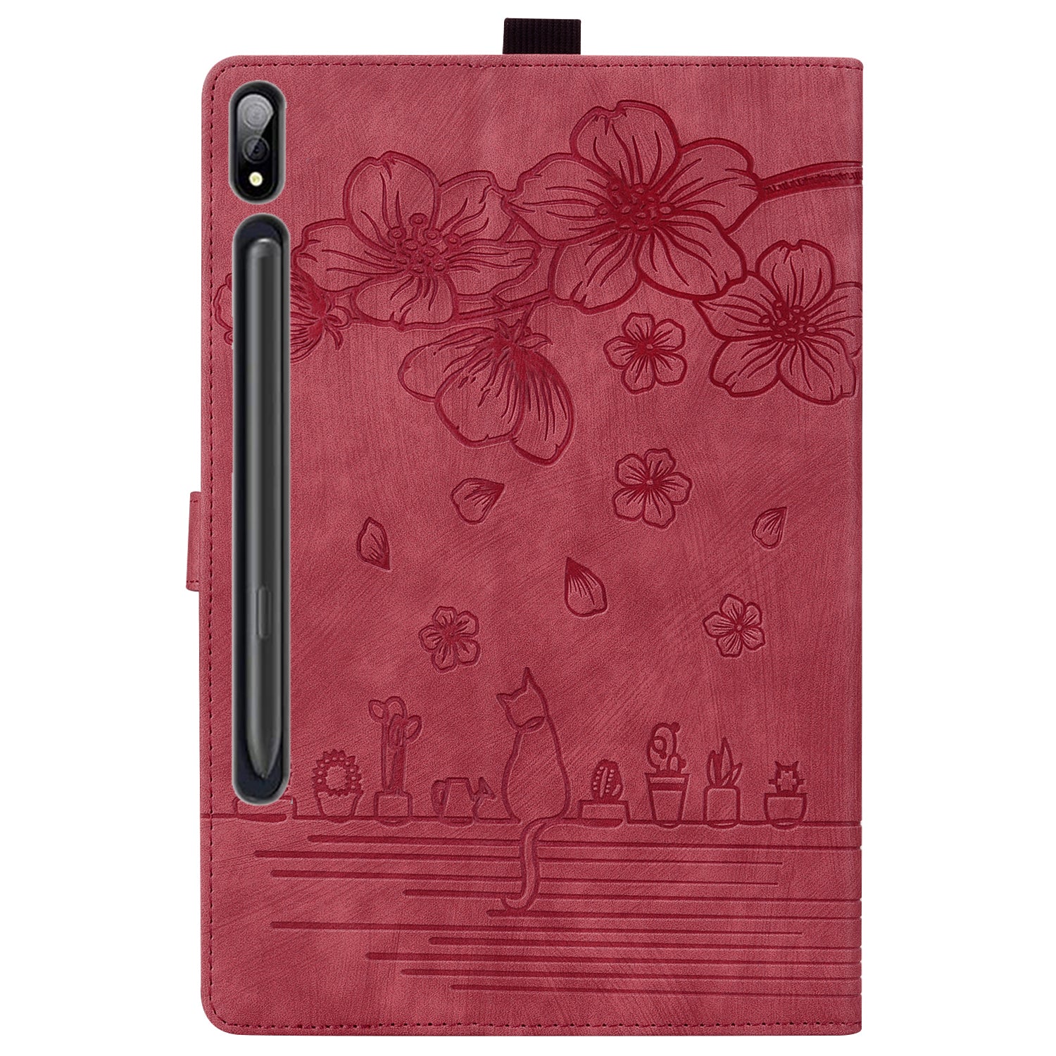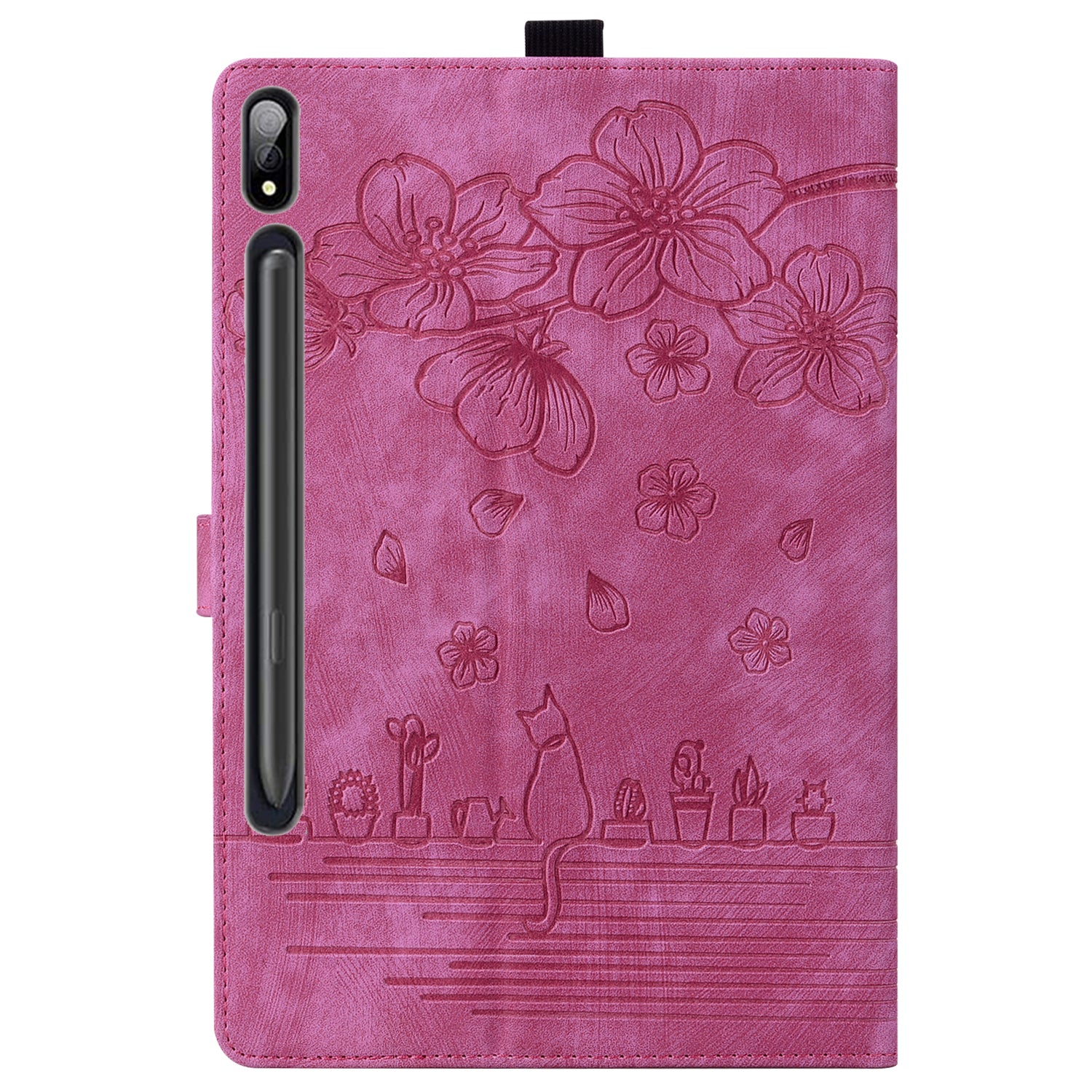 For Samsung Galaxy Tab S9+ PU Leather Card Holder Cover Flower Cat Imprinted Tablet Stand Case