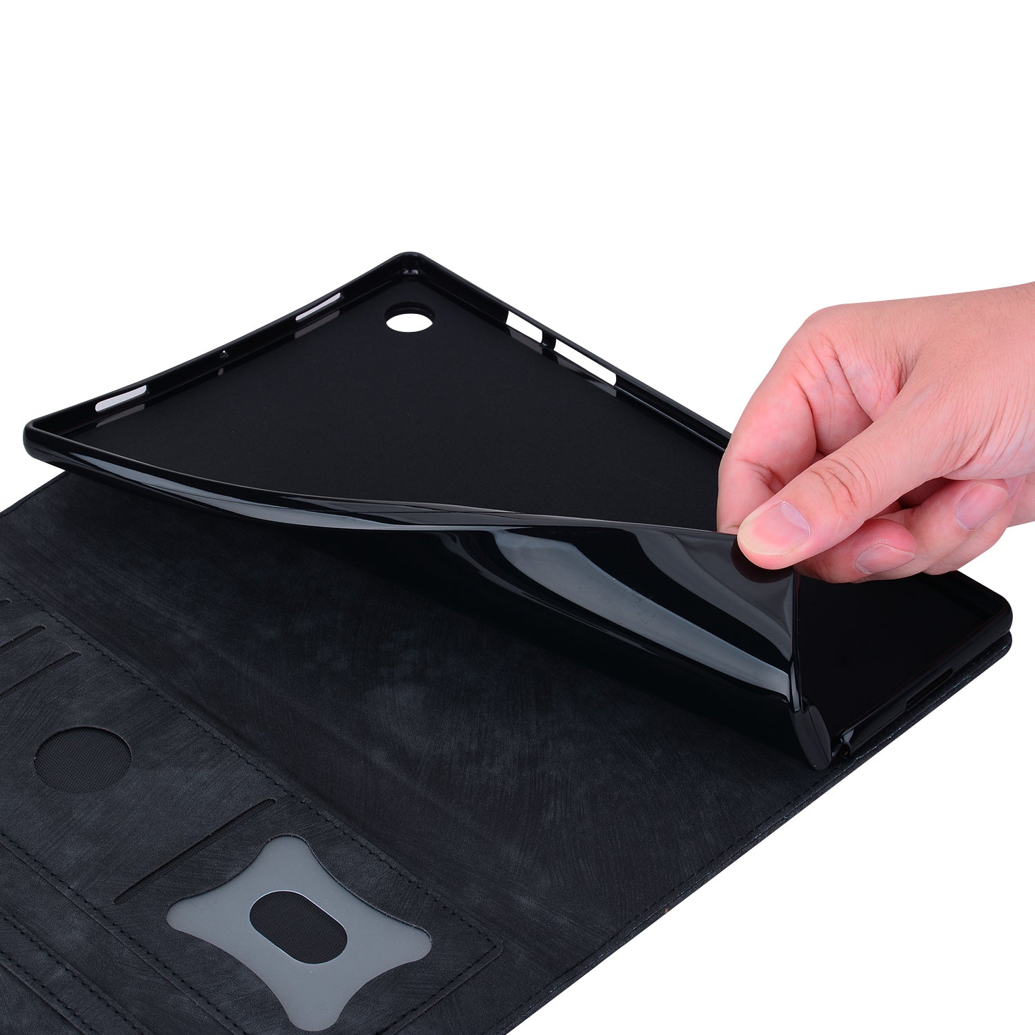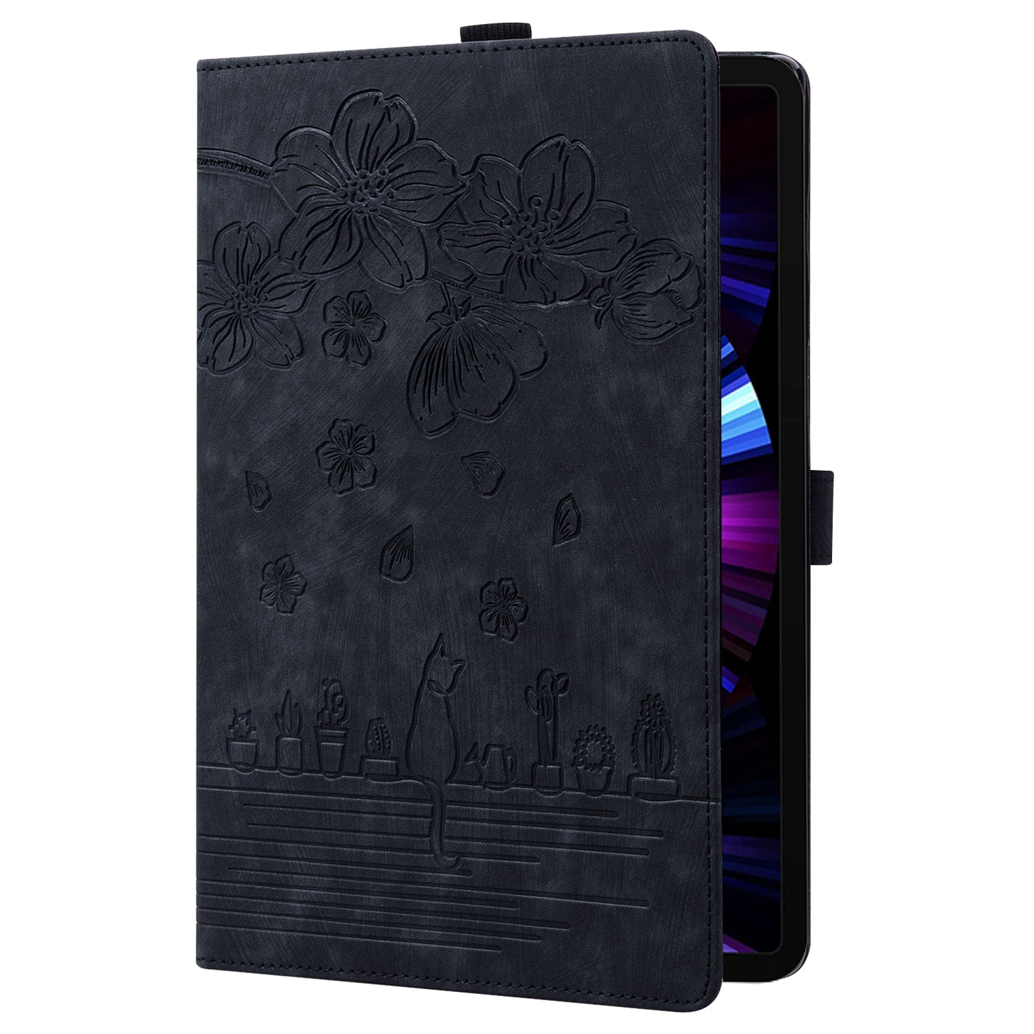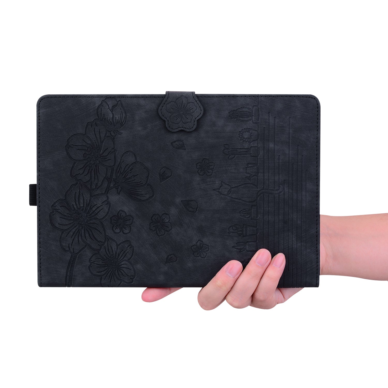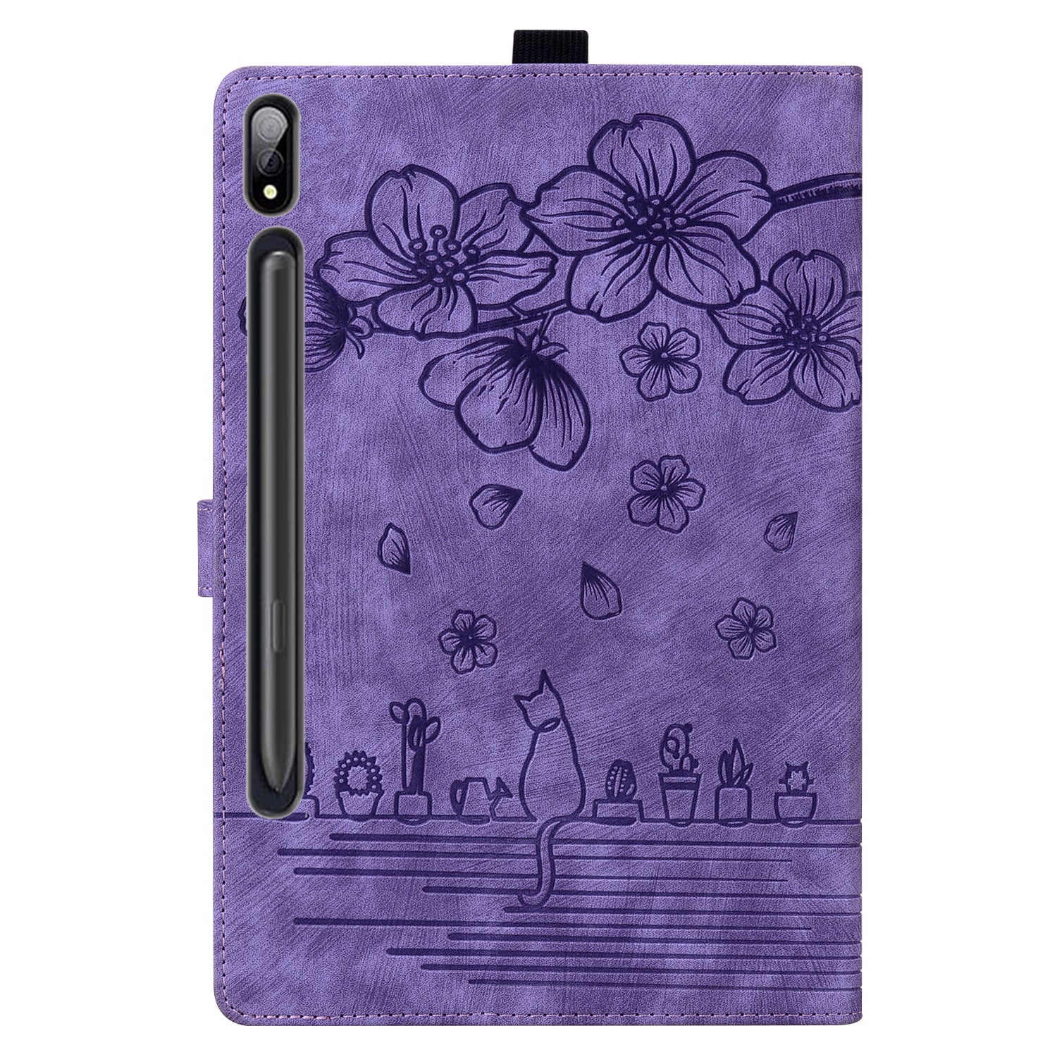 For Samsung Galaxy Tab S9+ PU Leather Card Holder Cover Flower Cat Imprinted Tablet Stand Case