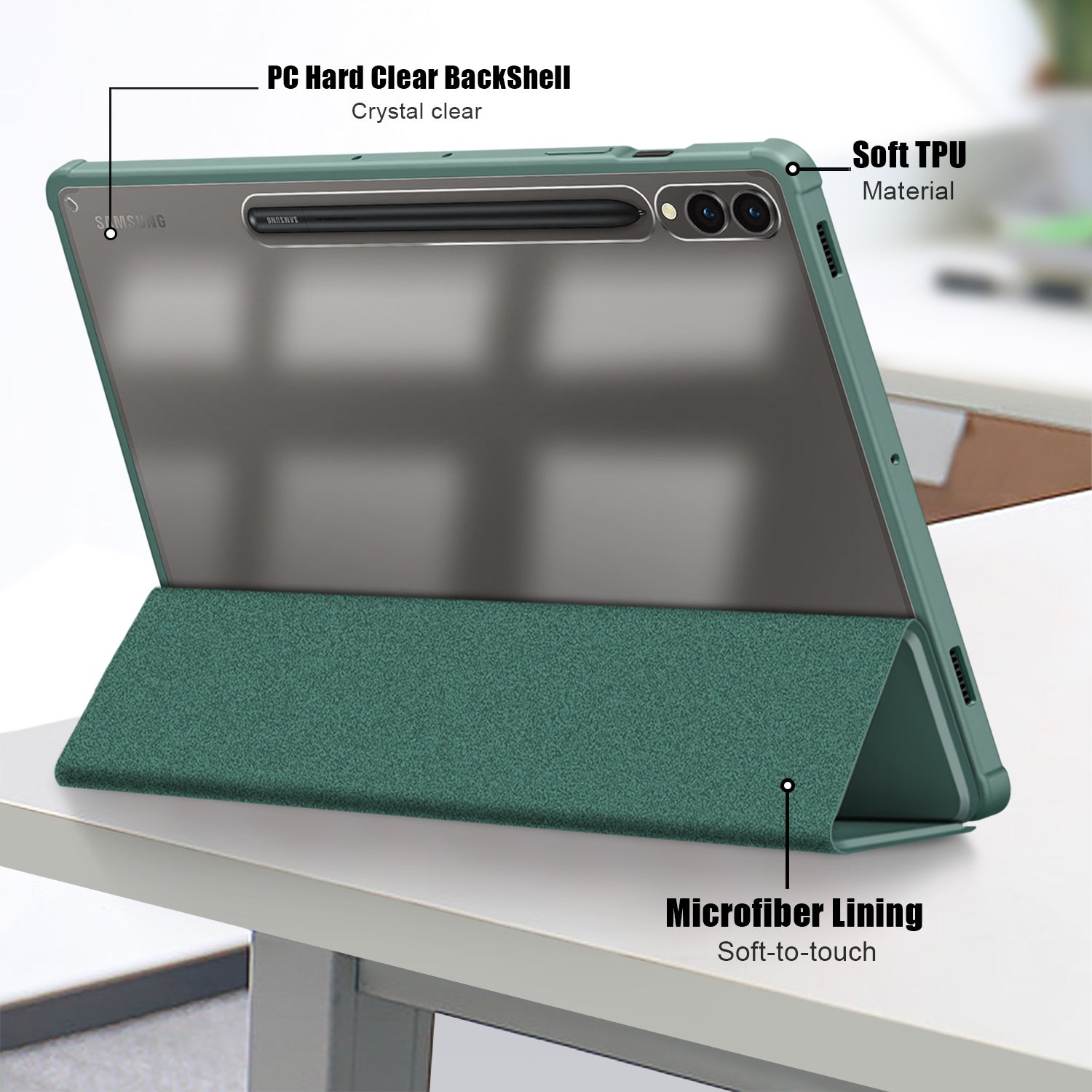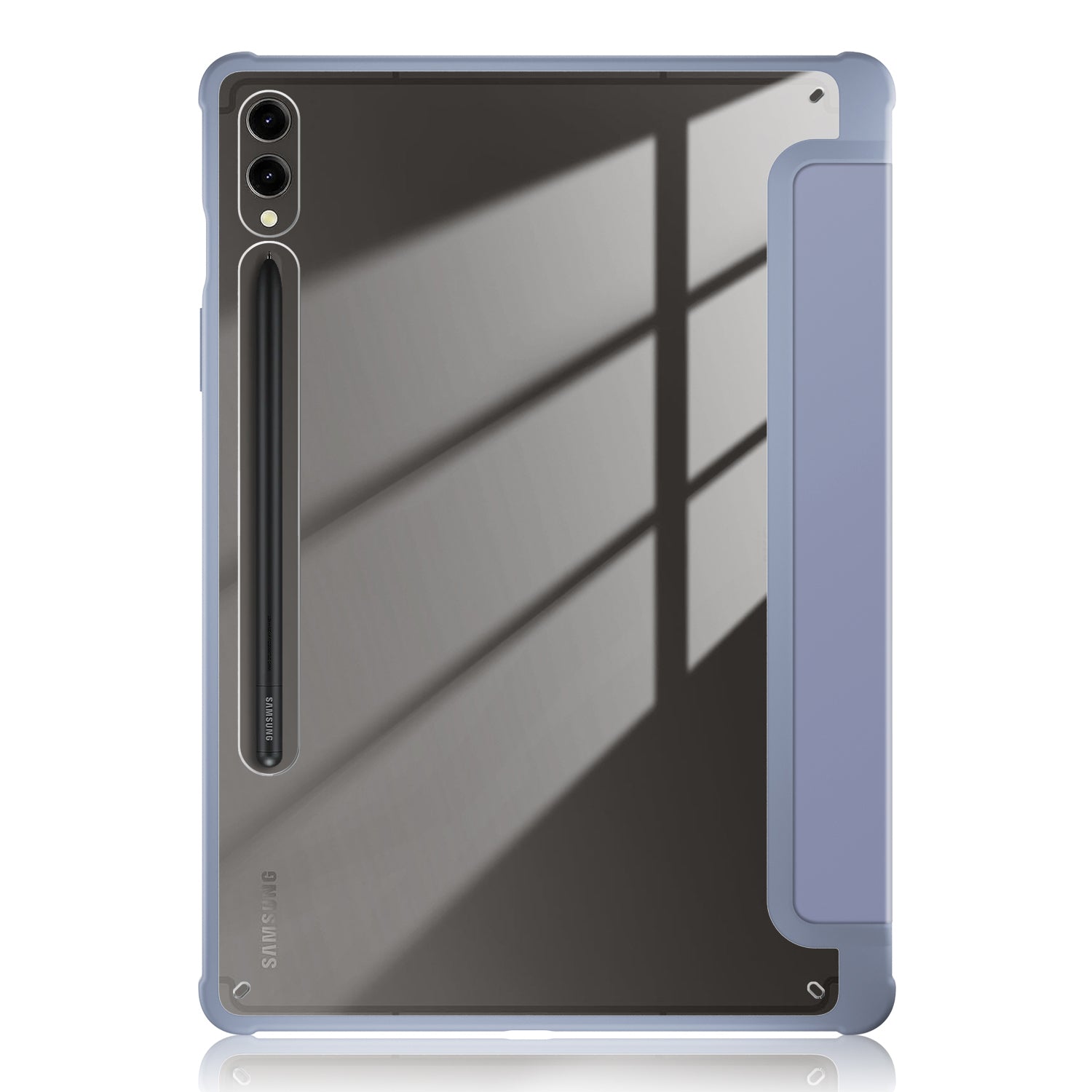 For Samsung Galaxy Tab S9+ (SM-X810 / SM-X816B / SM-X818U) Pen Slot Tablet Case Tri-fold Stand TPU+Acrylic+PU Leather Cover