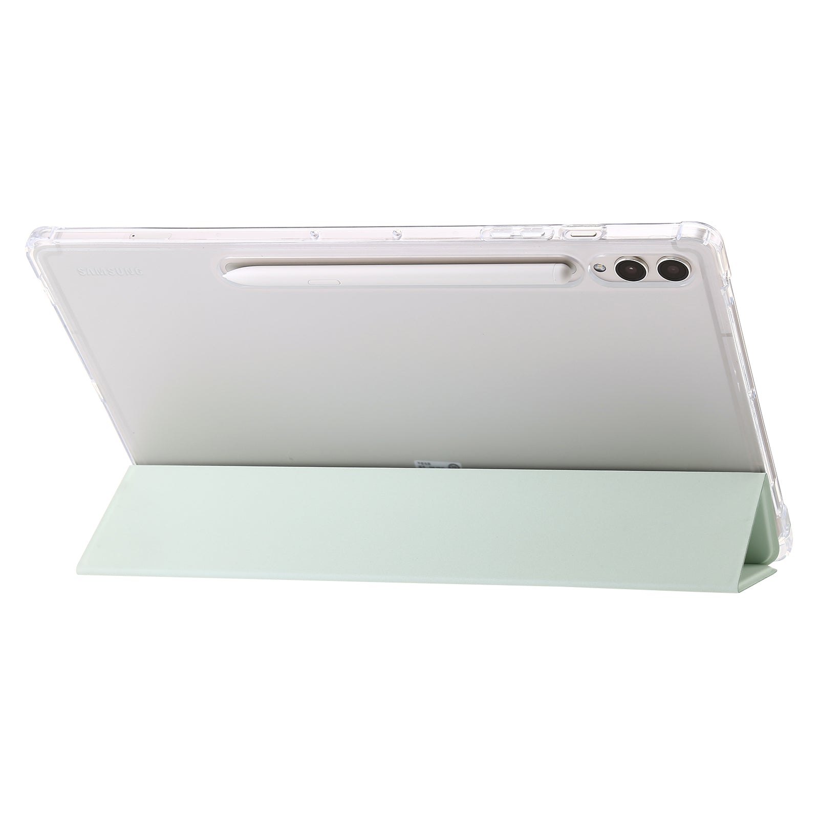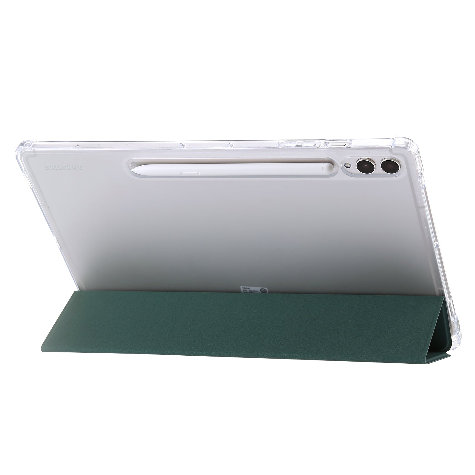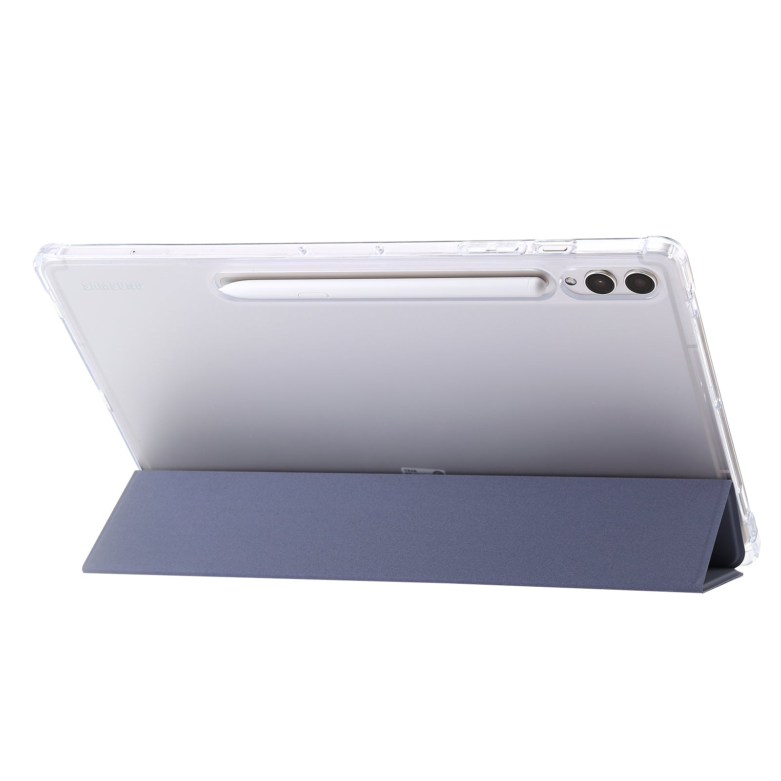 For Samsung Galaxy Tab S9+ Tri-fold Stand Smart Cover PU Leather+Acrylic+TPU Transparent Tablet Case