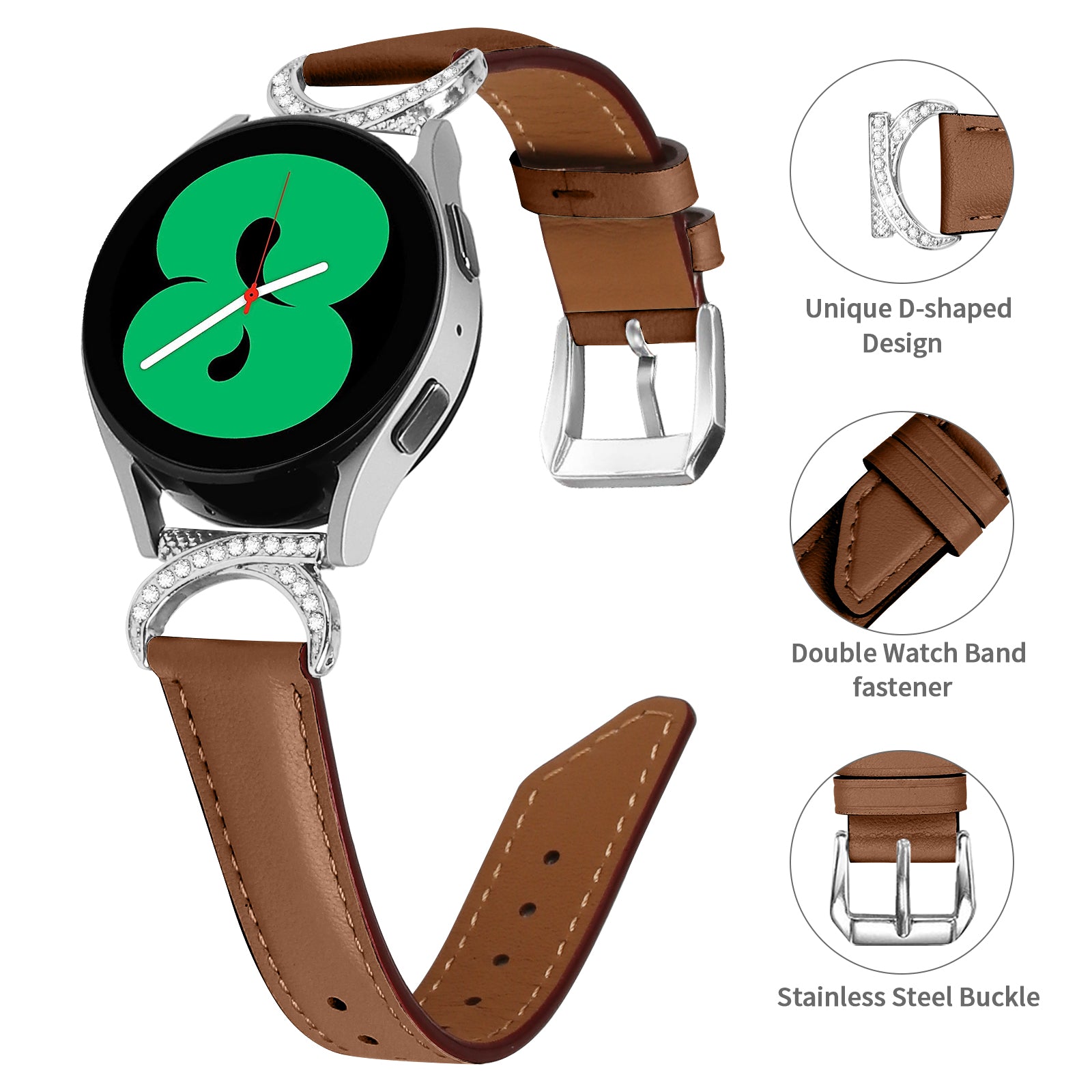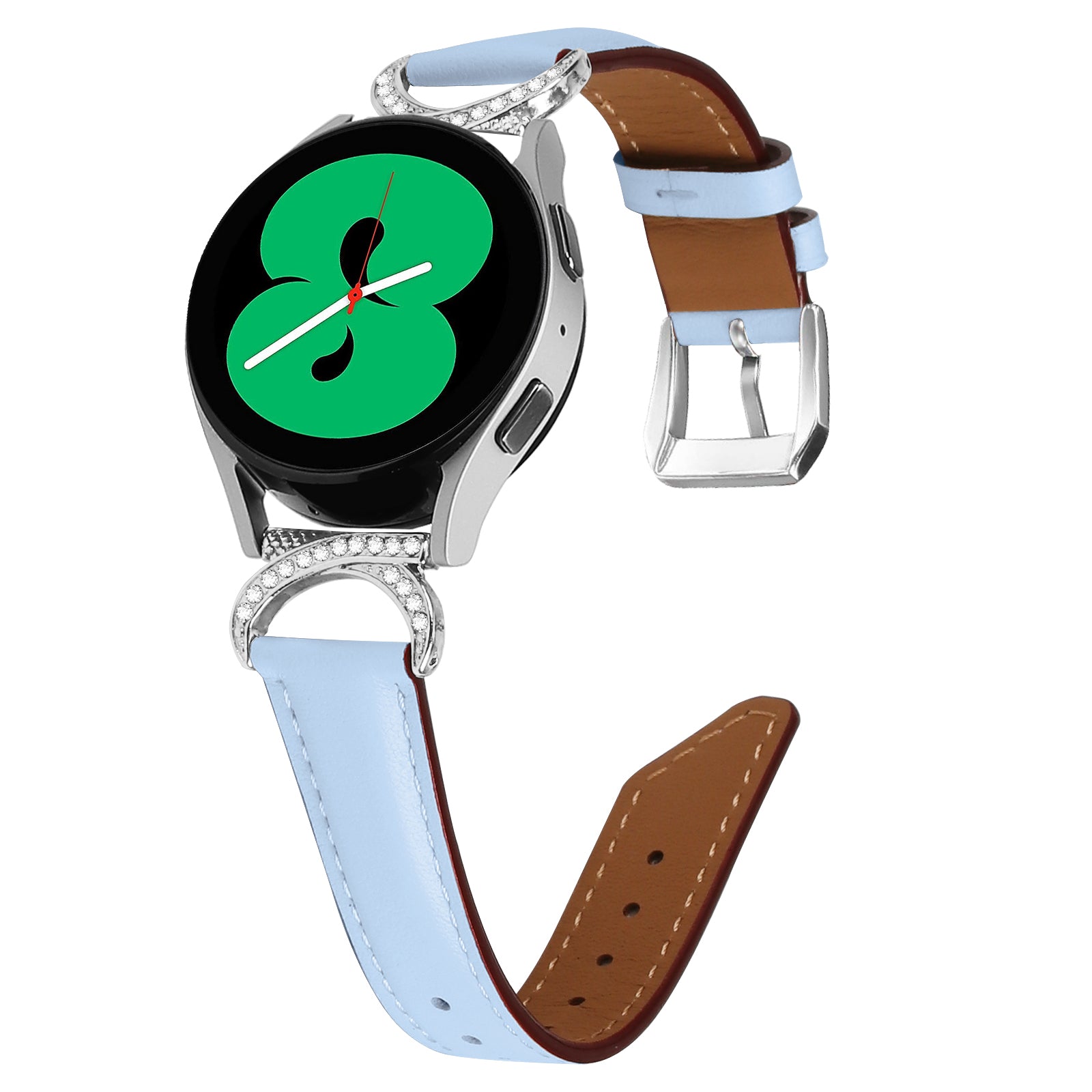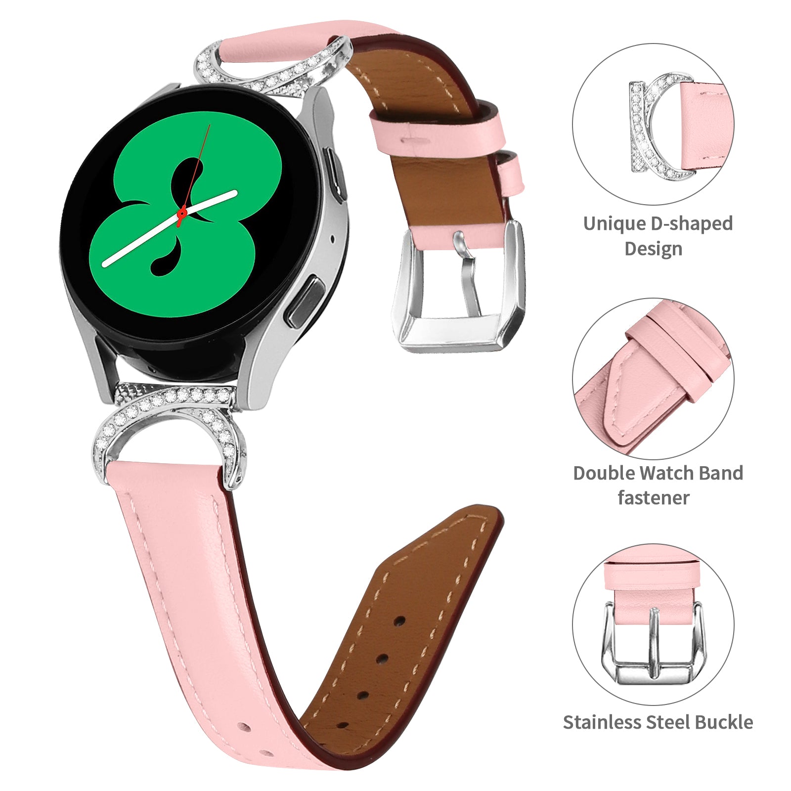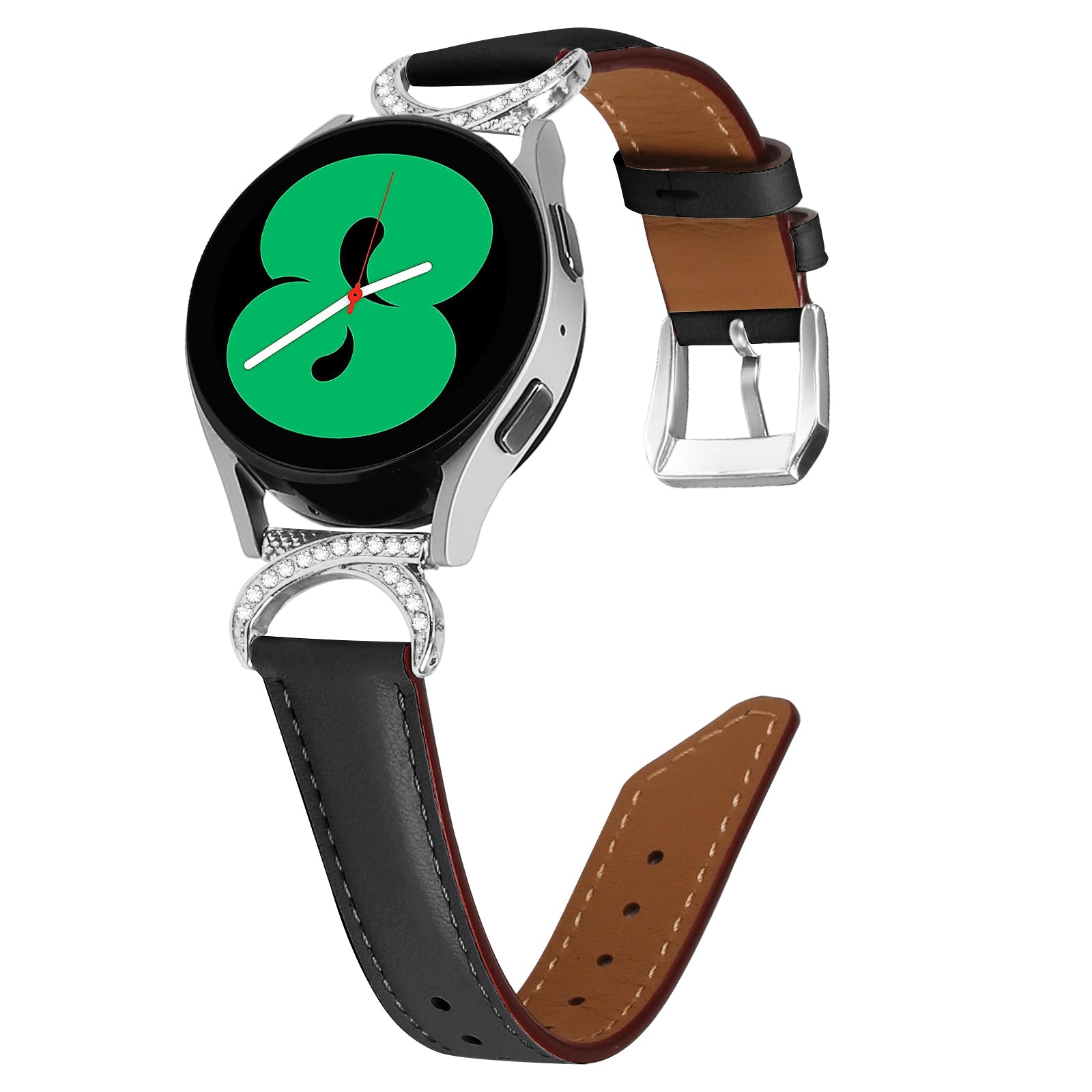 For Samsung Galaxy Watch 3 41mm / Watch 5 40mm / 44mm Replacement Strap 20mm Rhinestone D-shape Connector Split Leather Band with Silver Buckle