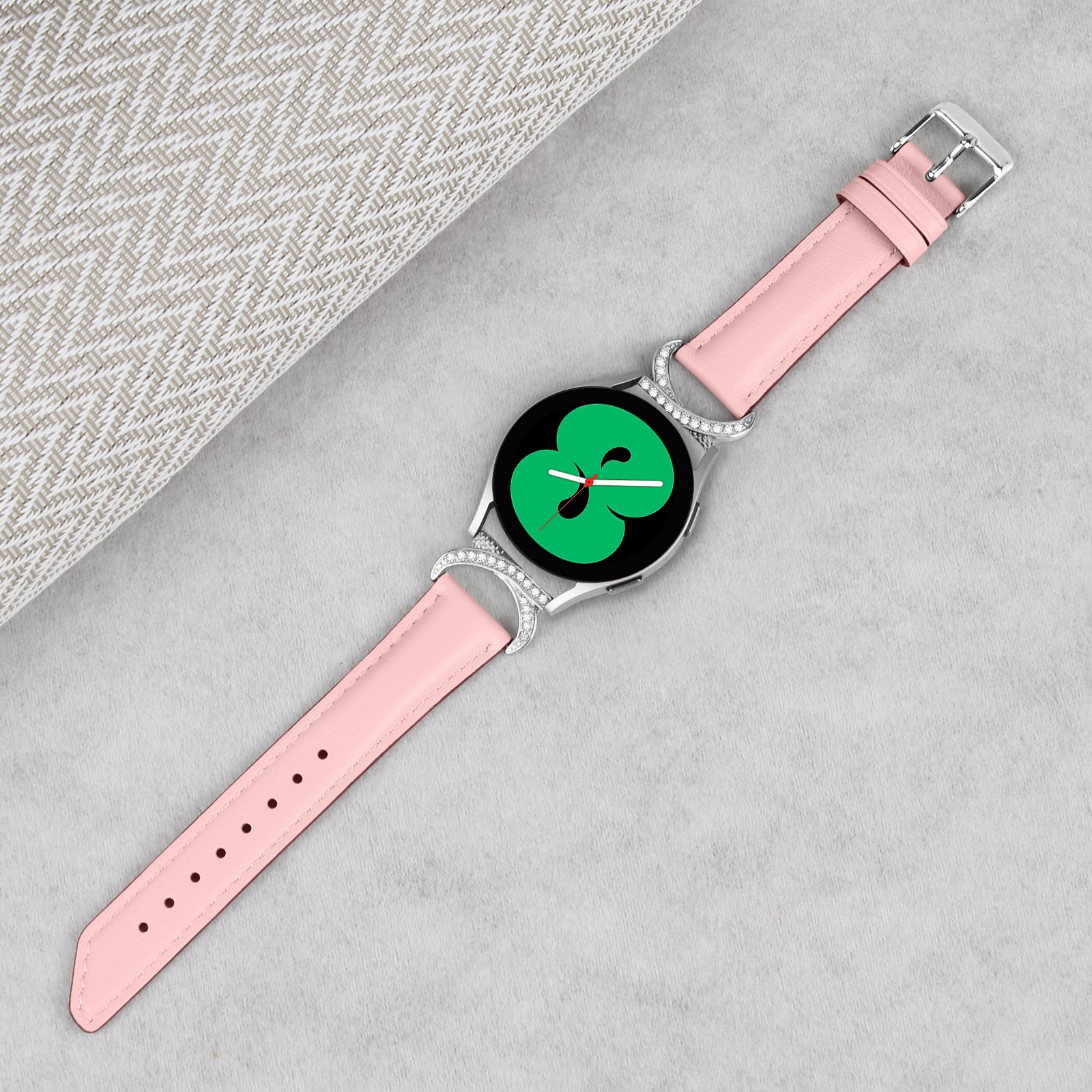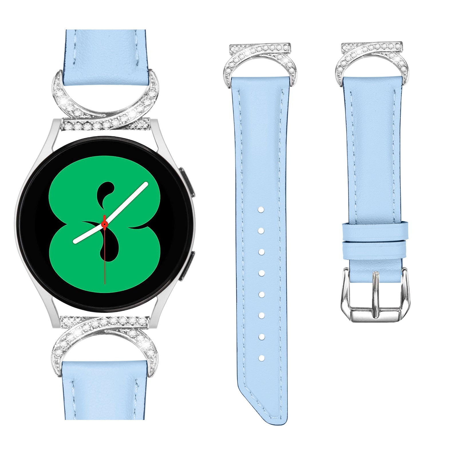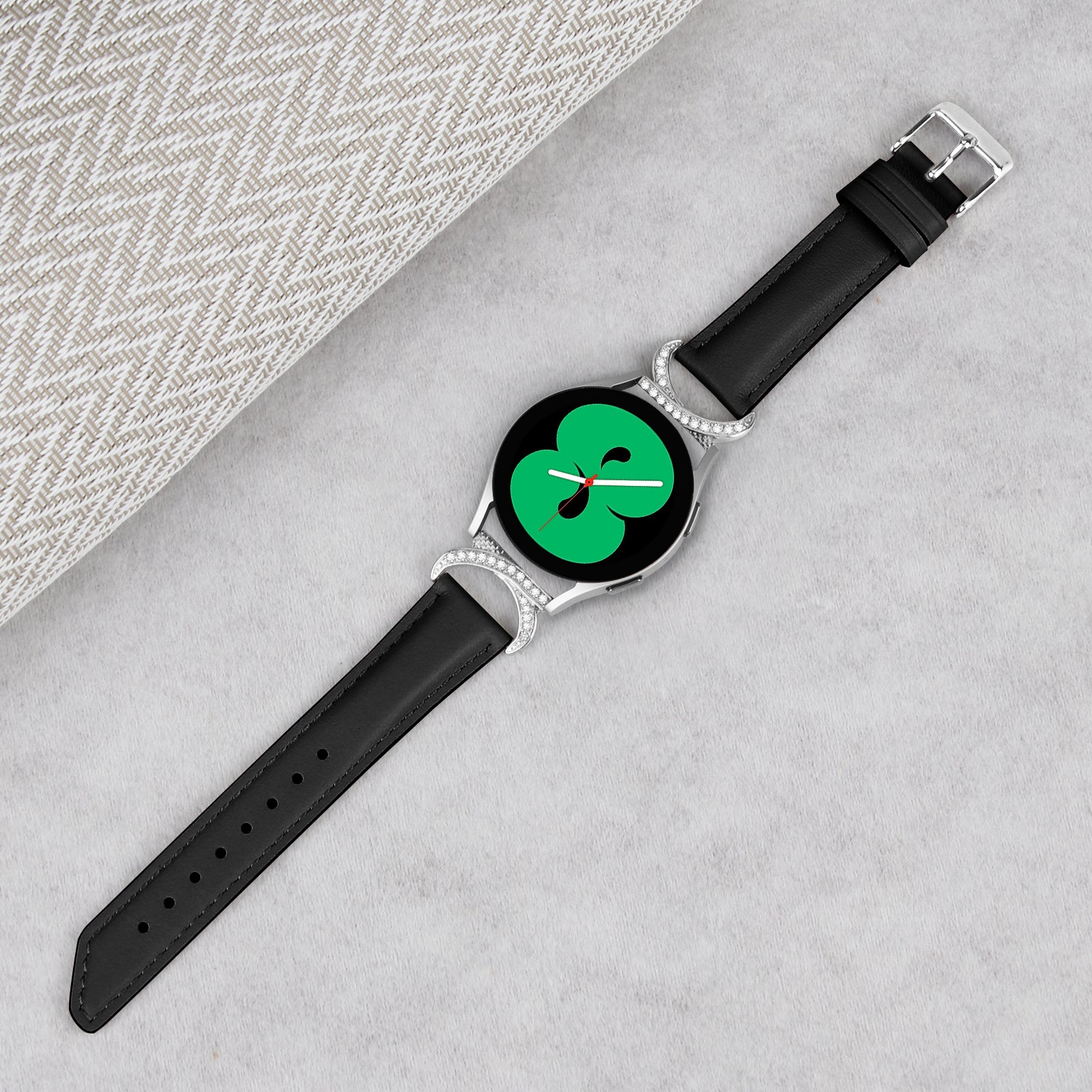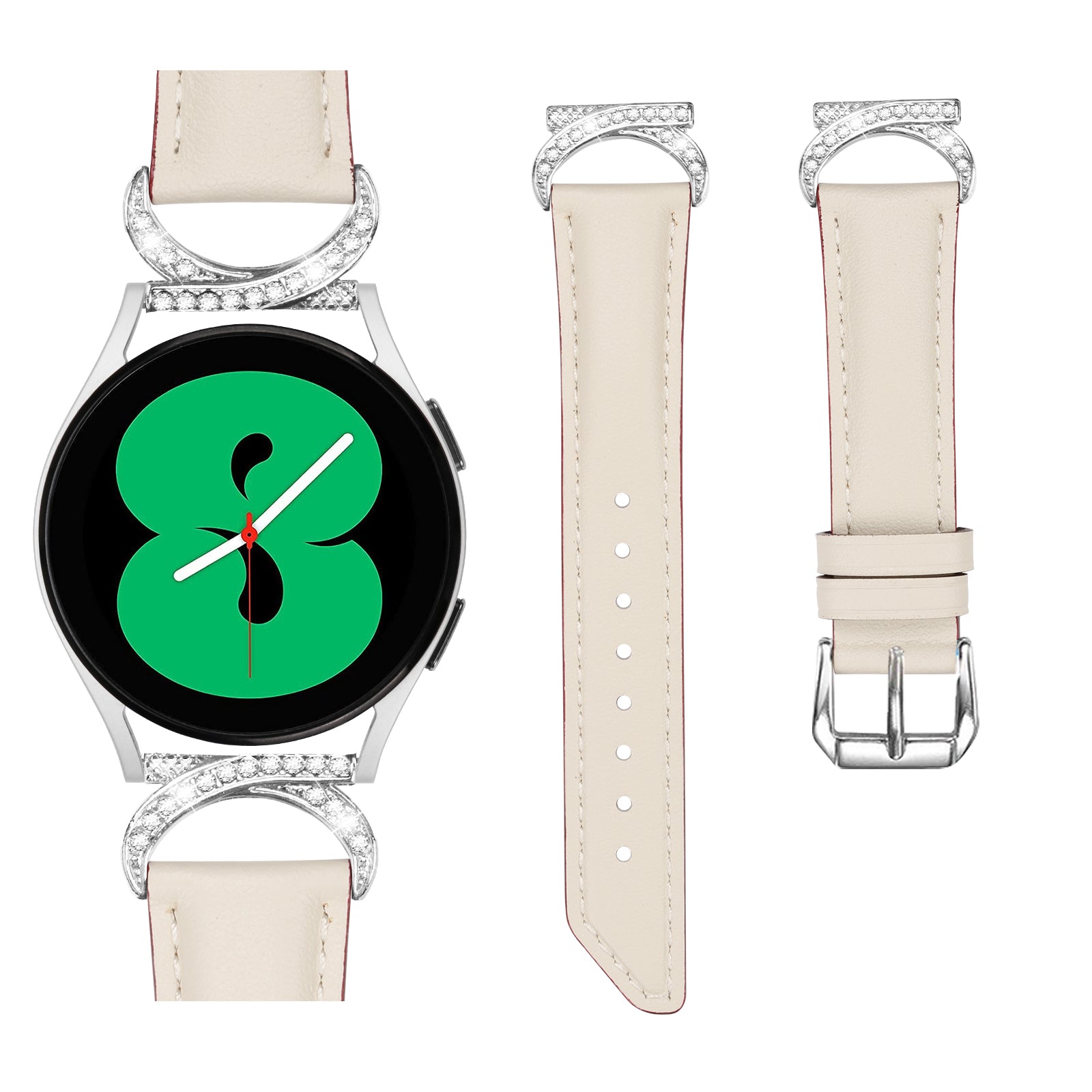 For Samsung Galaxy Watch 3 41mm / Watch 5 40mm / 44mm Replacement Strap 20mm Rhinestone D-shape Connector Split Leather Band with Silver Buckle