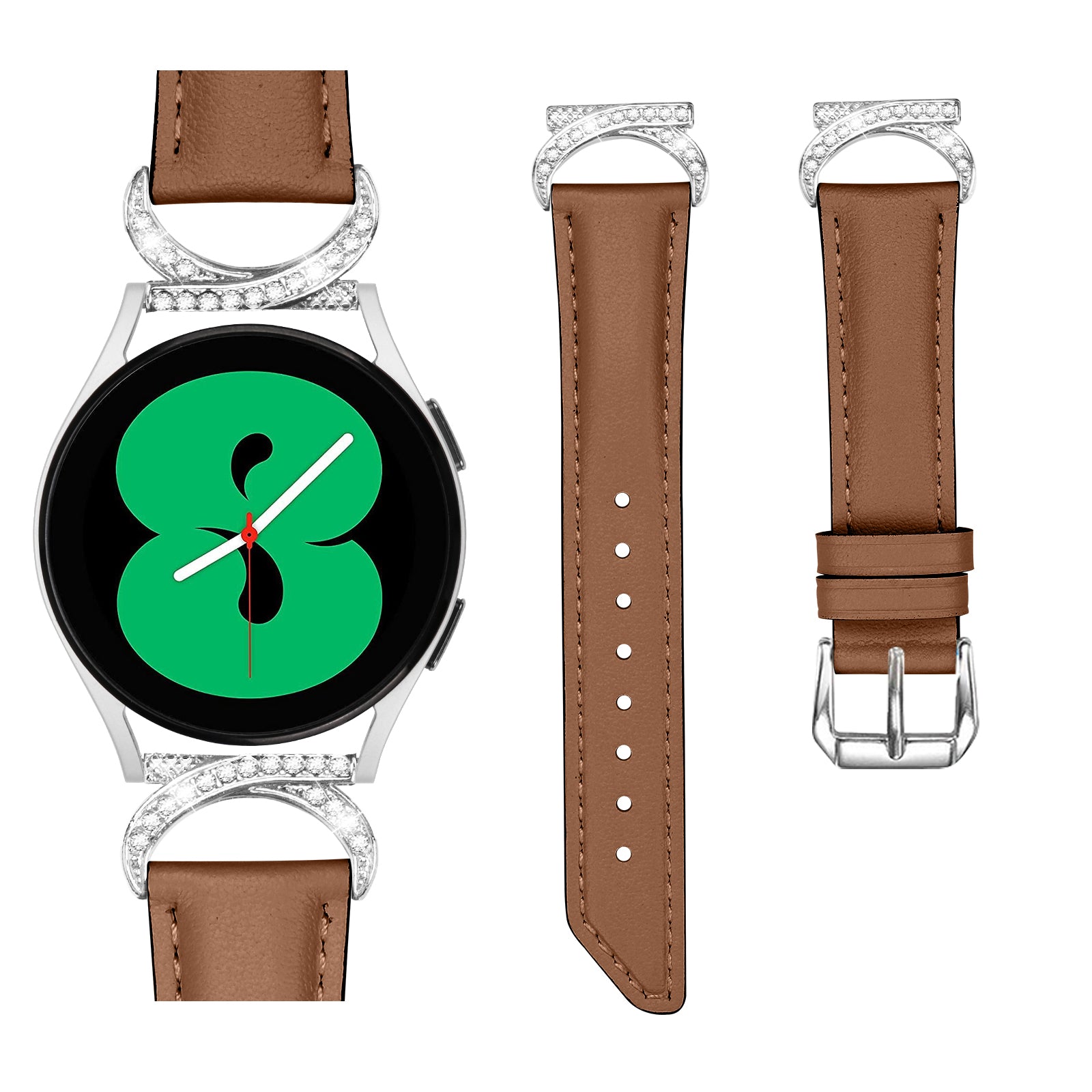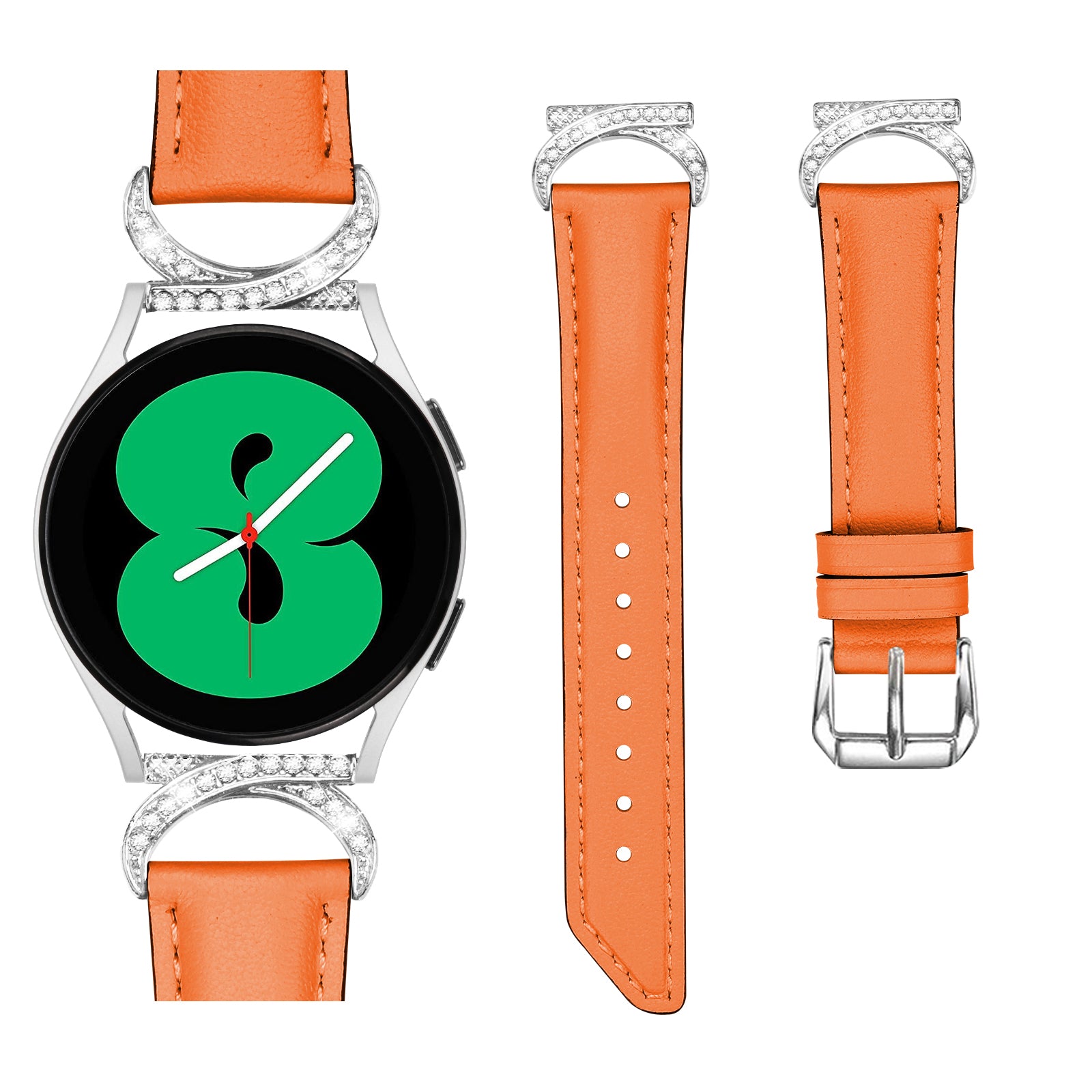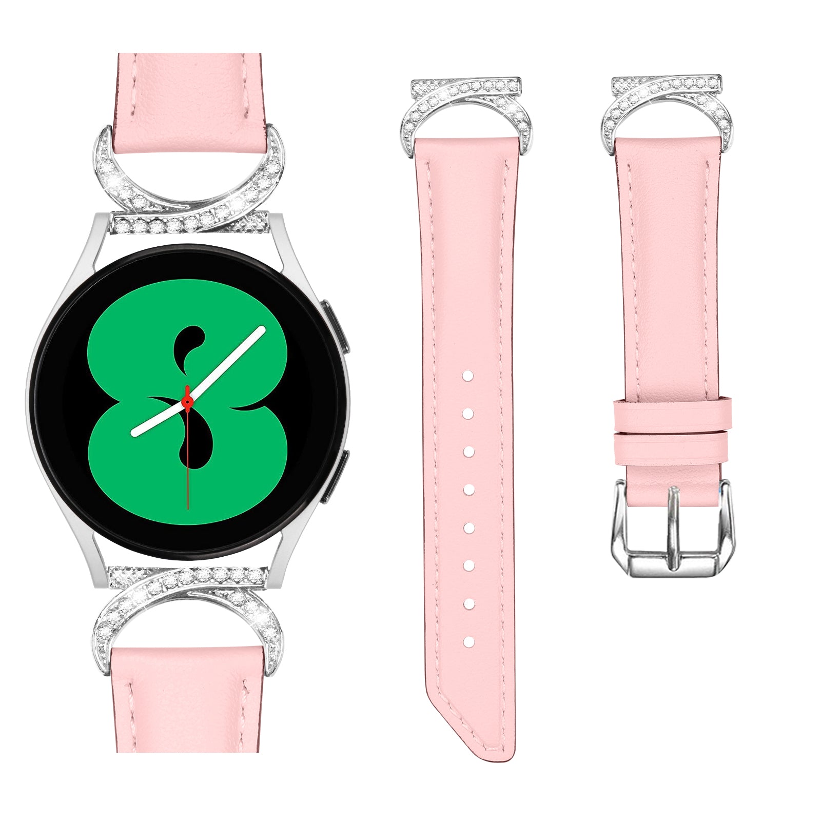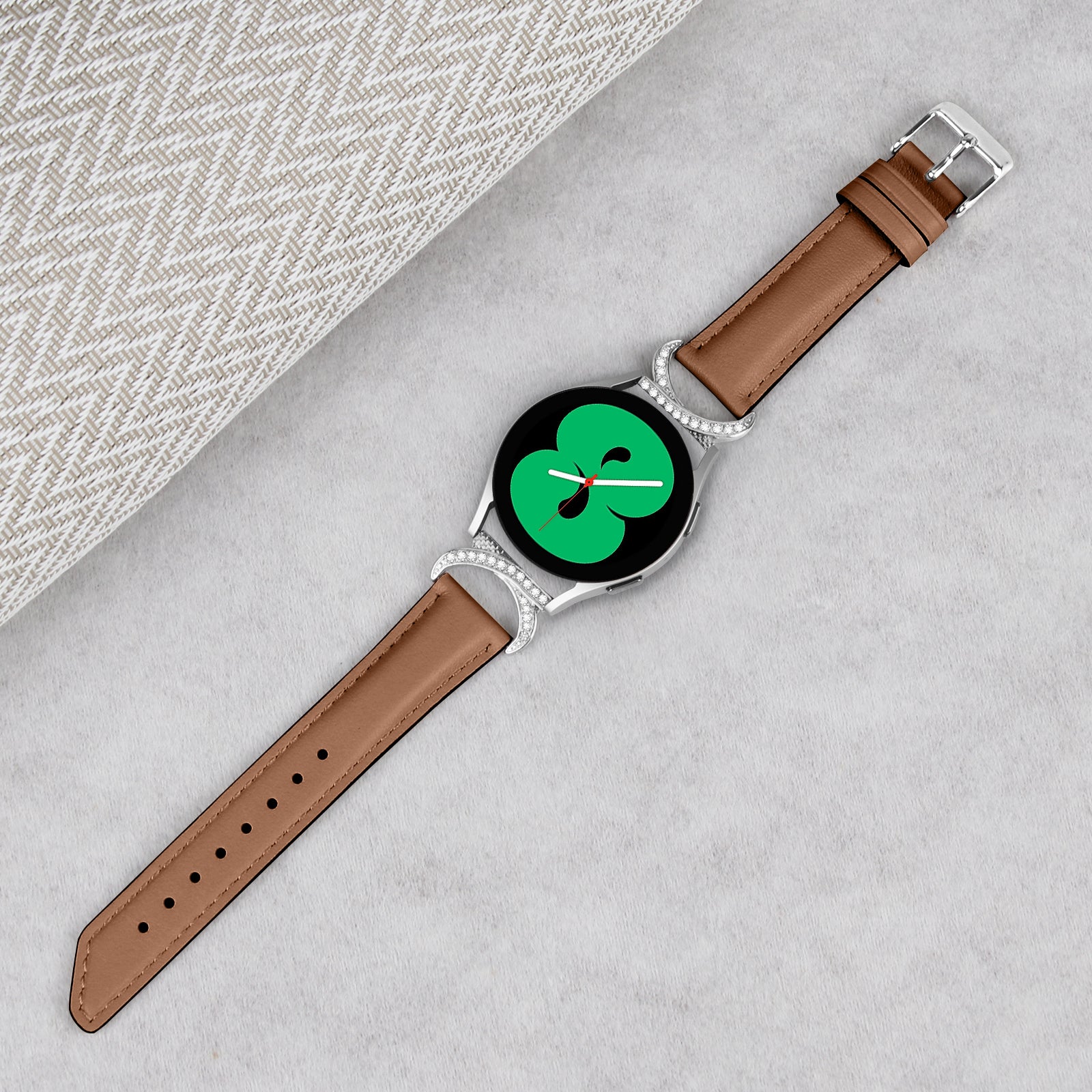 For Samsung Galaxy Watch 3 41mm / Watch 5 40mm / 44mm Replacement Strap 20mm Rhinestone D-shape Connector Split Leather Band with Silver Buckle