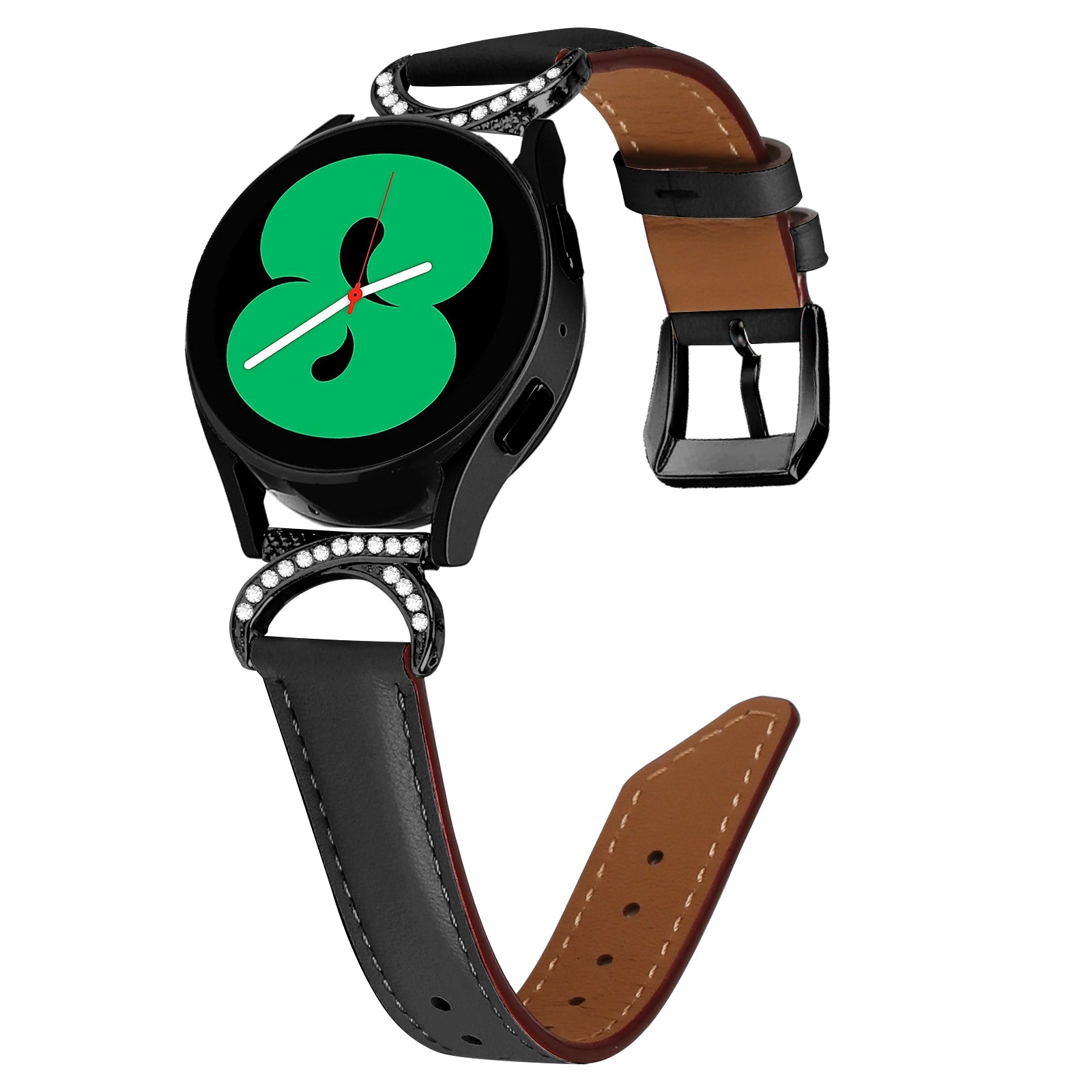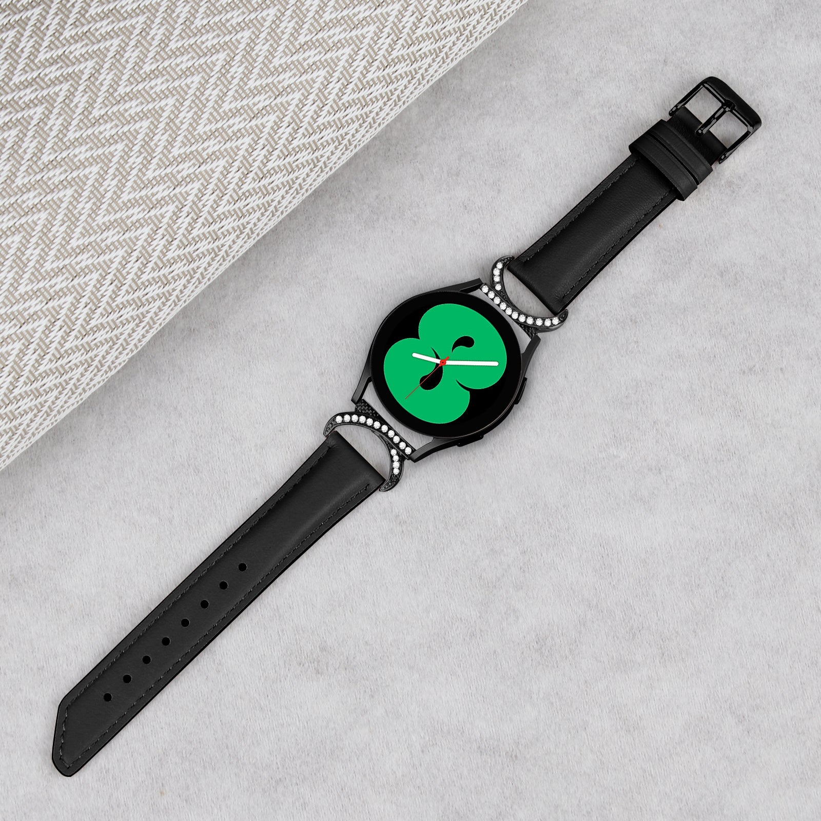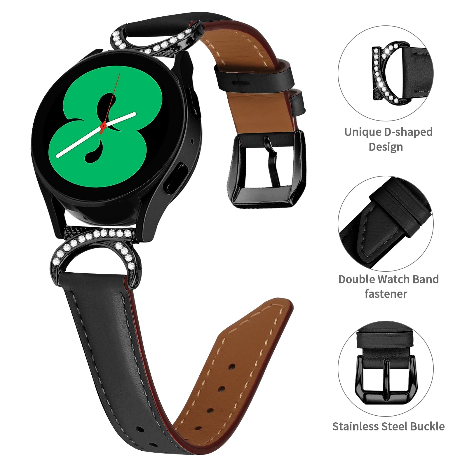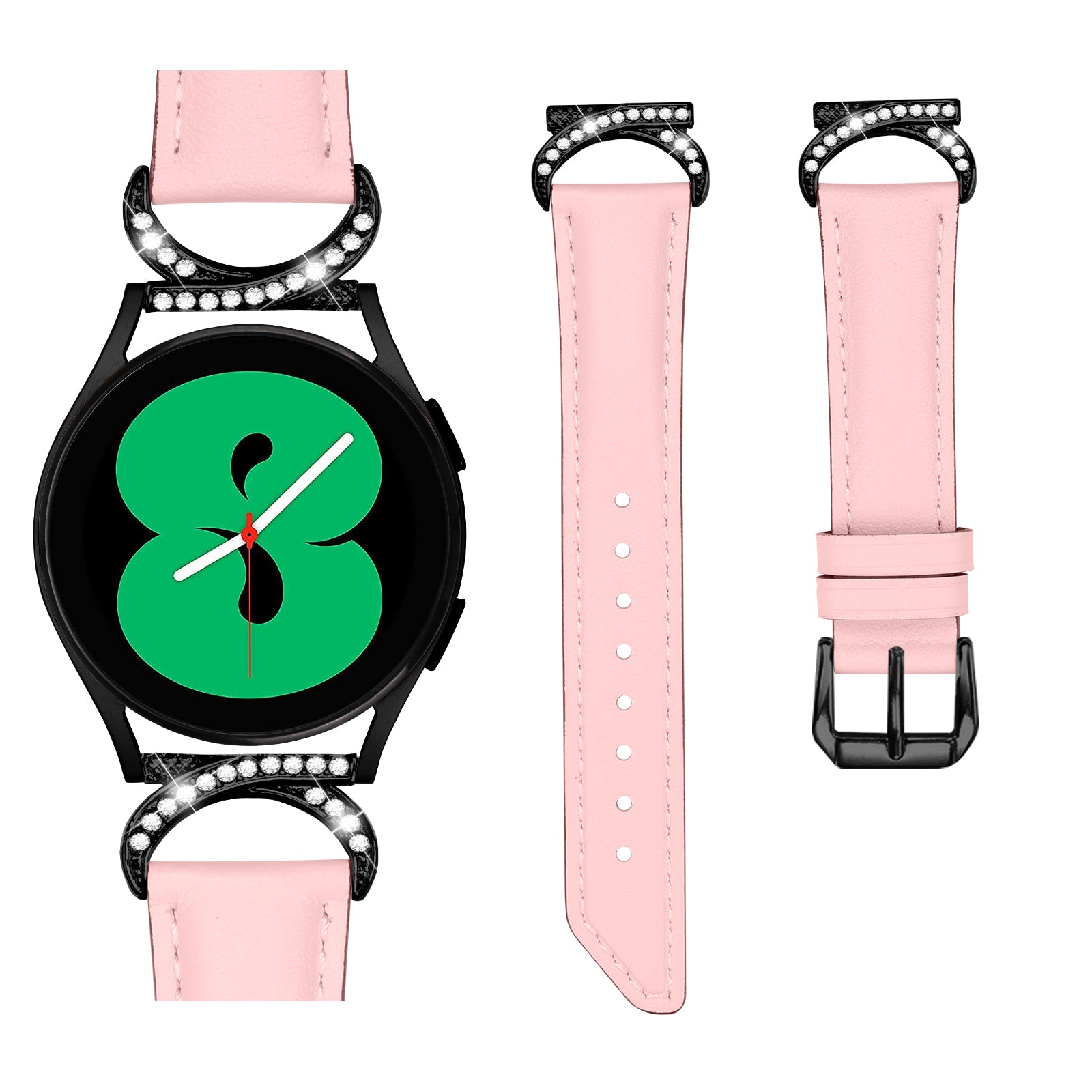 For Samsung Galaxy Watch 3 41mm / Watch 5 40mm / 44mm Replacement Wrist Band 20mm Rhinestone D-shape Connector Split Leather Strap with Black Buckle