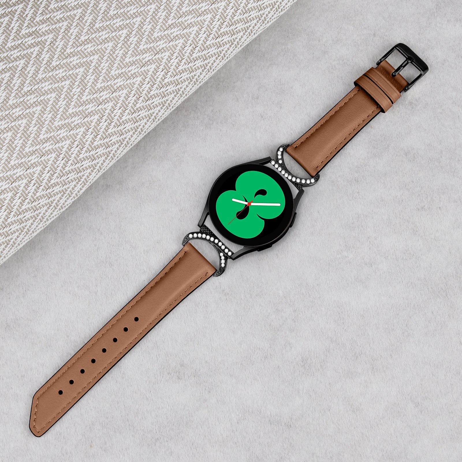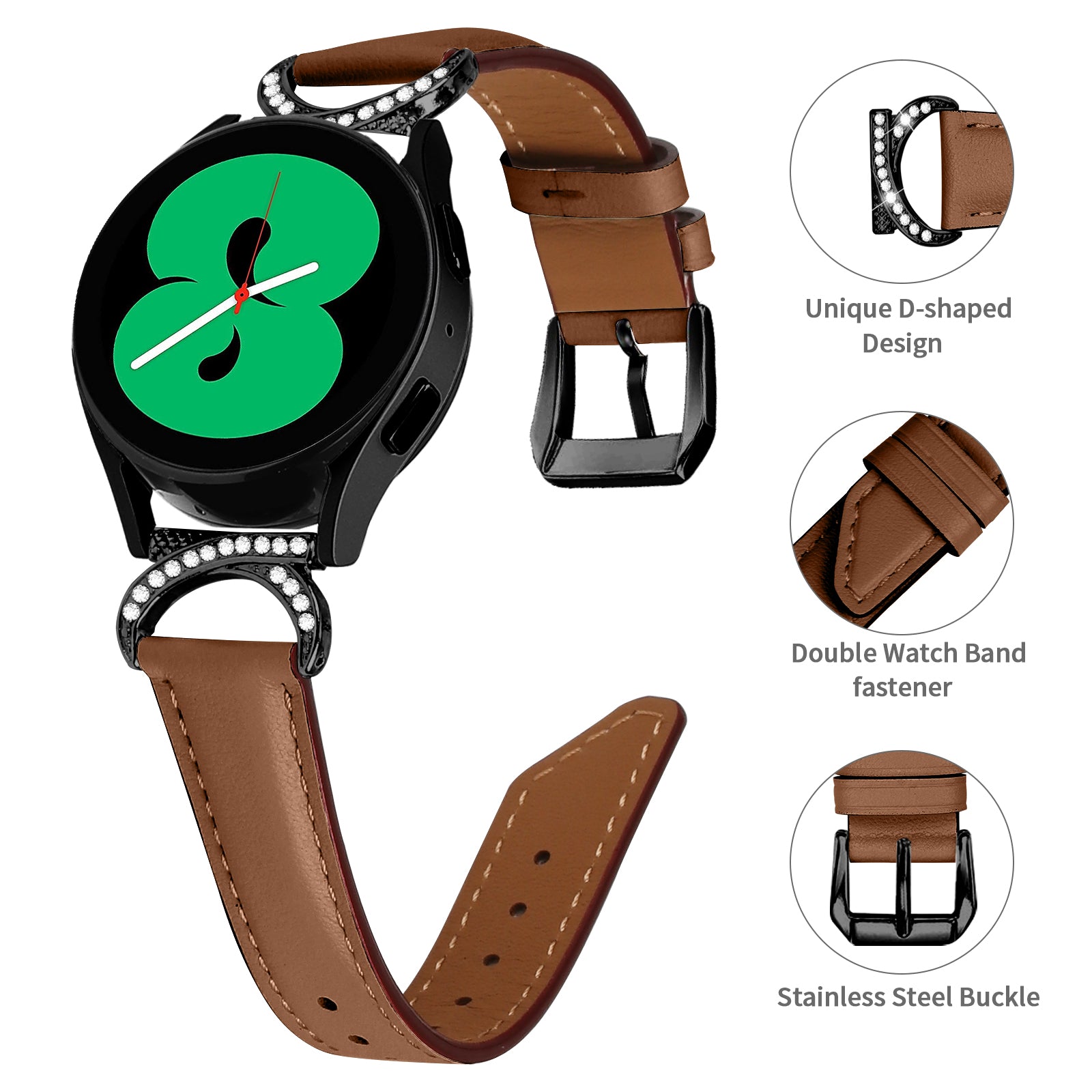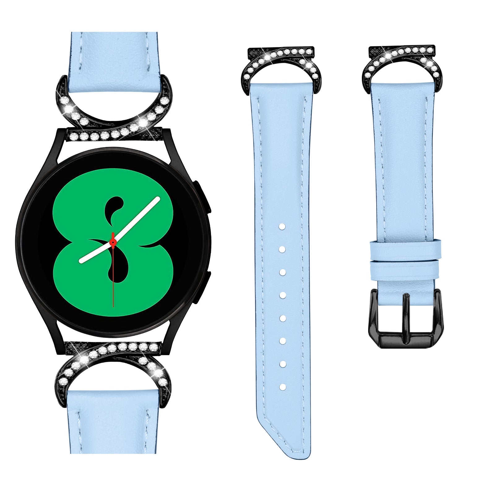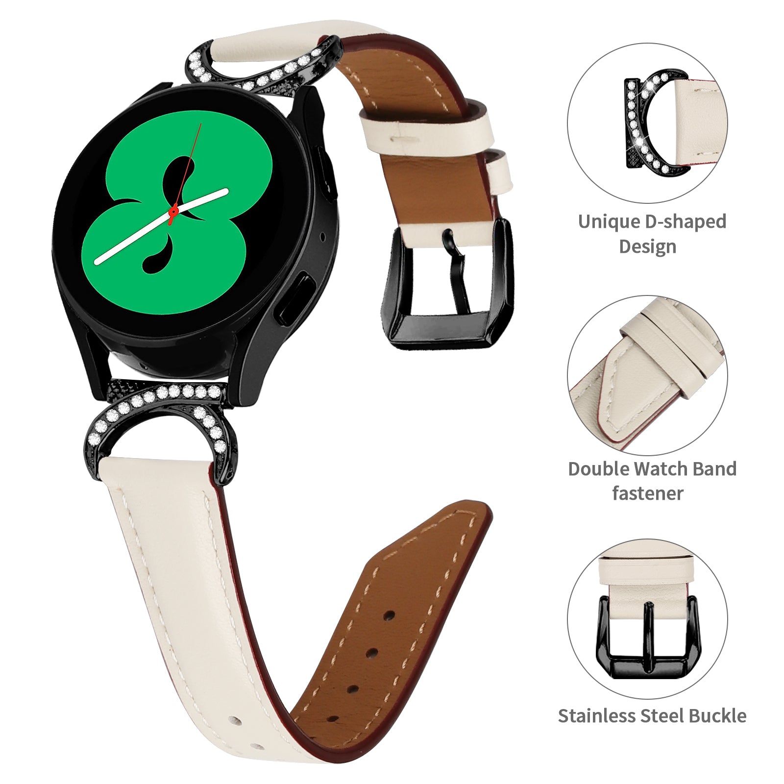 For Samsung Galaxy Watch 3 41mm / Watch 5 40mm / 44mm Replacement Wrist Band 20mm Rhinestone D-shape Connector Split Leather Strap with Black Buckle