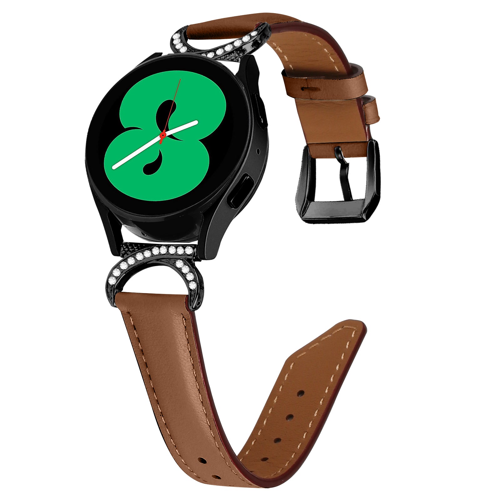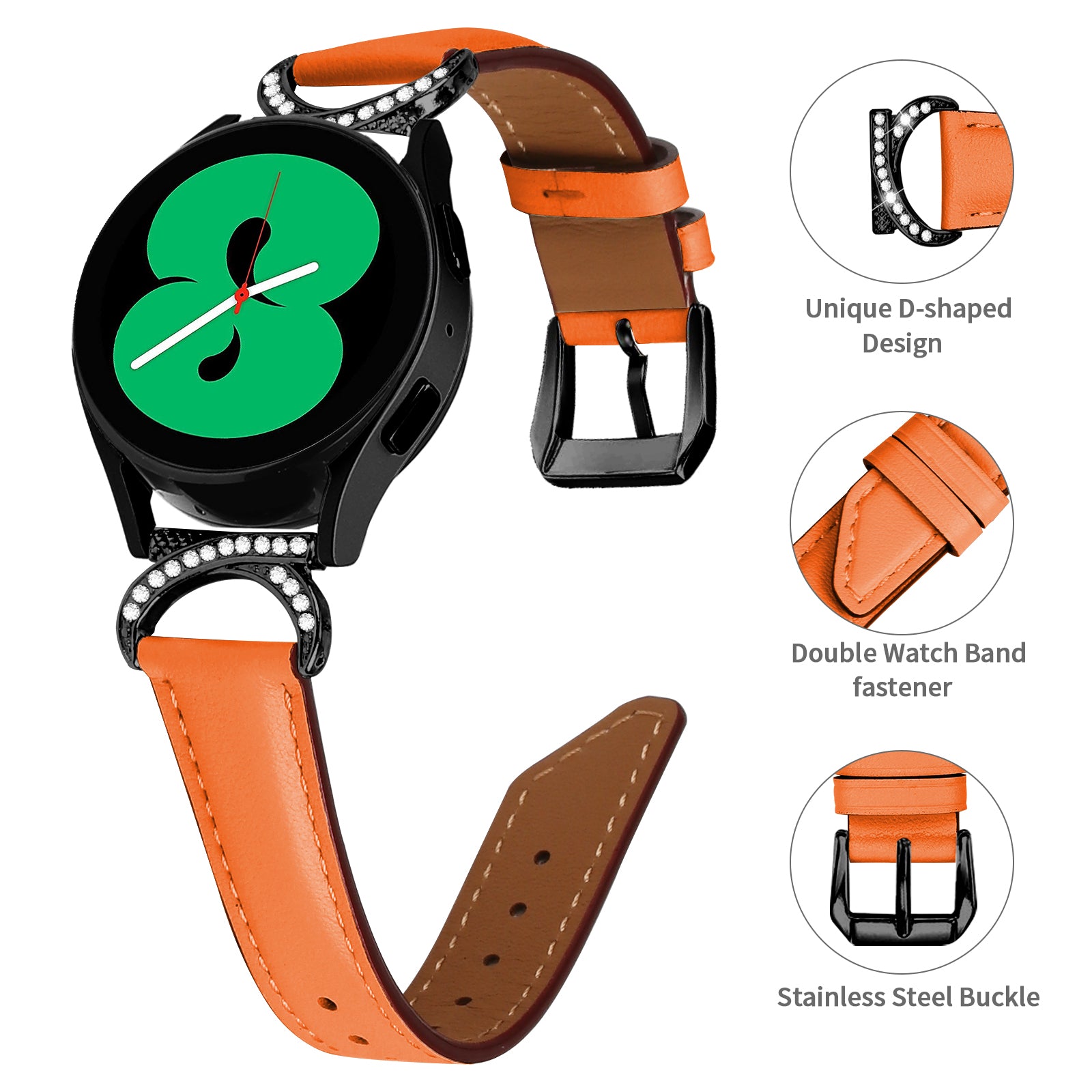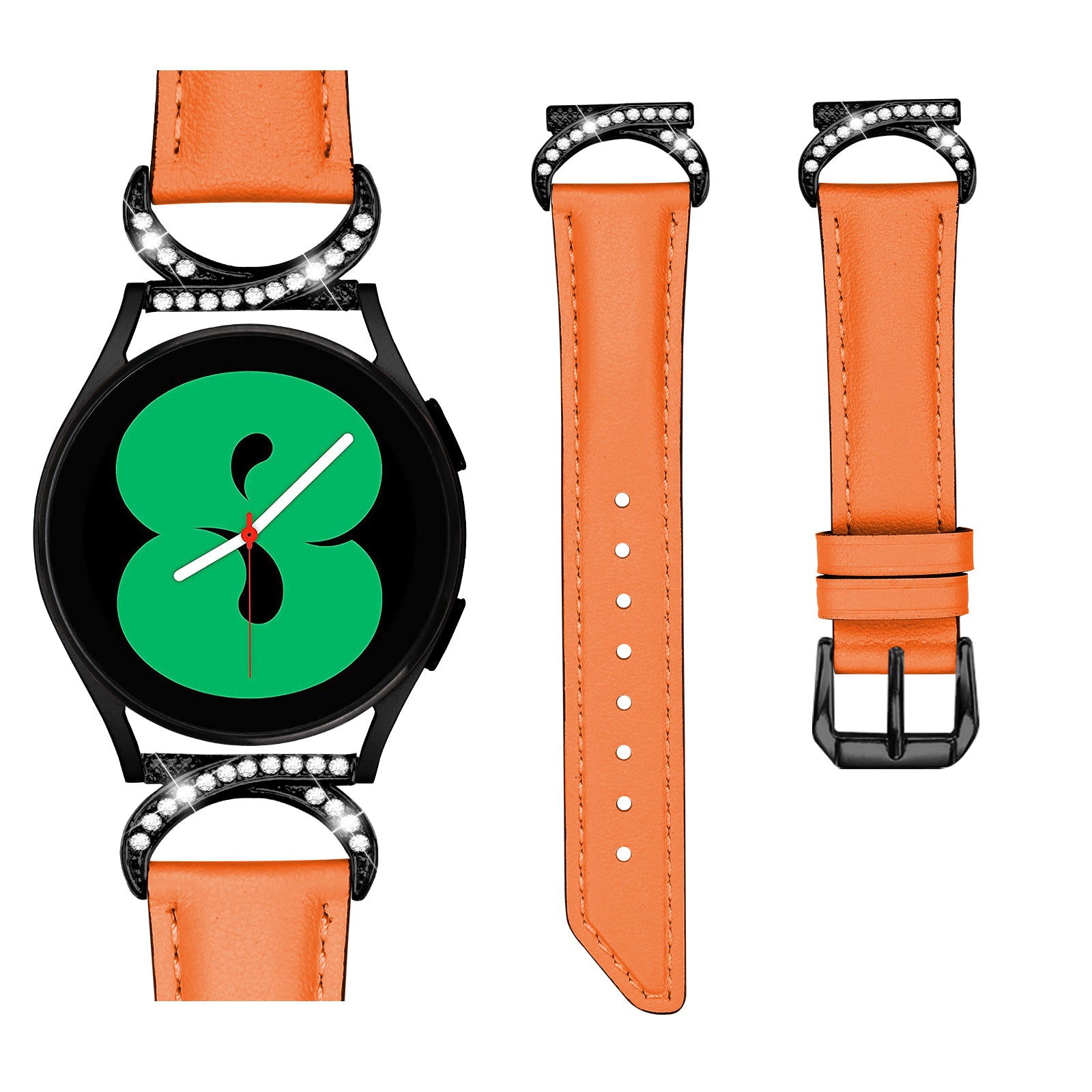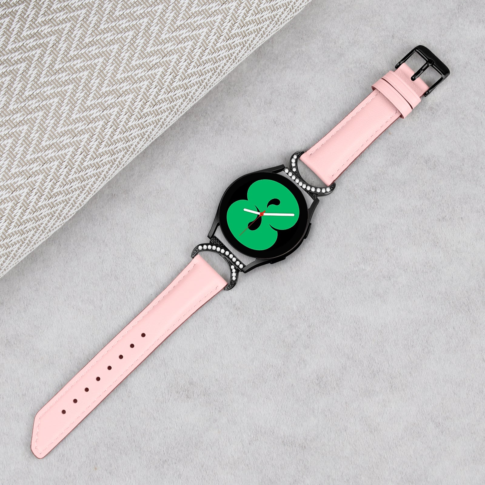 For Samsung Galaxy Watch 3 41mm / Watch 5 40mm / 44mm Replacement Wrist Band 20mm Rhinestone D-shape Connector Split Leather Strap with Black Buckle