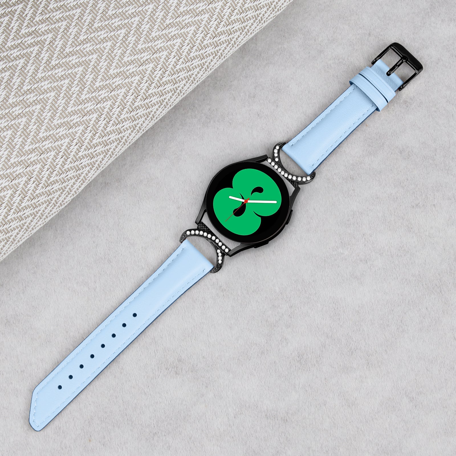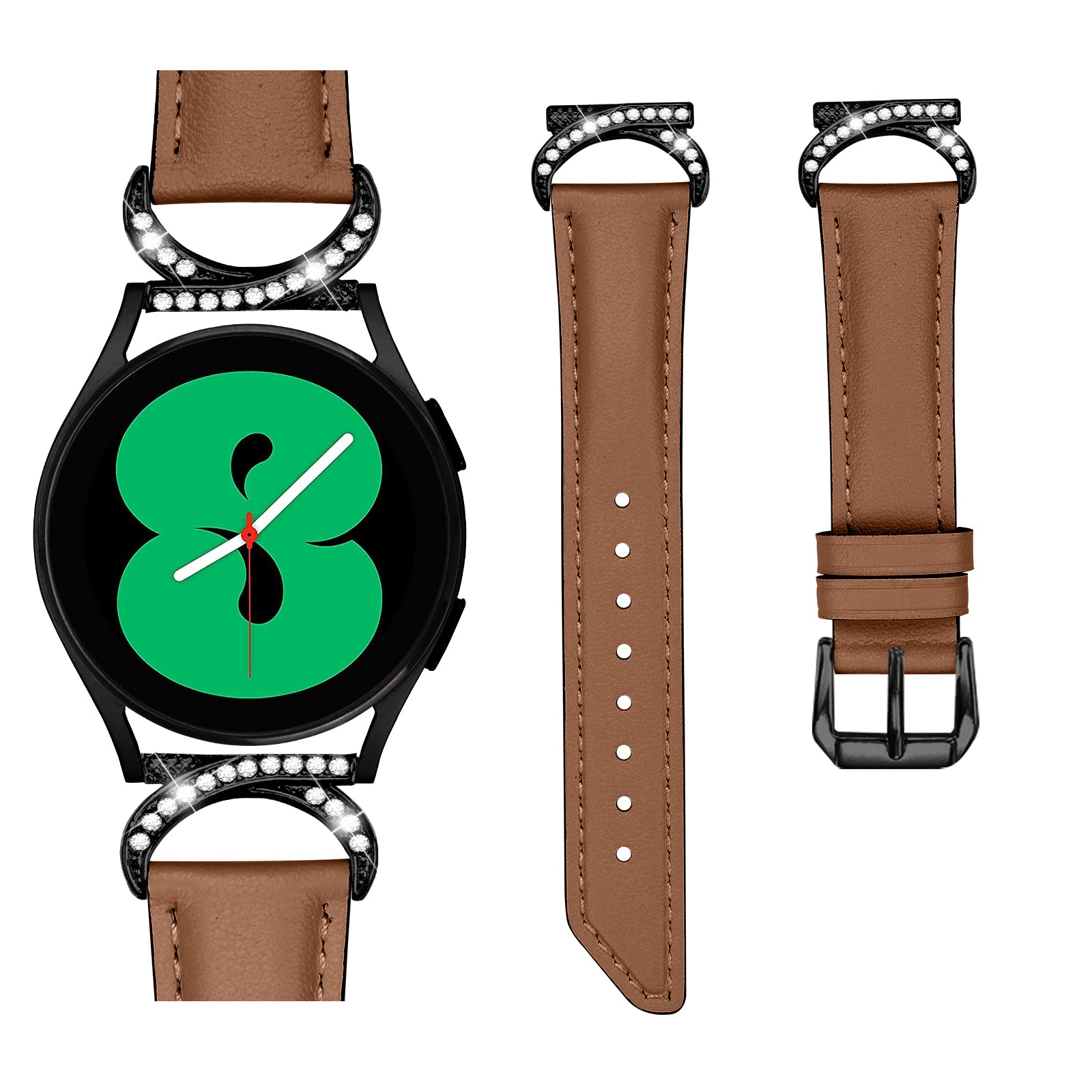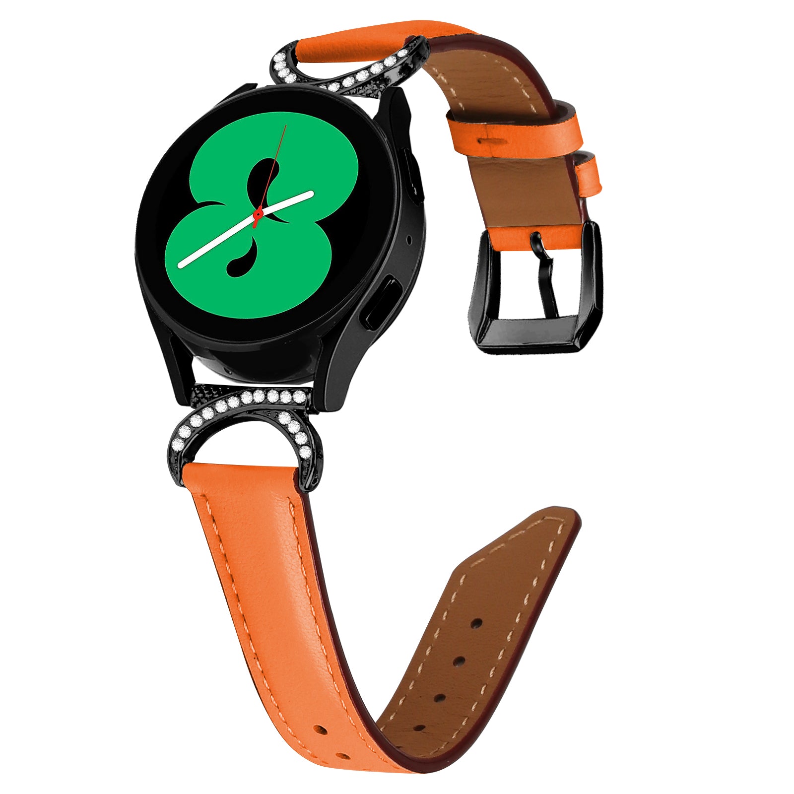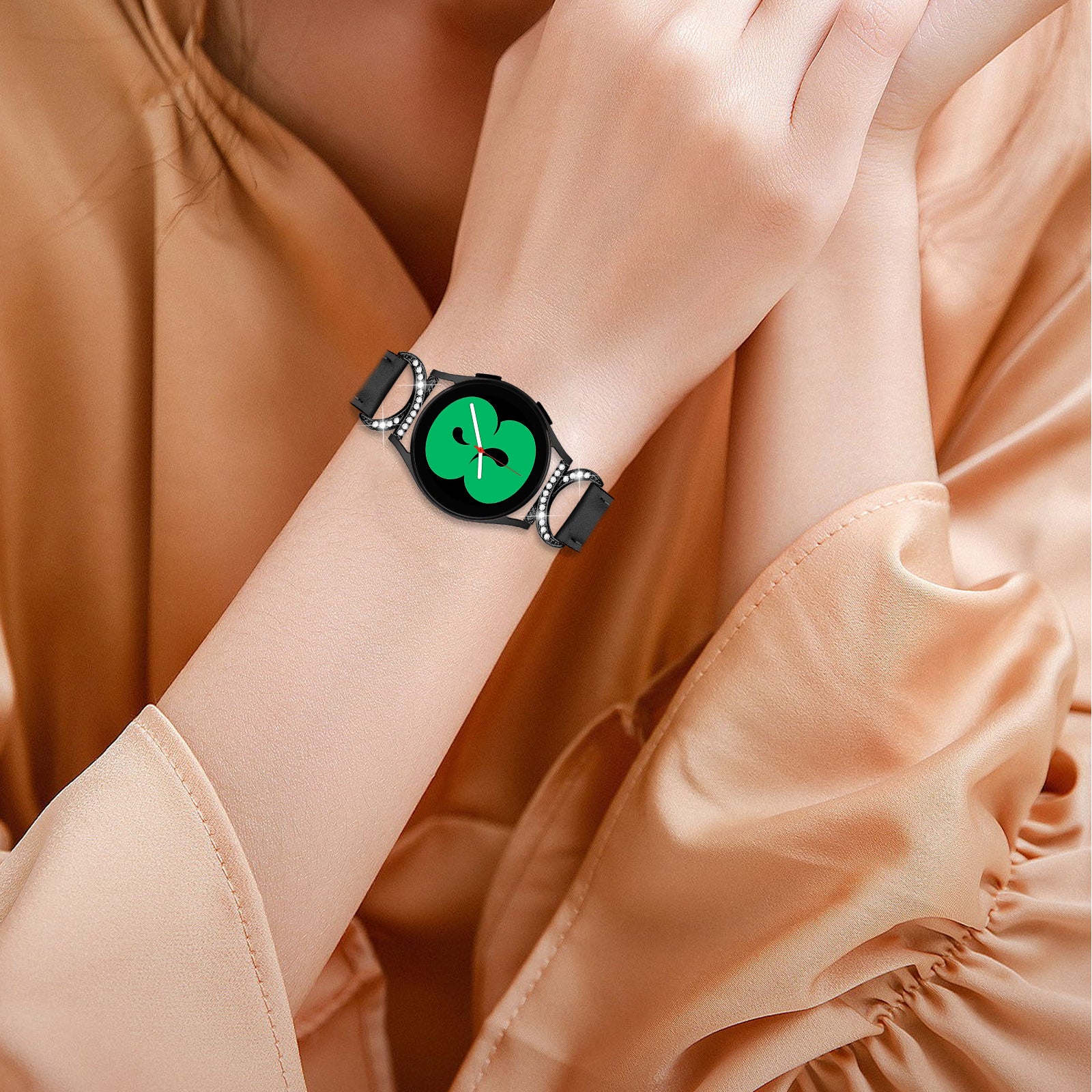 For Samsung Galaxy Watch 3 41mm / Watch 5 40mm / 44mm Replacement Wrist Band 20mm Rhinestone D-shape Connector Split Leather Strap with Black Buckle