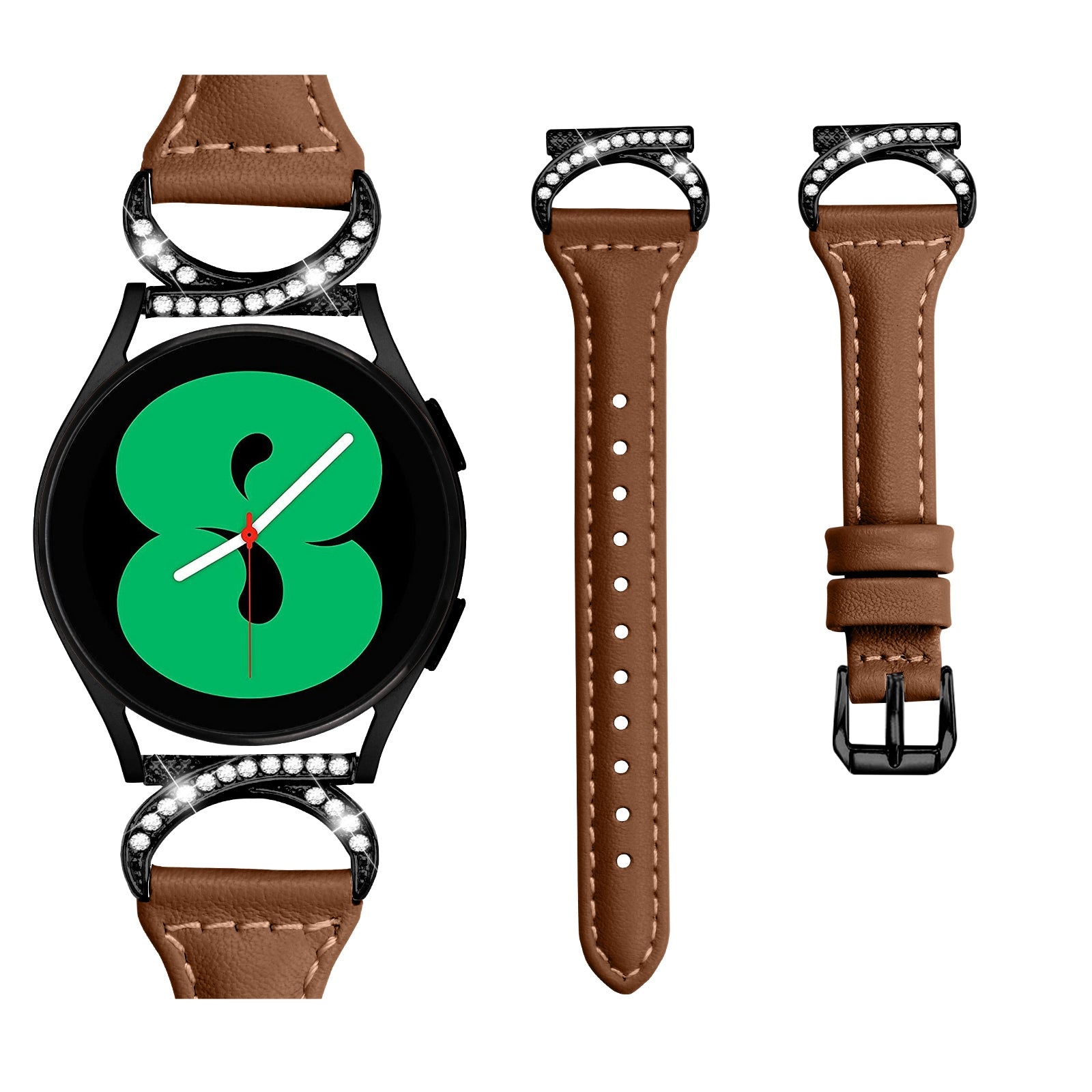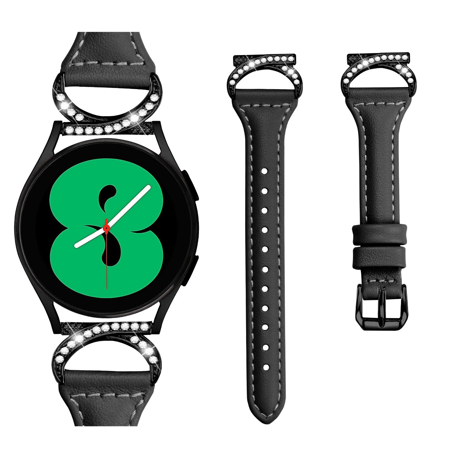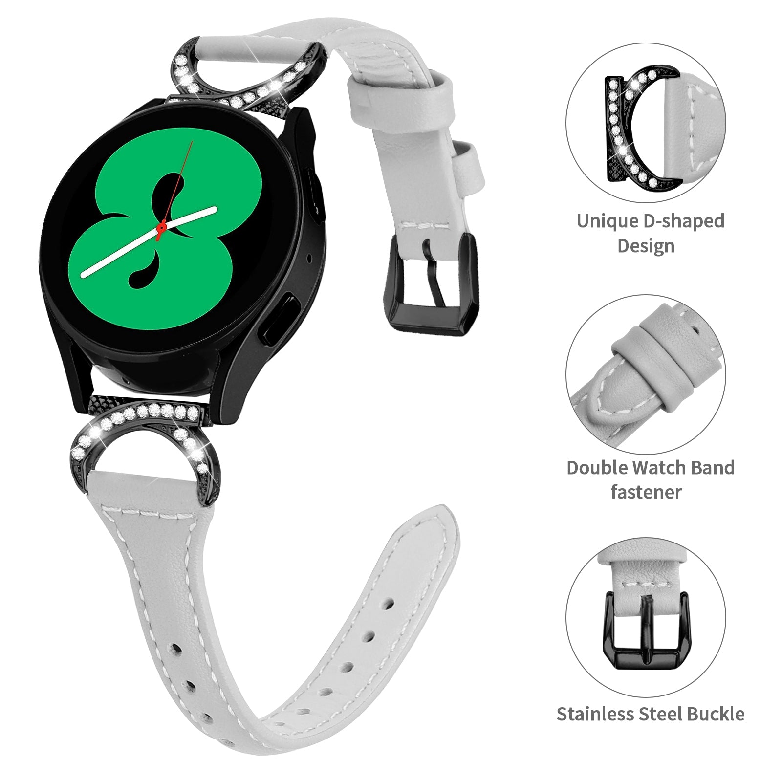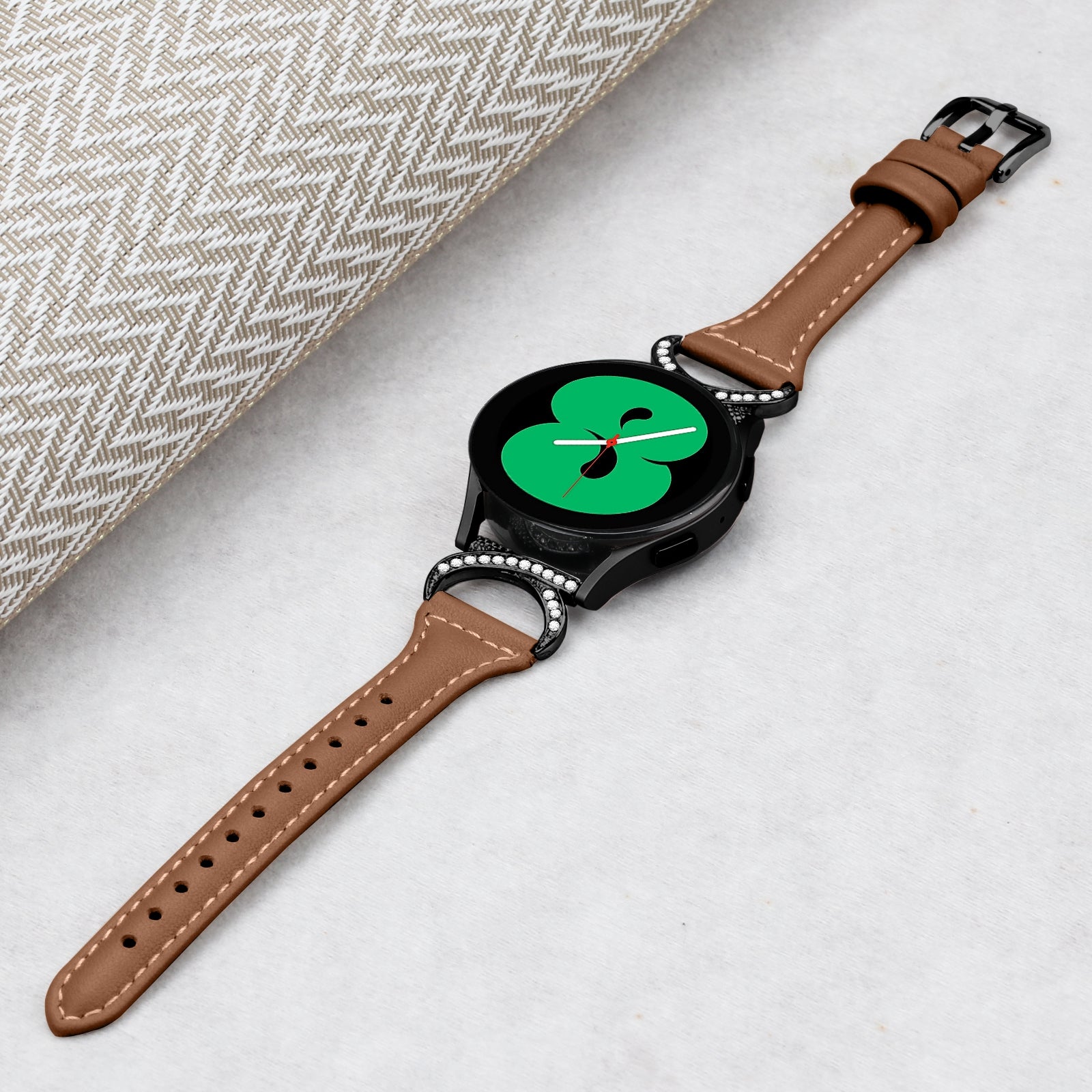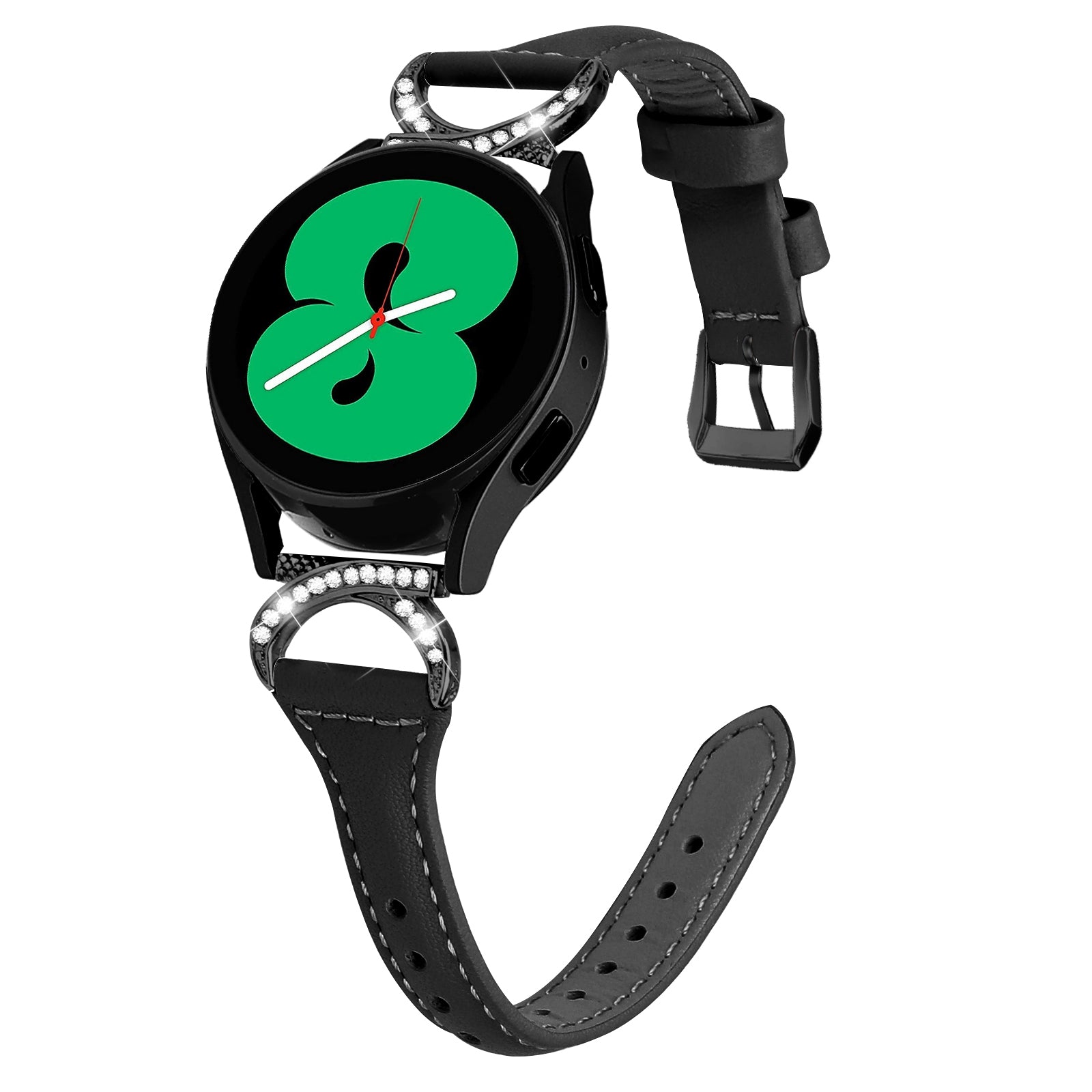 For Samsung Galaxy Watch 3 41mm / Watch6 40mm 44mm / Watch6 Classic 43mm 47mm / Watch 5 40mm 44mm / Watch4 40mm 44mm Watch Strap 20mm Leather Wristband with Black Buckle