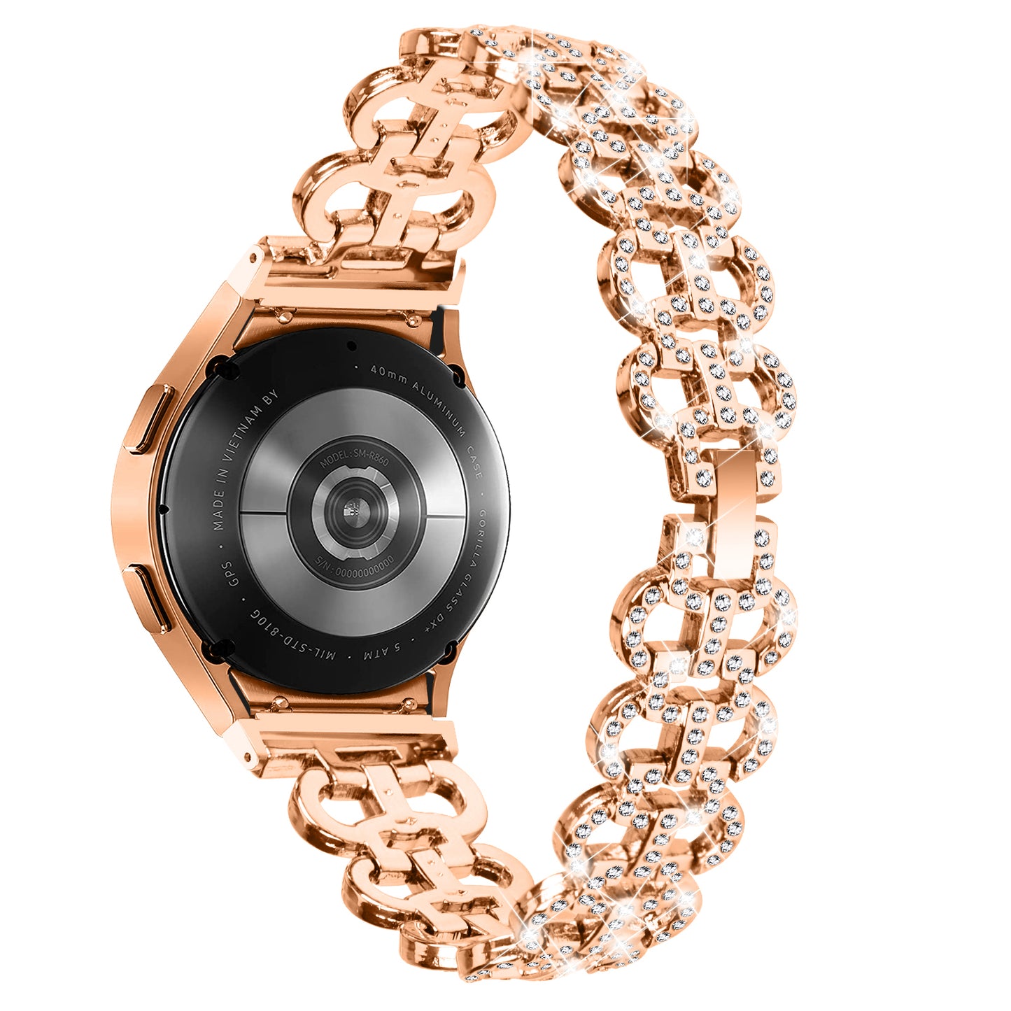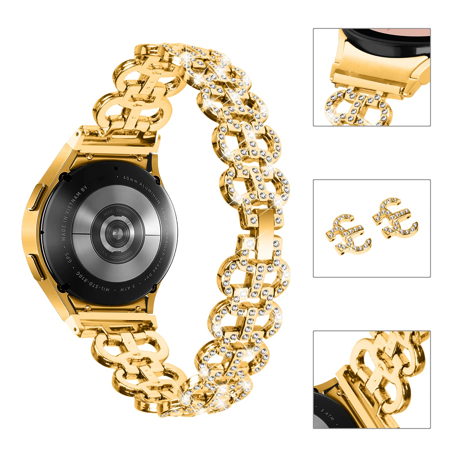For Samsung Galaxy Watch4 40 / 44mm / Watch4 Classic 42 / 46mm / Watch 5 40 / 44mm Metal Watch Strap Rhinestone Watchband with Connector