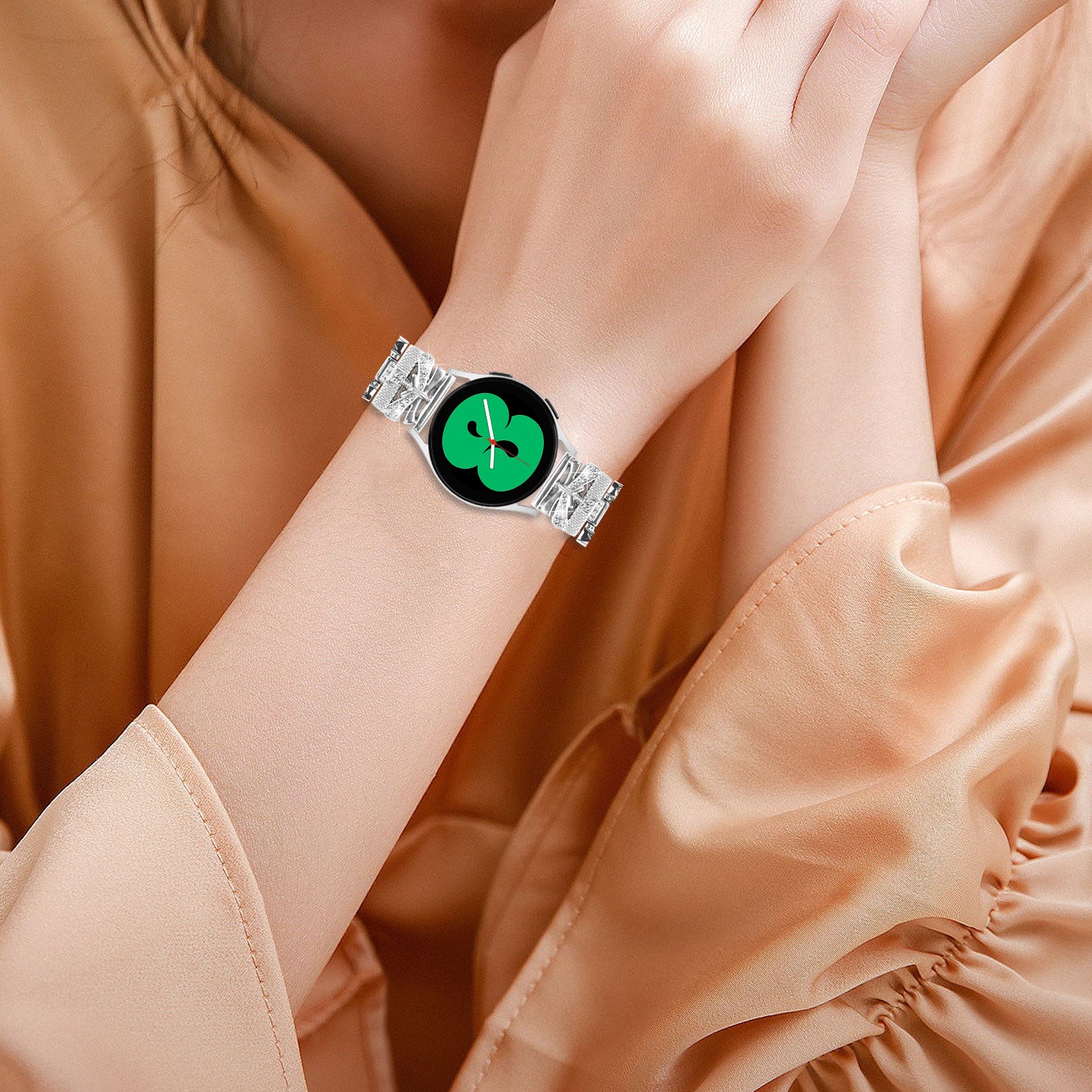 For Samsung Galaxy Watch4 40 / 44mm / Watch4 Classic 42 / 46mm / Watch 5 40 / 44mm Zinc Alloy Watchband 20mm Rhinestones Crown X-Shape Watch Strap