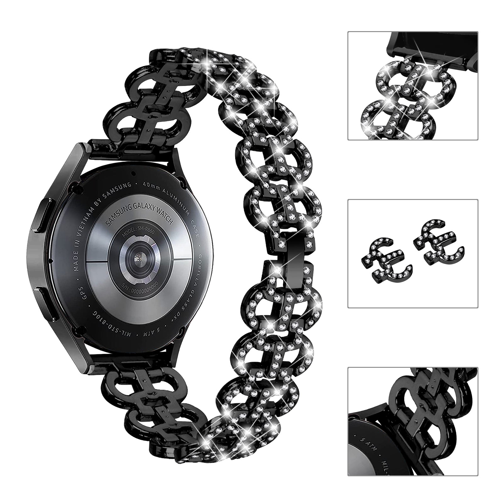 For Samsung Galaxy Watch6 40 / 44mm / Watch6 Classic 43mm / 47mm Metal Watch Strap 20mm Light Luxury Watchband with Rhinestone