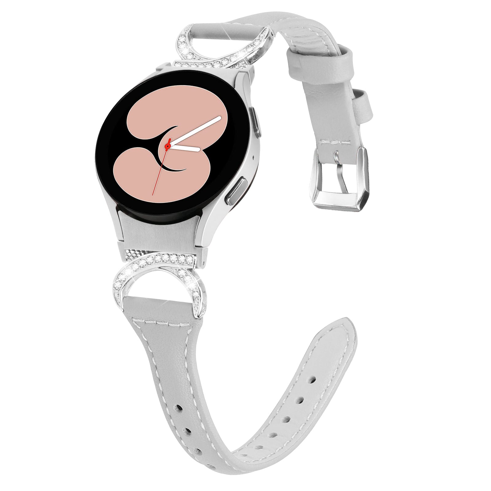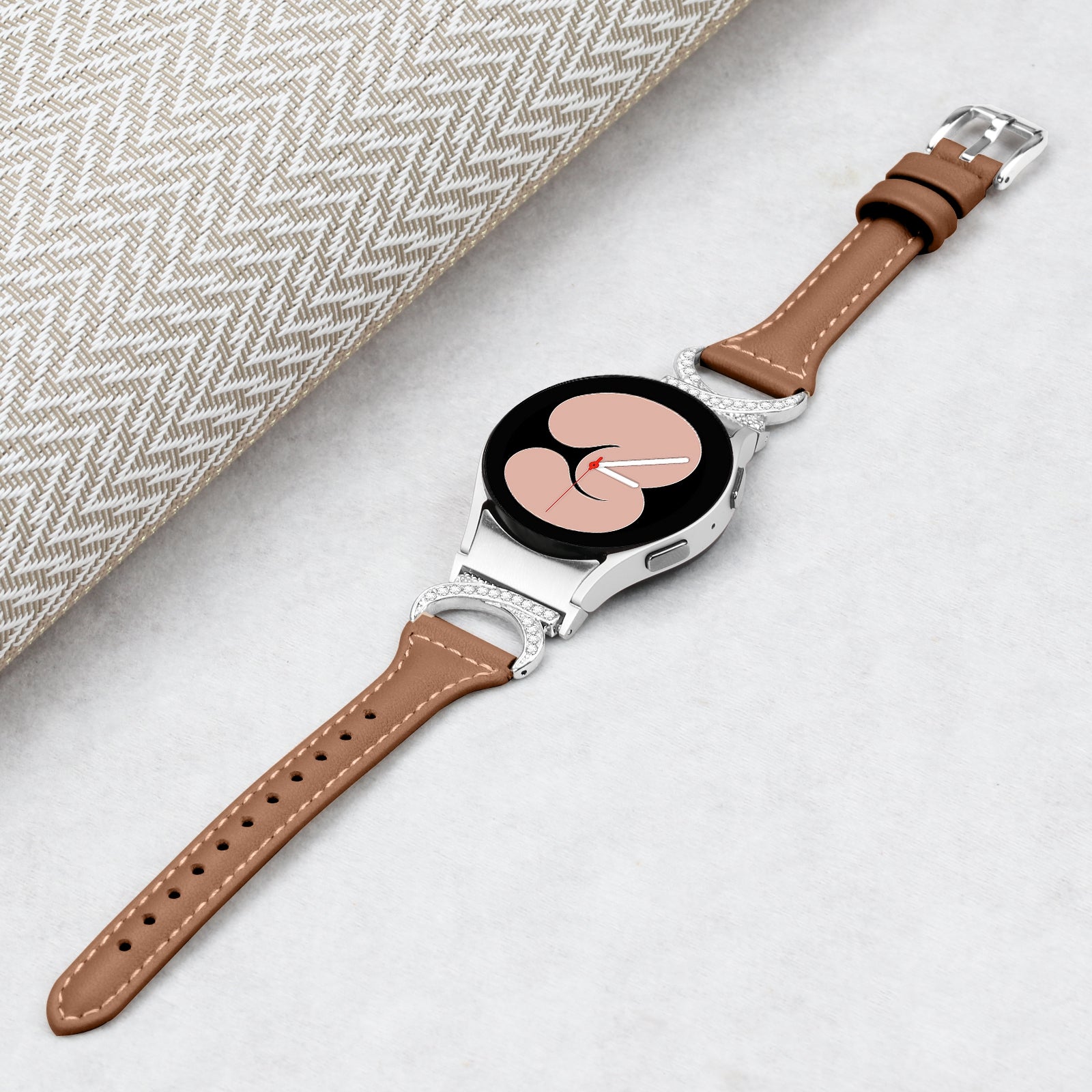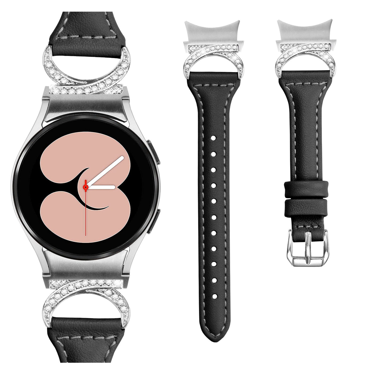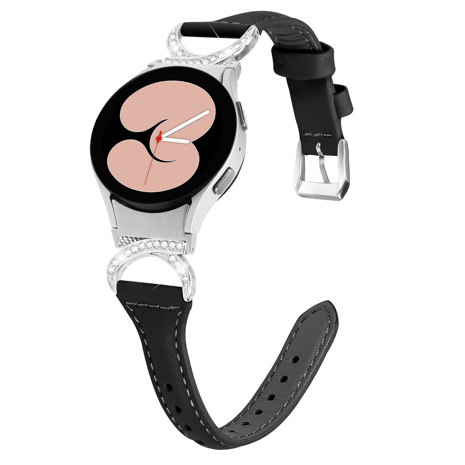 For Samsung Galaxy Watch6 40mm 44mm / Watch6 Classic 43mm 47mm / Watch 5 40mm 44mm / Watch4 40mm 44mm Watch Strap PU Leather Rhinestone Watchband with Silver Buckle