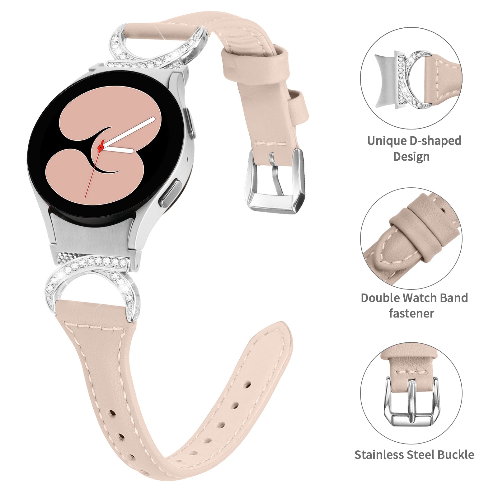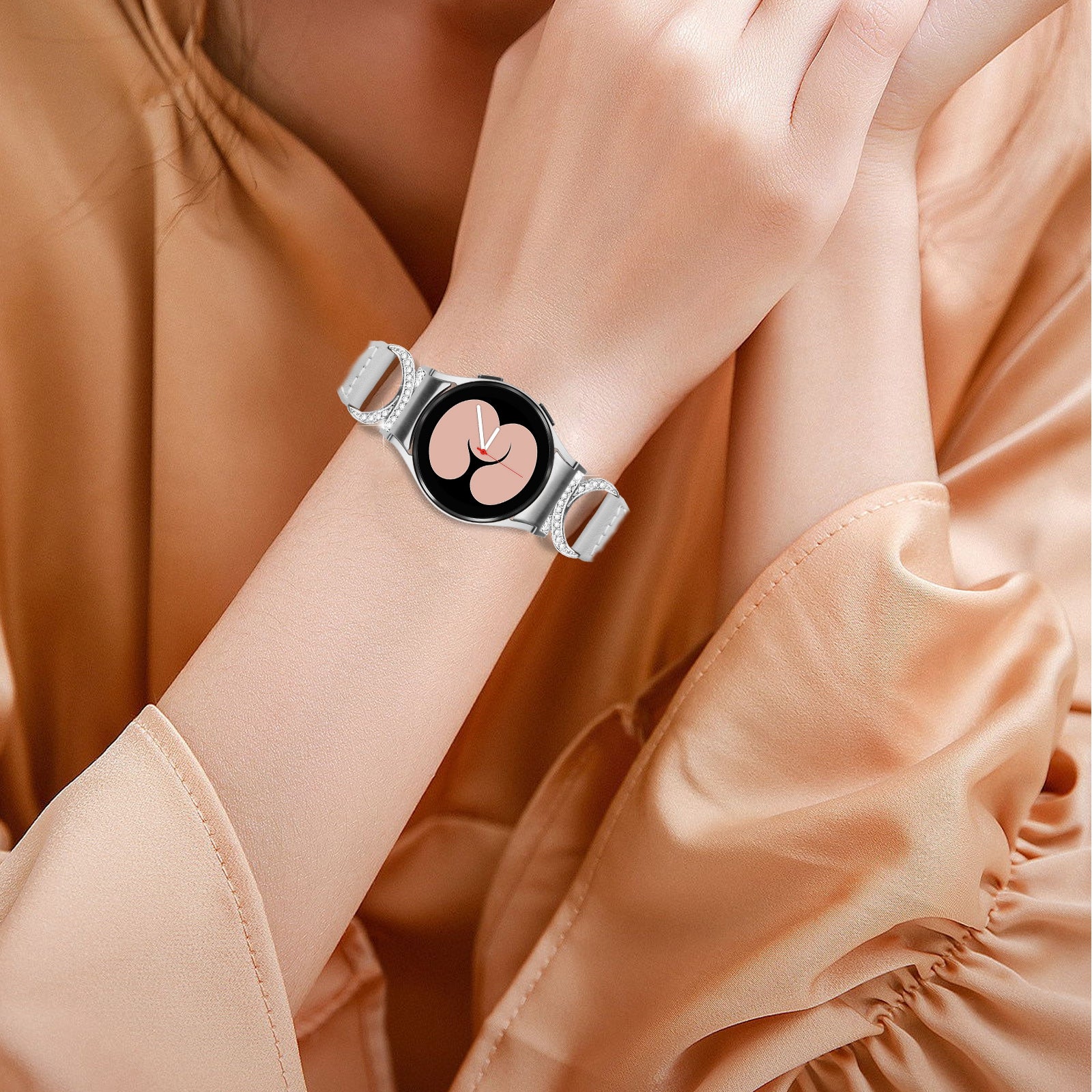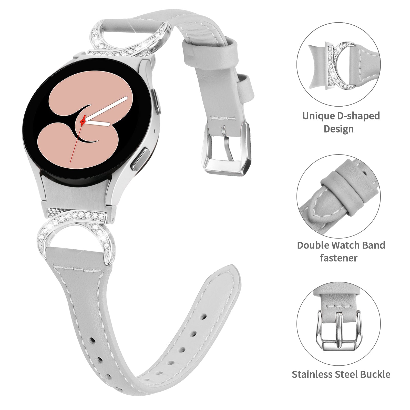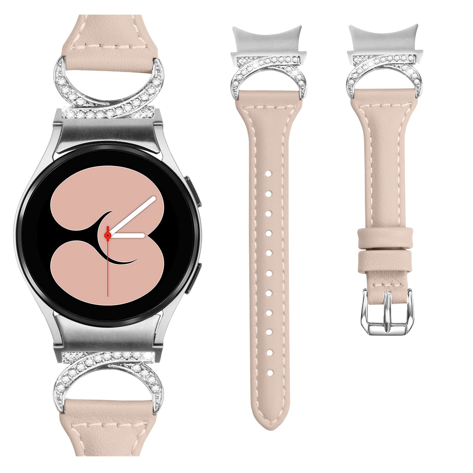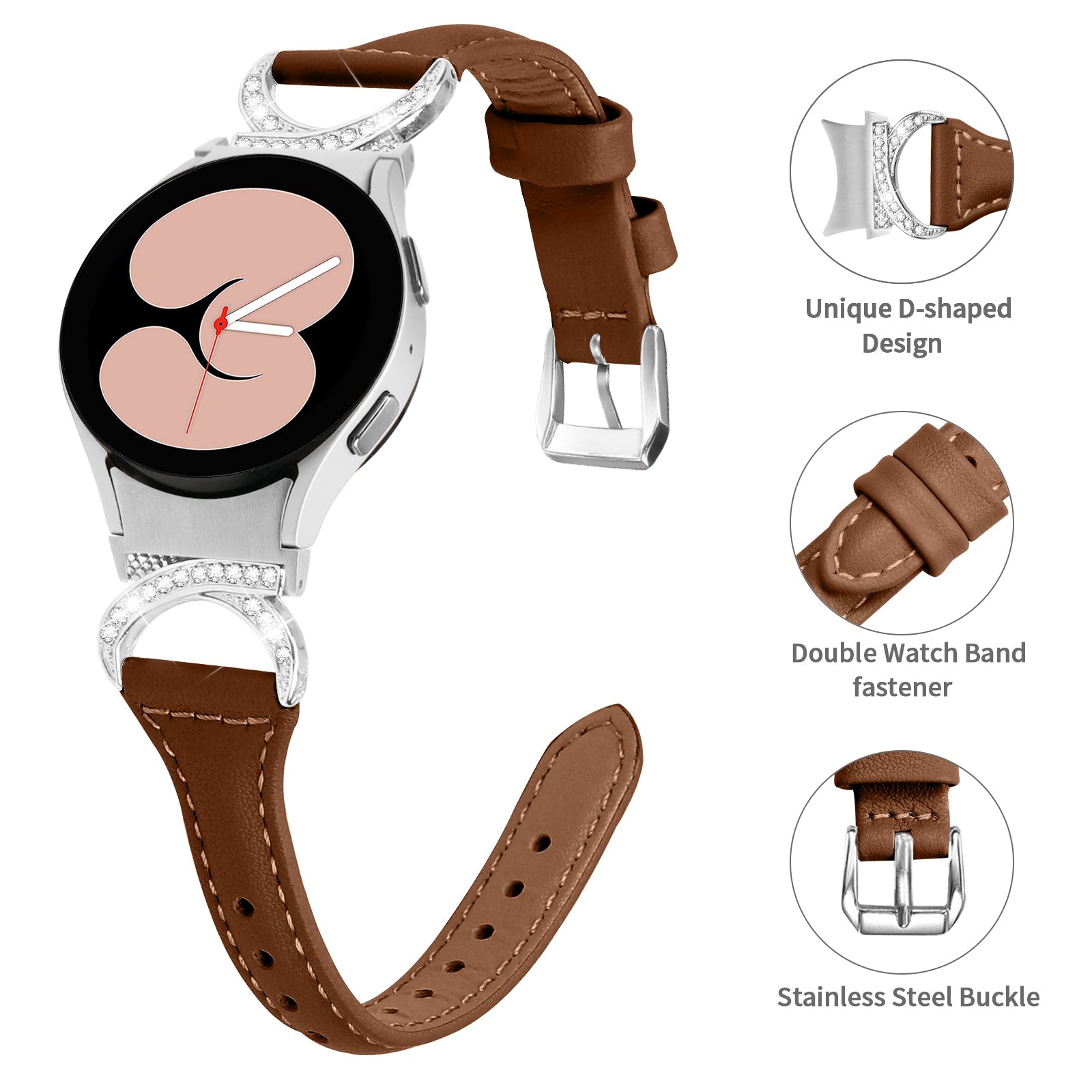 For Samsung Galaxy Watch6 40mm 44mm / Watch6 Classic 43mm 47mm / Watch 5 40mm 44mm / Watch4 40mm 44mm Watch Strap PU Leather Rhinestone Watchband with Silver Buckle