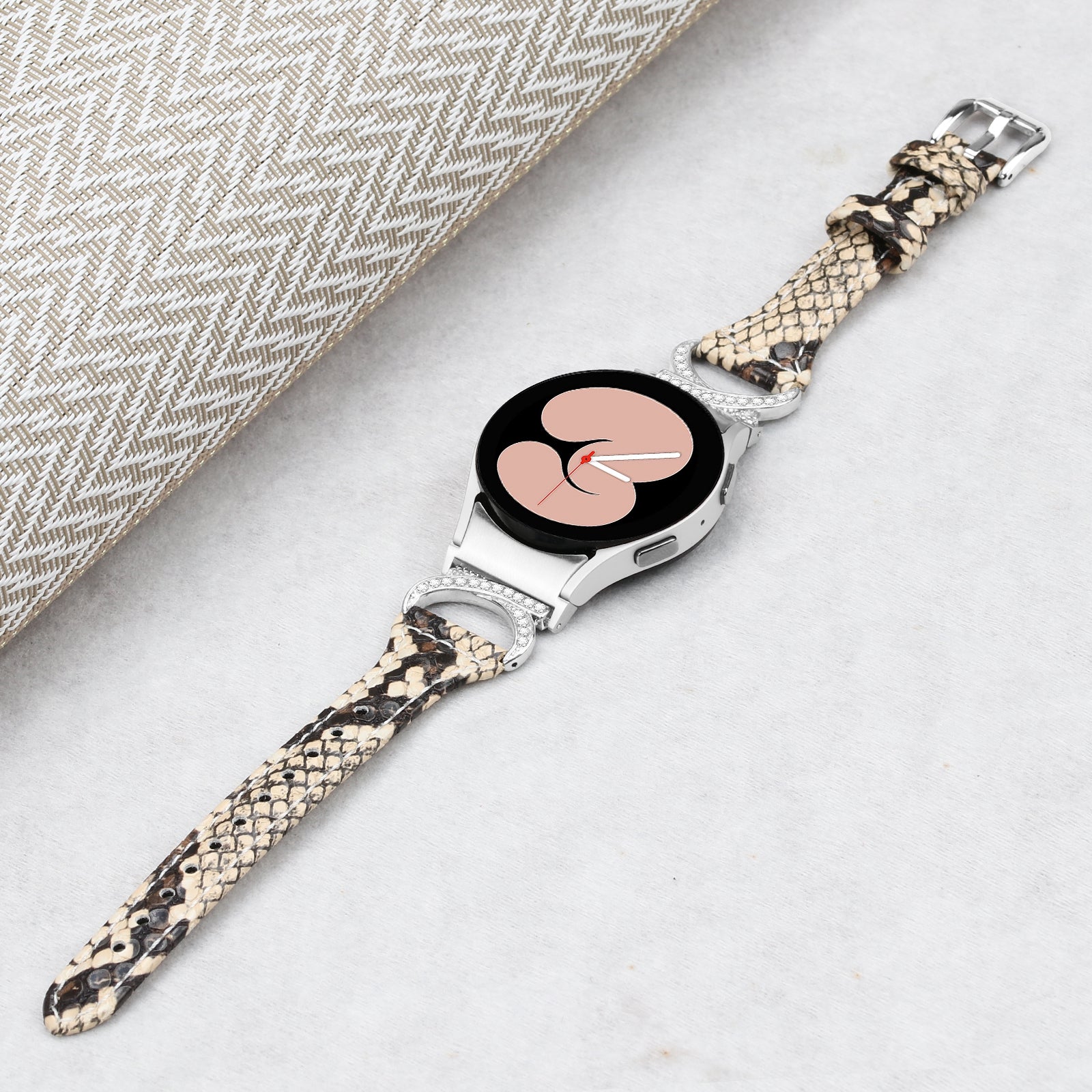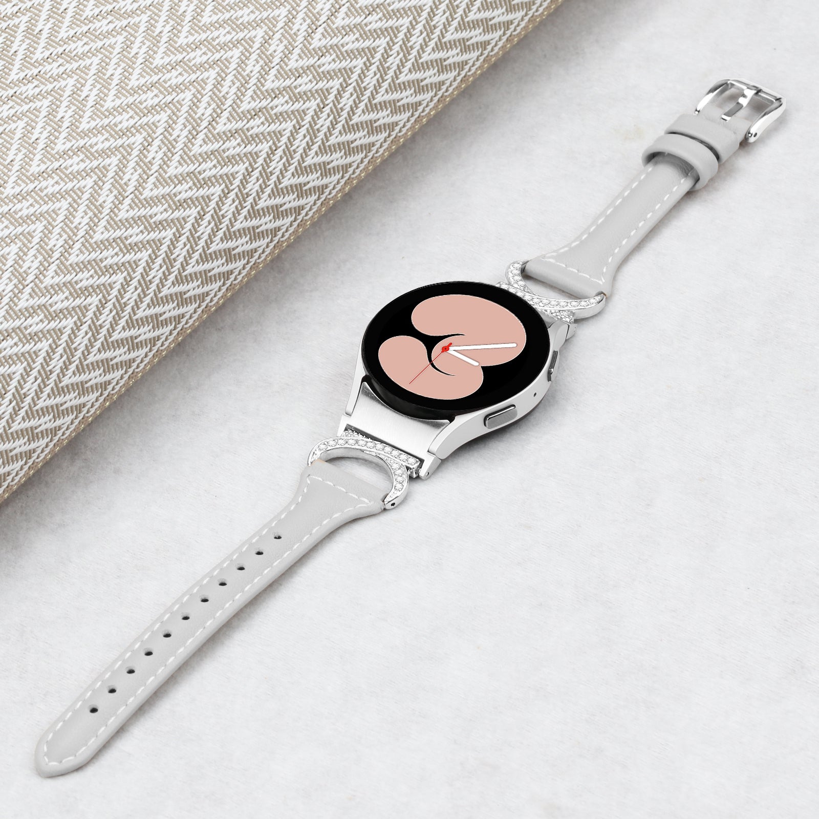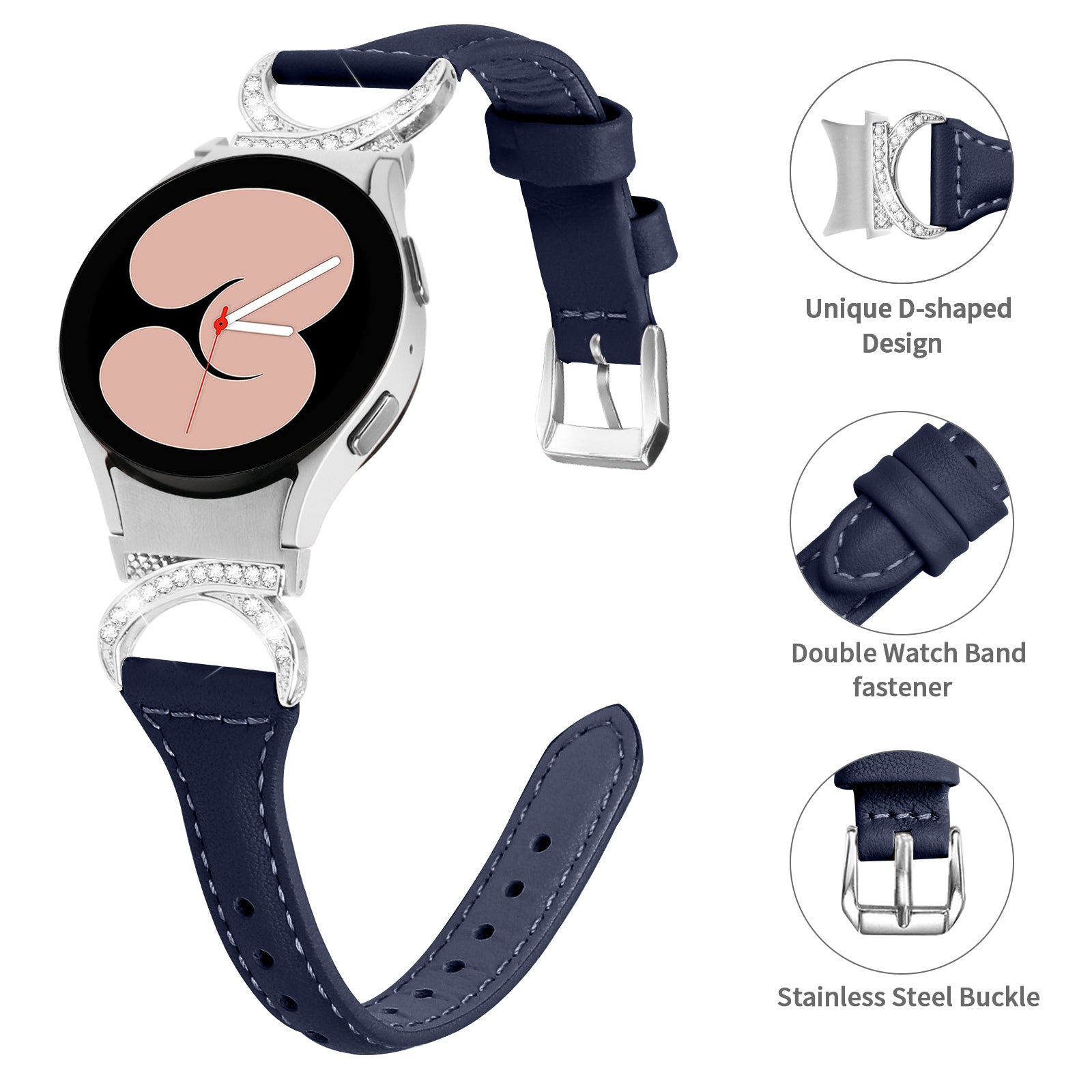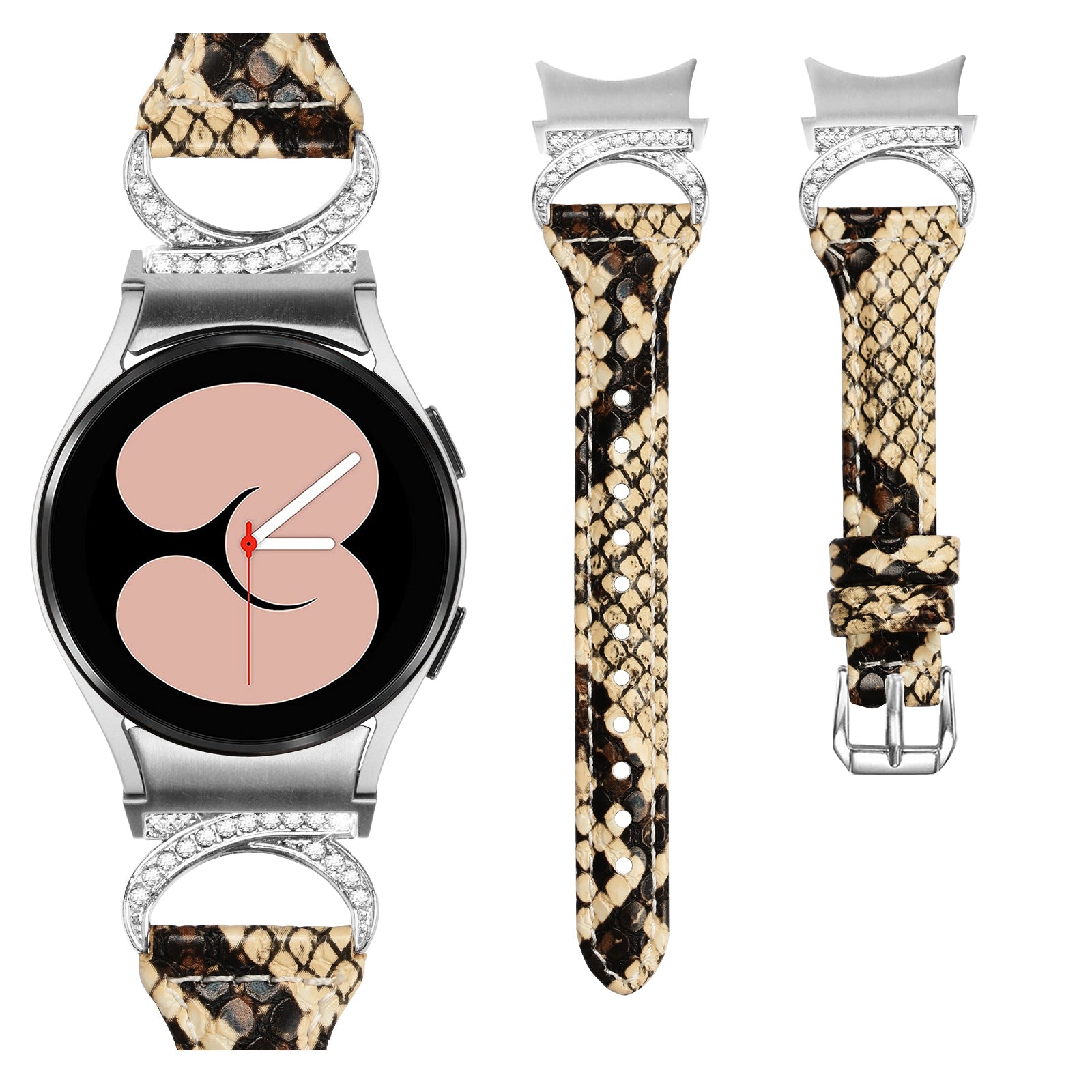 For Samsung Galaxy Watch6 40mm 44mm / Watch6 Classic 43mm 47mm / Watch 5 40mm 44mm / Watch4 40mm 44mm Watch Strap PU Leather Rhinestone Watchband with Silver Buckle
