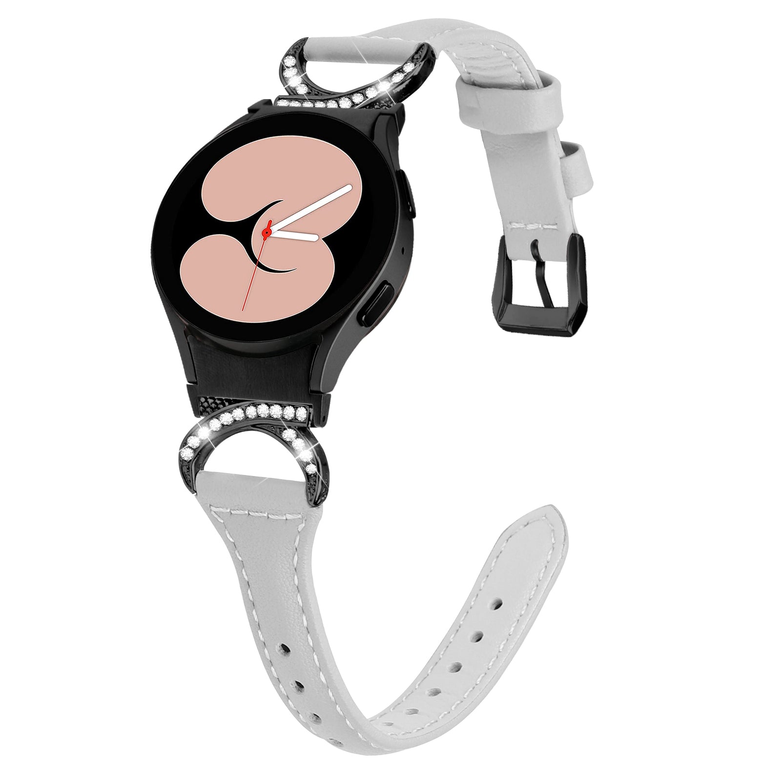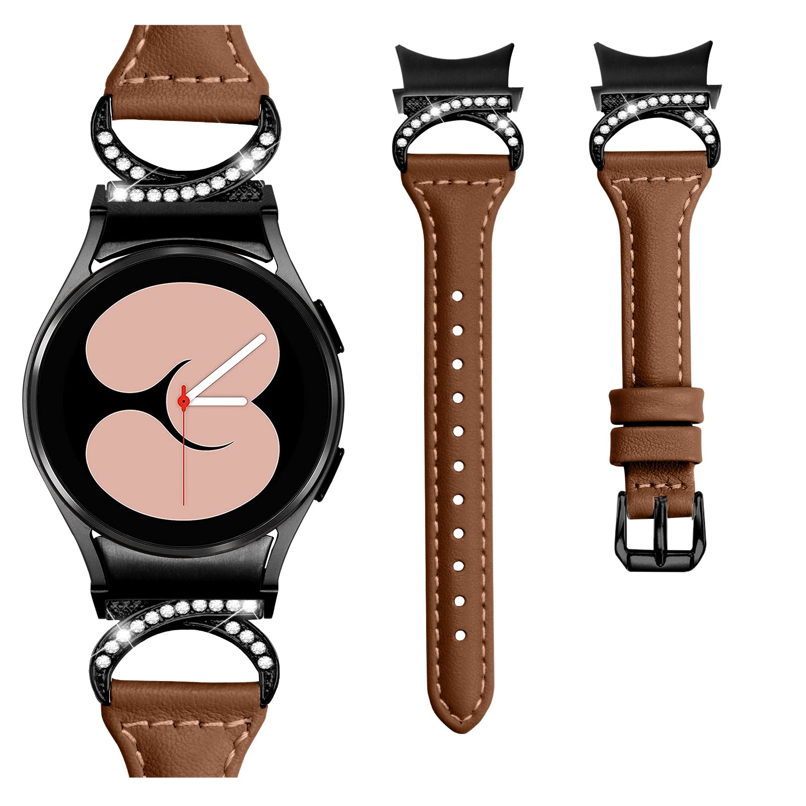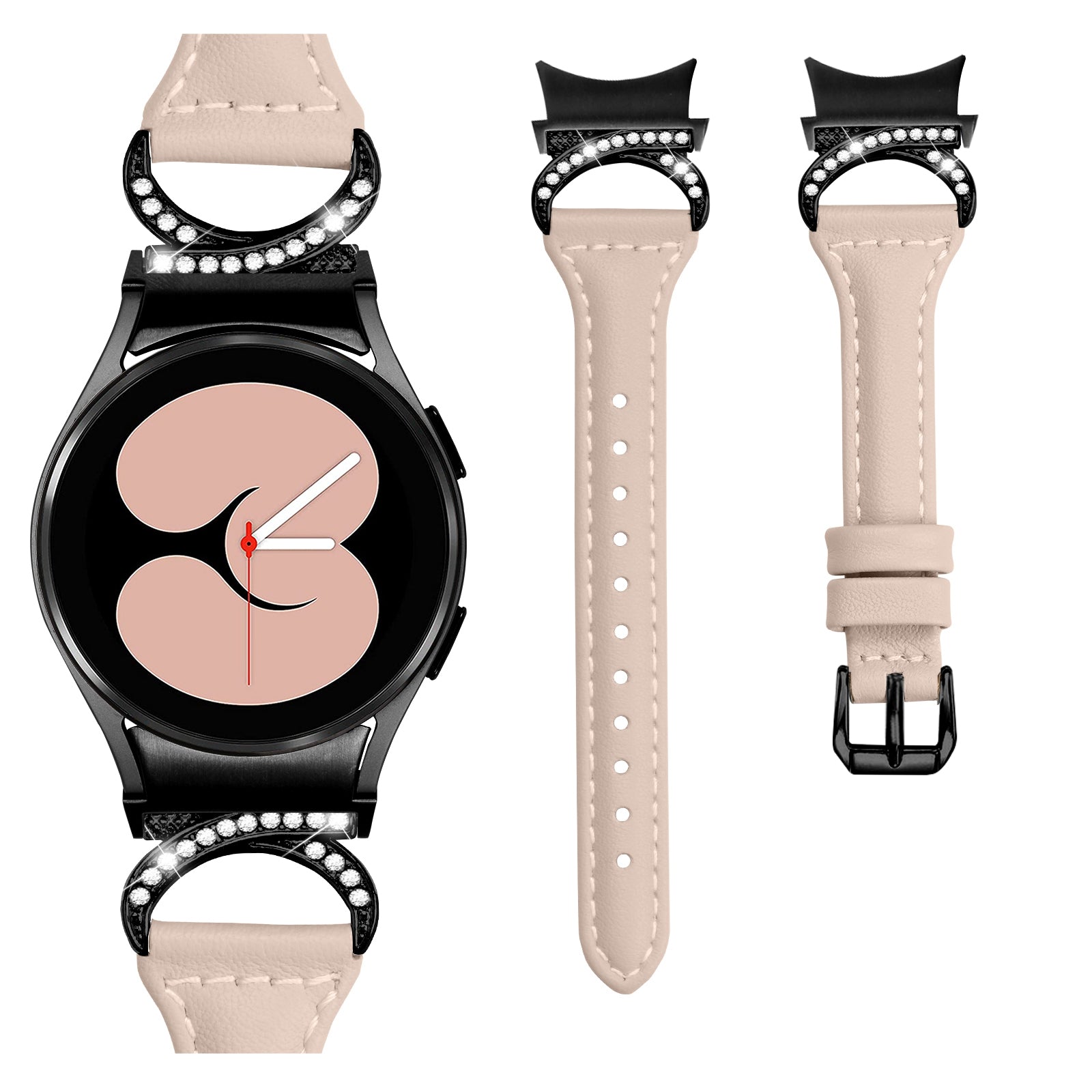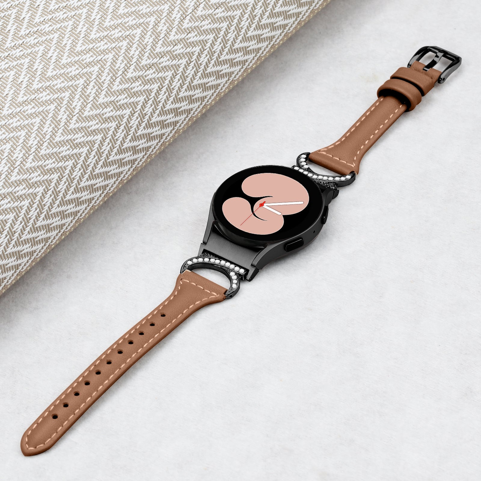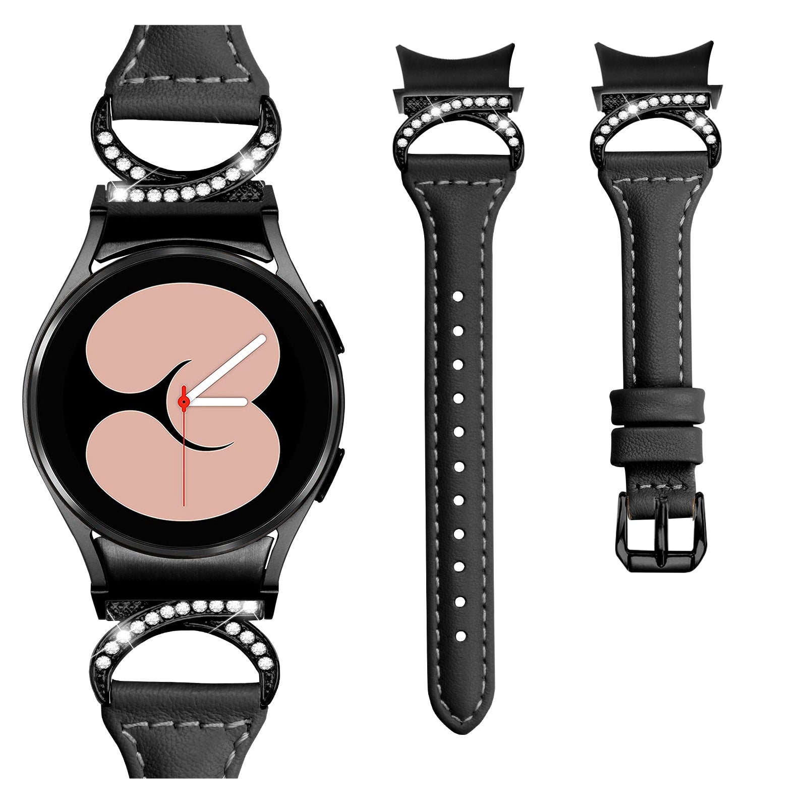 For Samsung Galaxy Watch6 40mm 44mm / Watch6 Classic 43mm 47mm / Watch 5 40mm 44mm / Watch4 40mm 44mm Watchband Rhinestone Leather Wrist Strap with Black Buckle