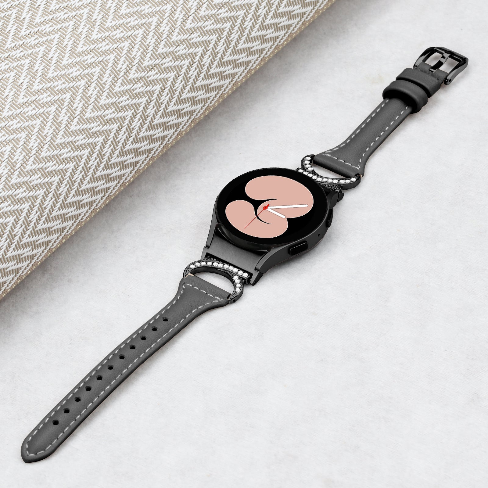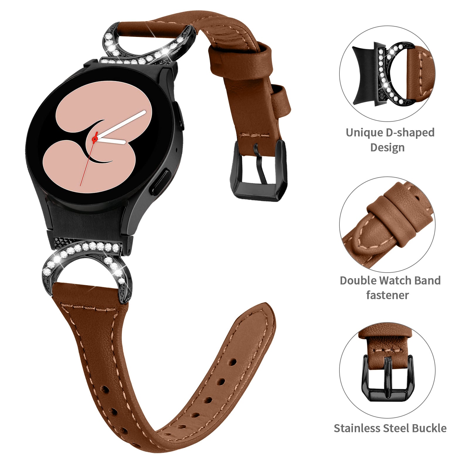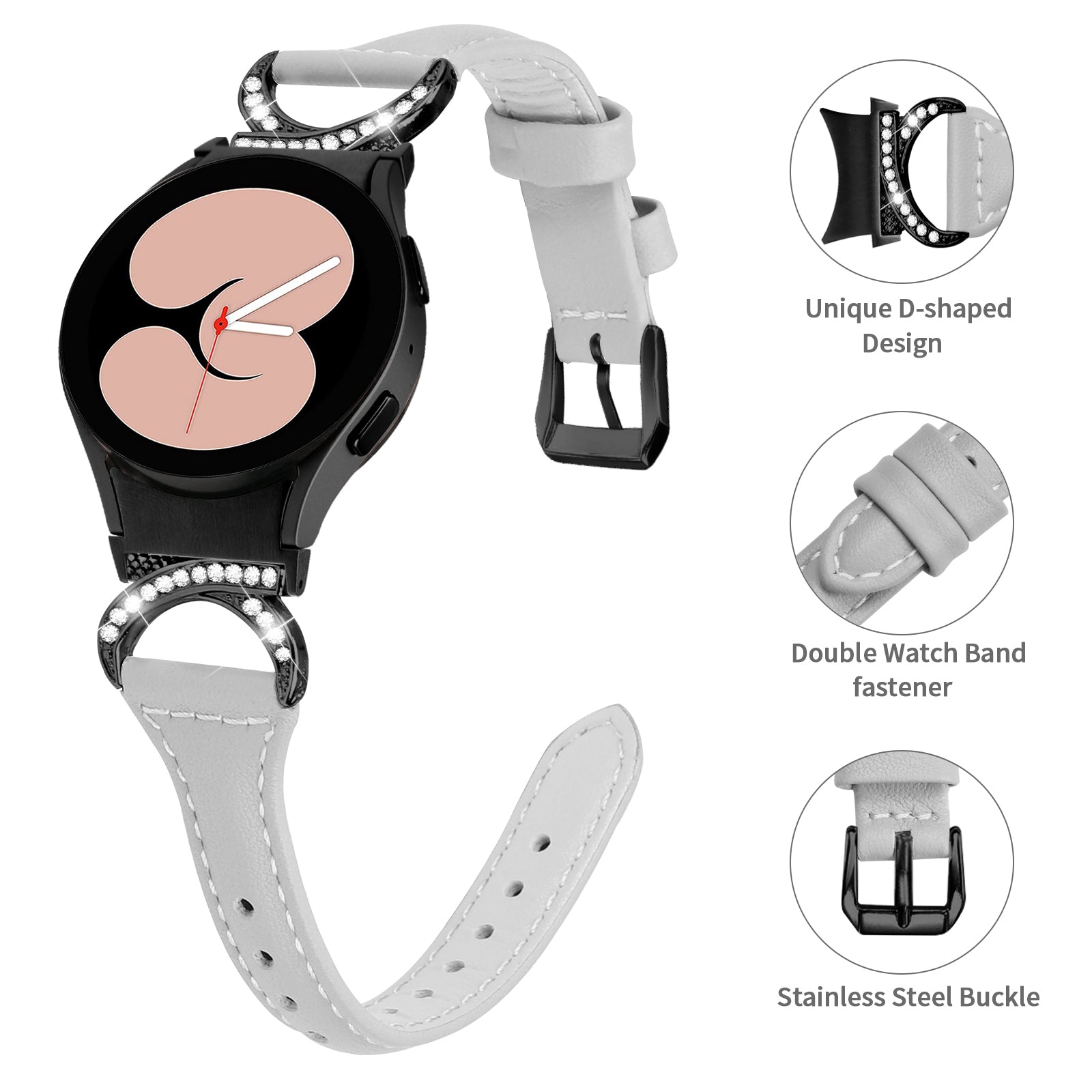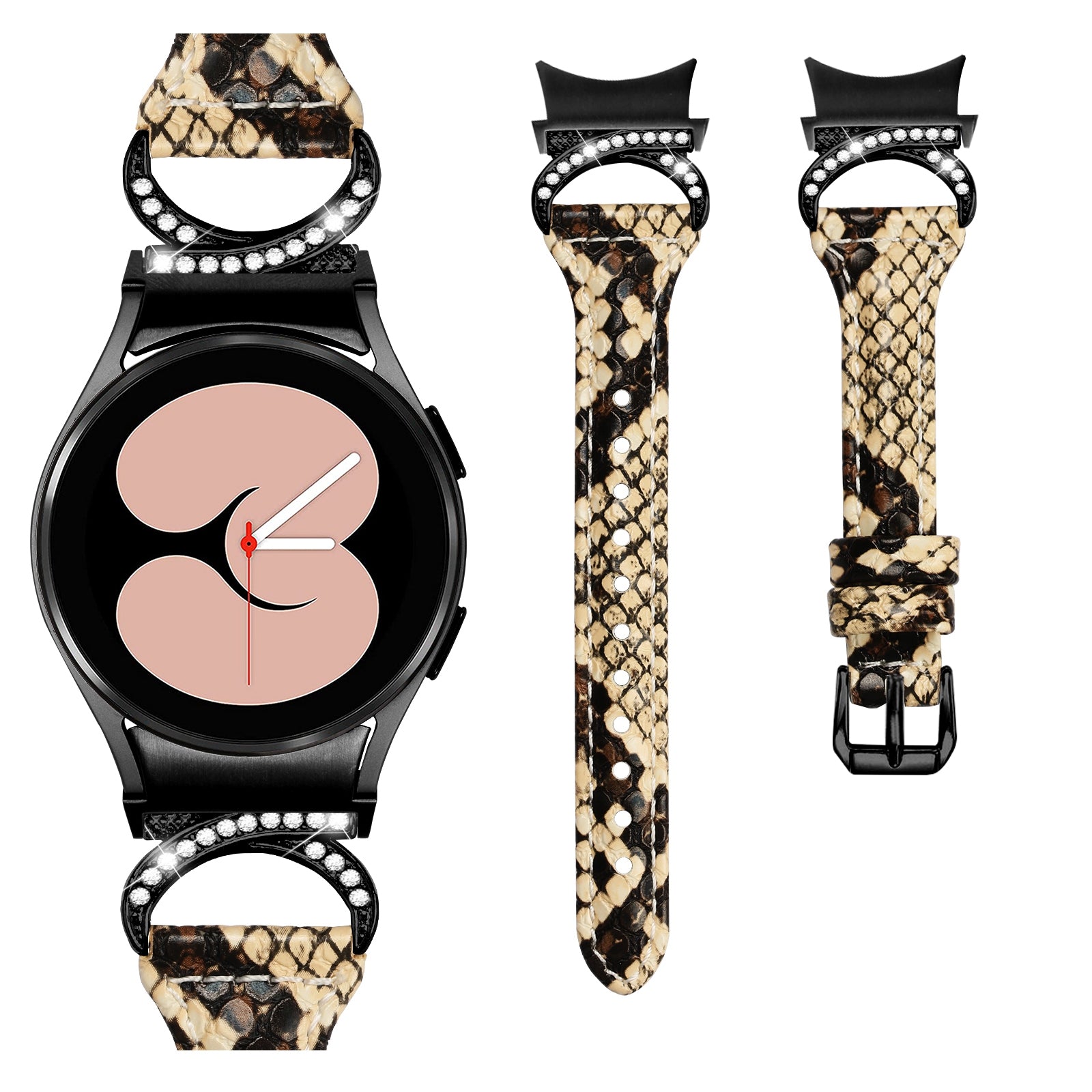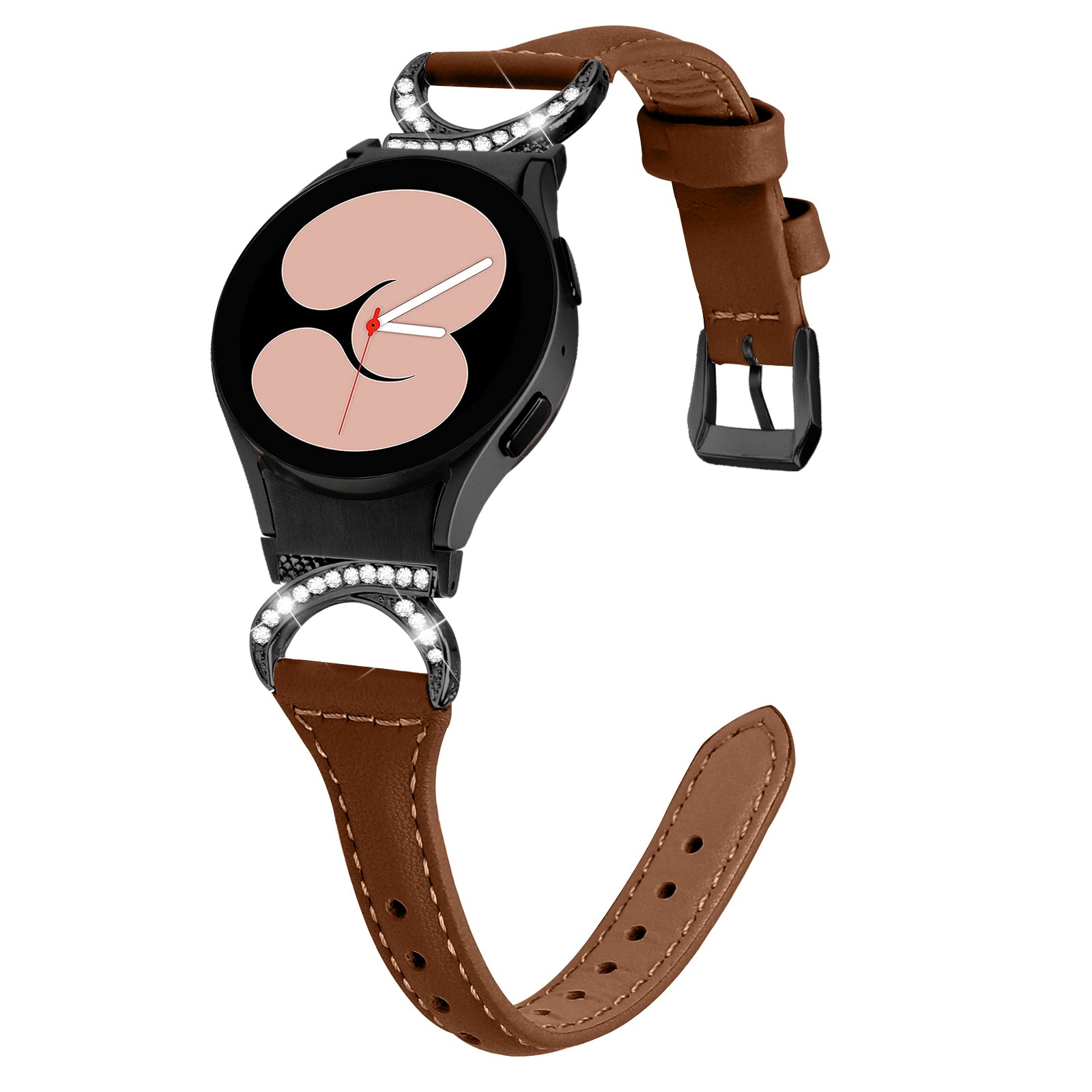 For Samsung Galaxy Watch6 40mm 44mm / Watch6 Classic 43mm 47mm / Watch 5 40mm 44mm / Watch4 40mm 44mm Watchband Rhinestone Leather Wrist Strap with Black Buckle