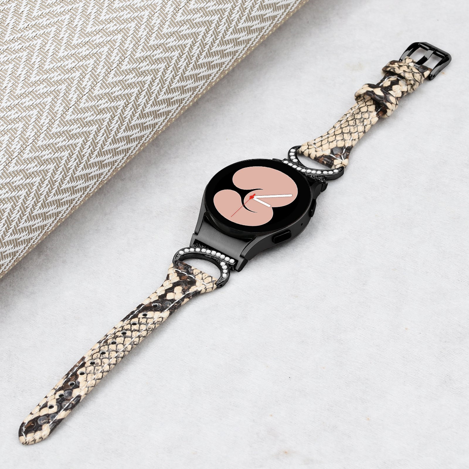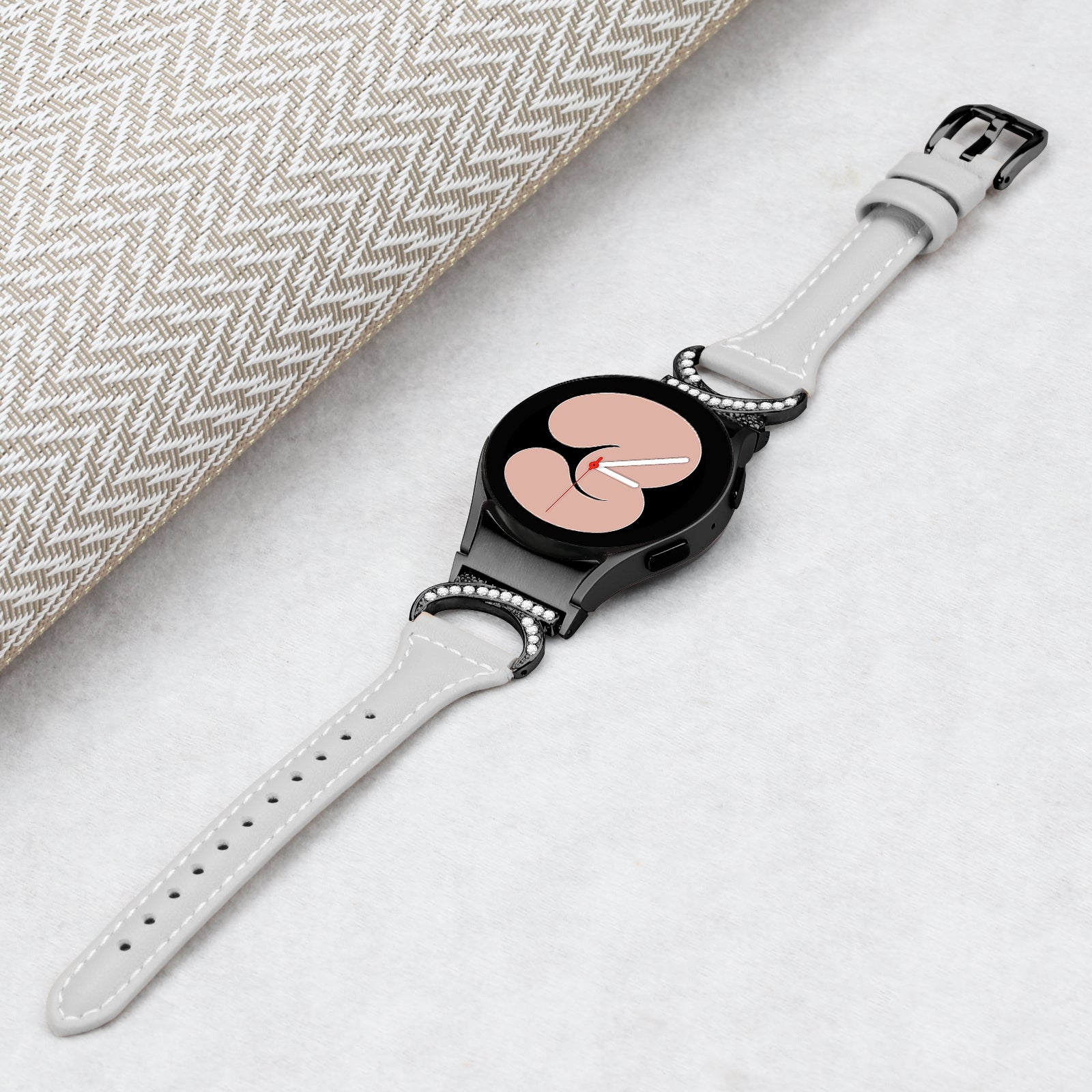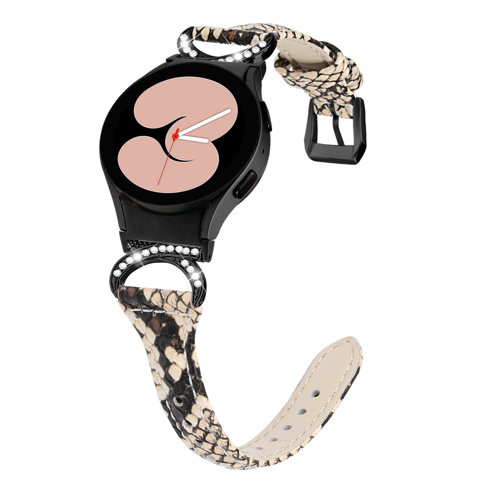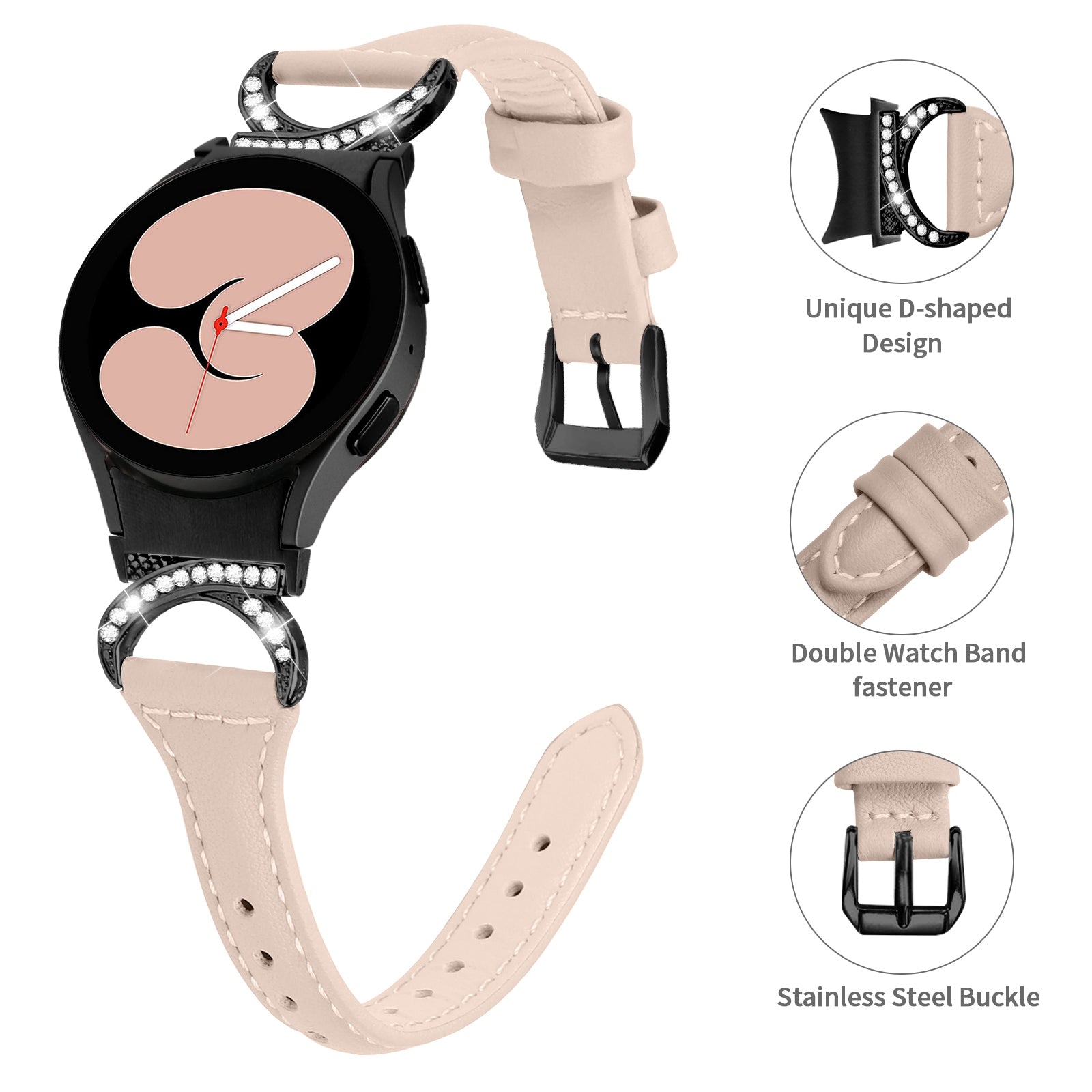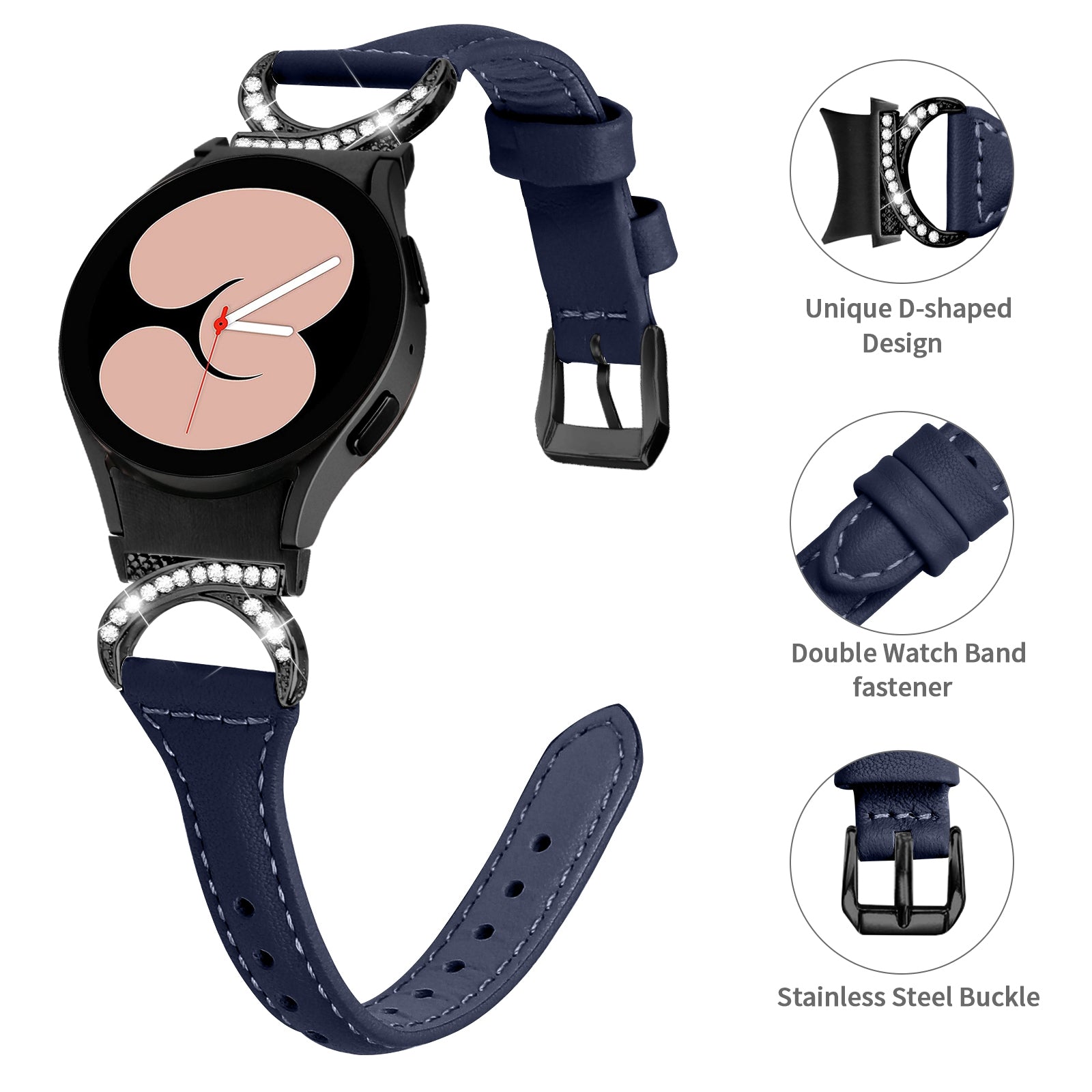 For Samsung Galaxy Watch6 40mm 44mm / Watch6 Classic 43mm 47mm / Watch 5 40mm 44mm / Watch4 40mm 44mm Watchband Rhinestone Leather Wrist Strap with Black Buckle