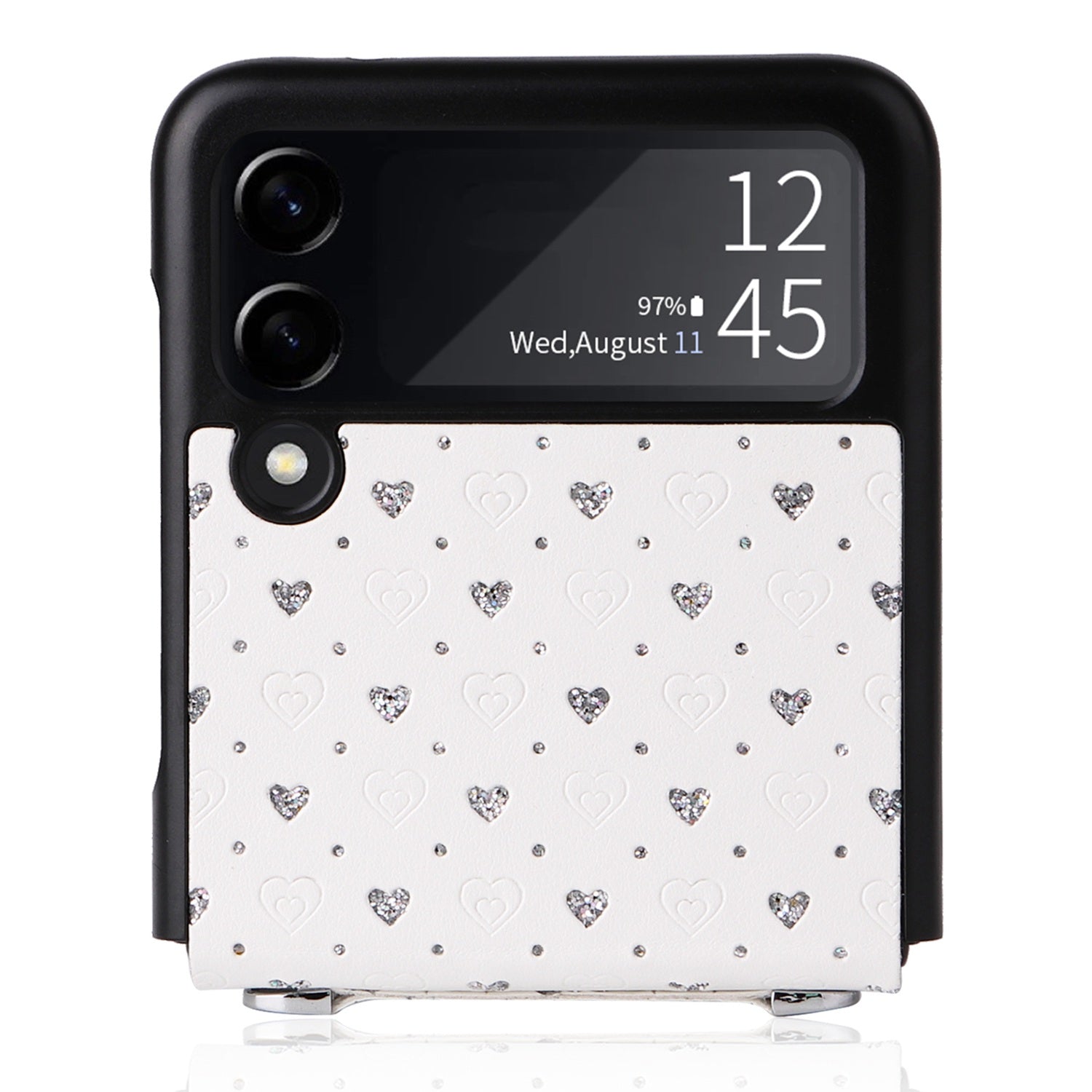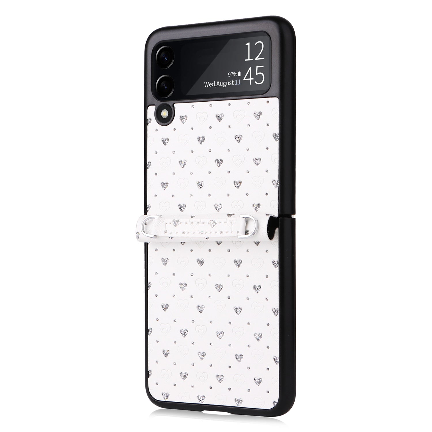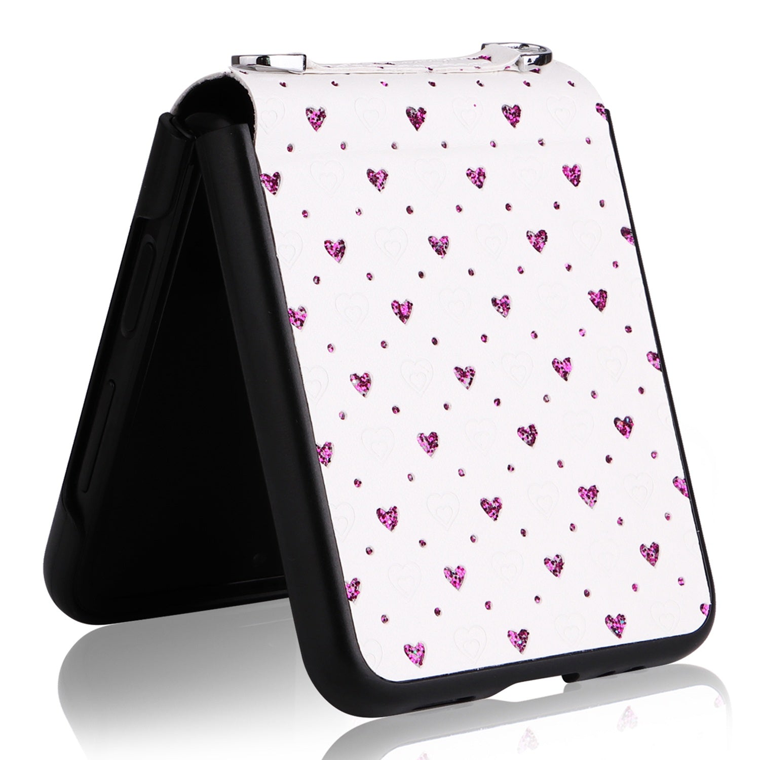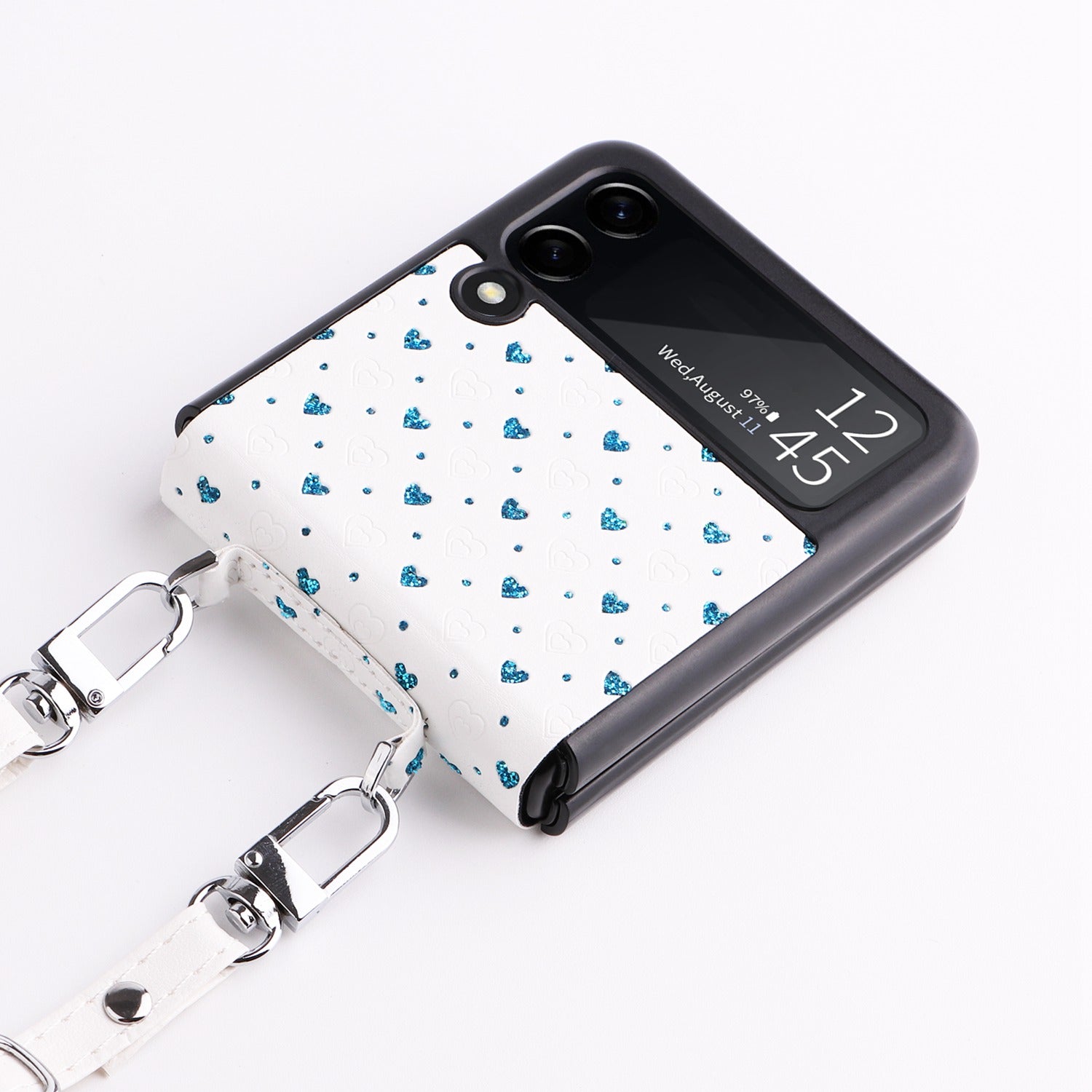 For Samsung Galaxy Z Flip3 5G PU Leather Coated PC Case Multiple Heart Shapes One-piece Phone Cover with Shoulder Strap