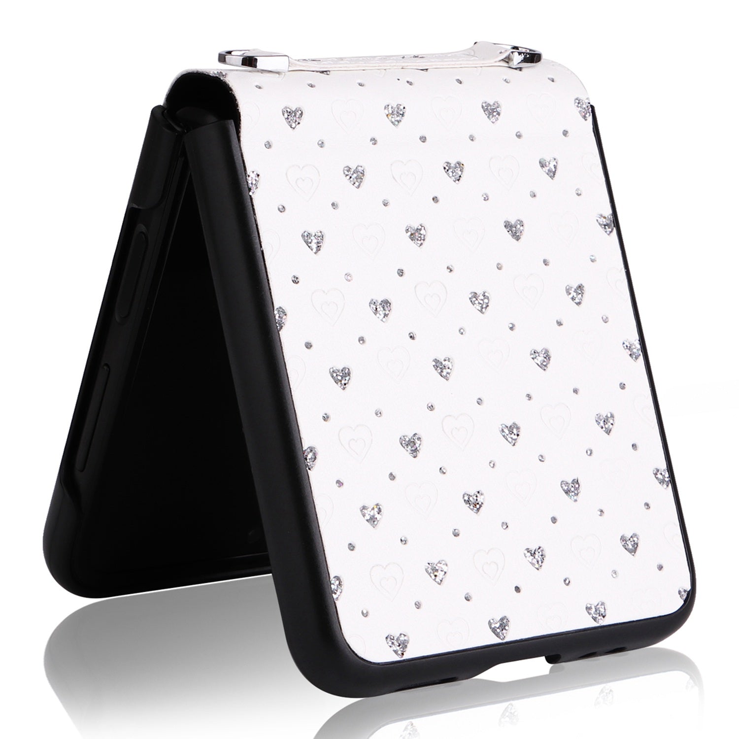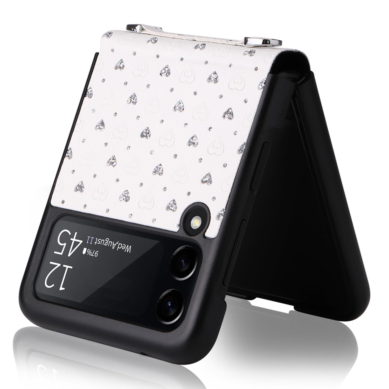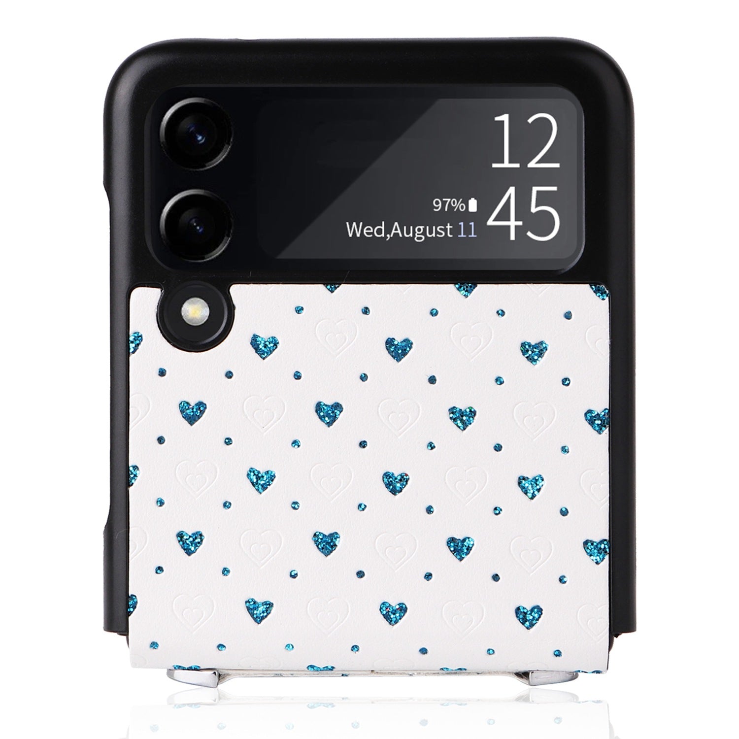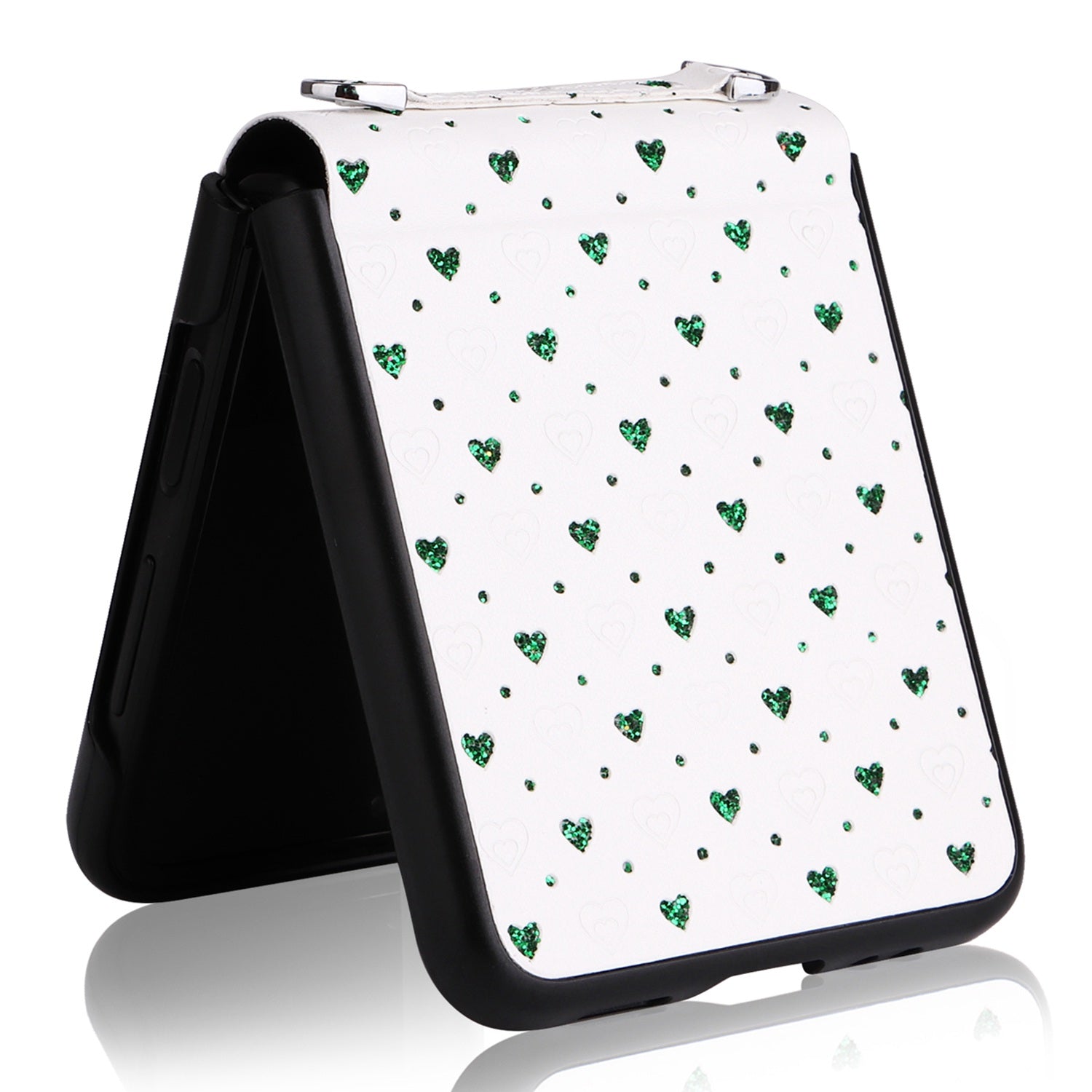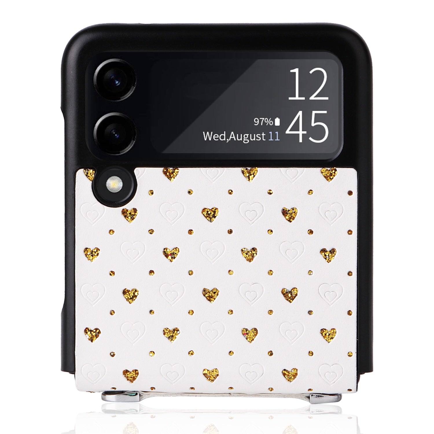 For Samsung Galaxy Z Flip3 5G PU Leather Coated PC Case Multiple Heart Shapes One-piece Phone Cover with Shoulder Strap