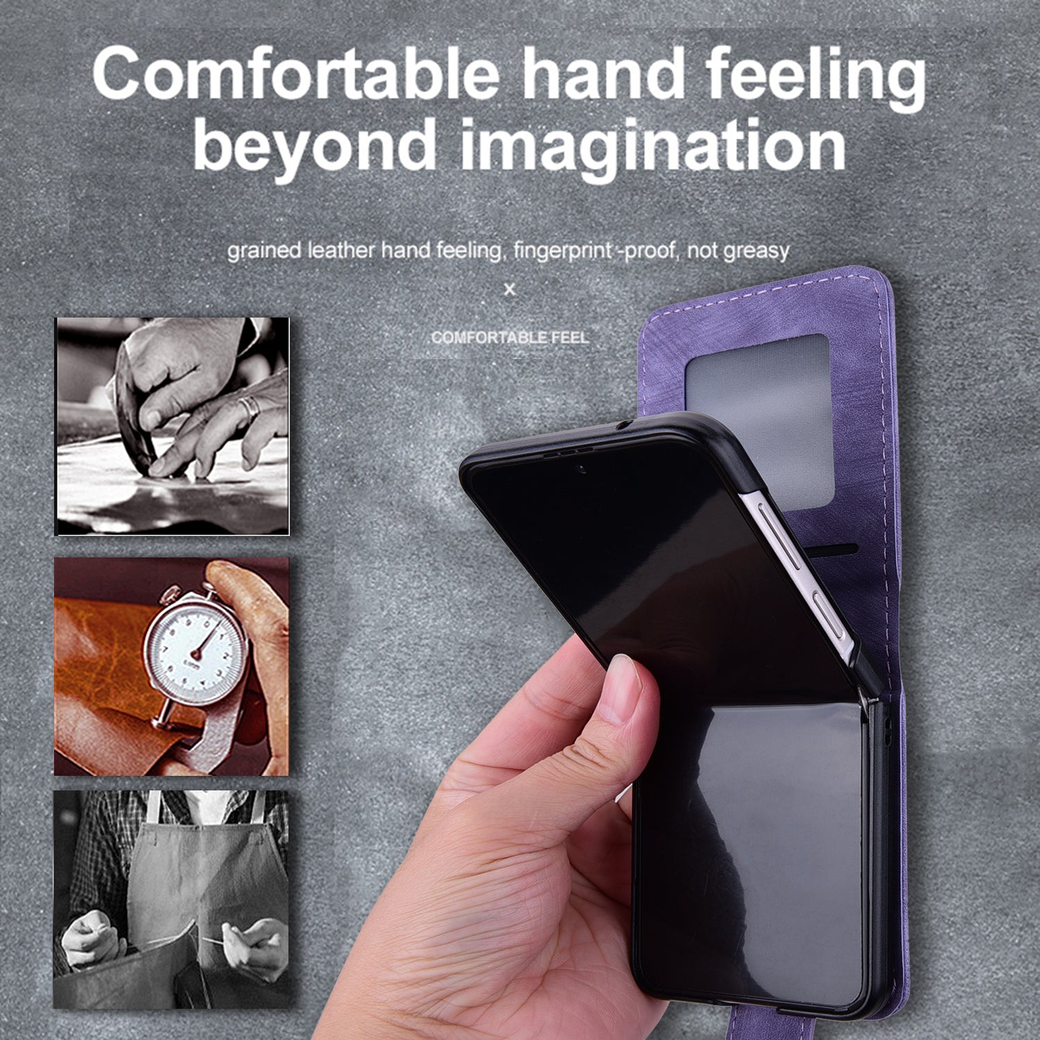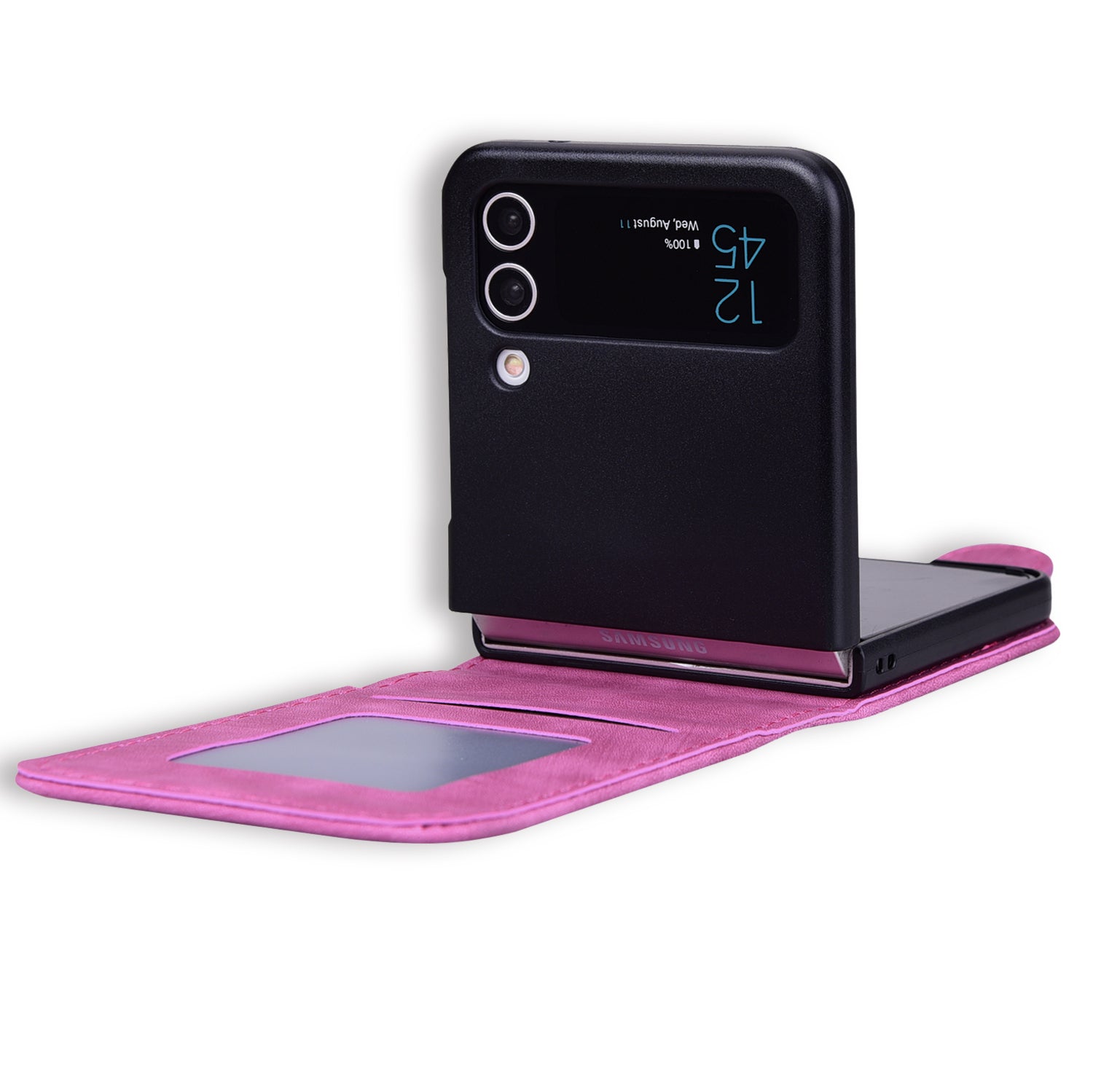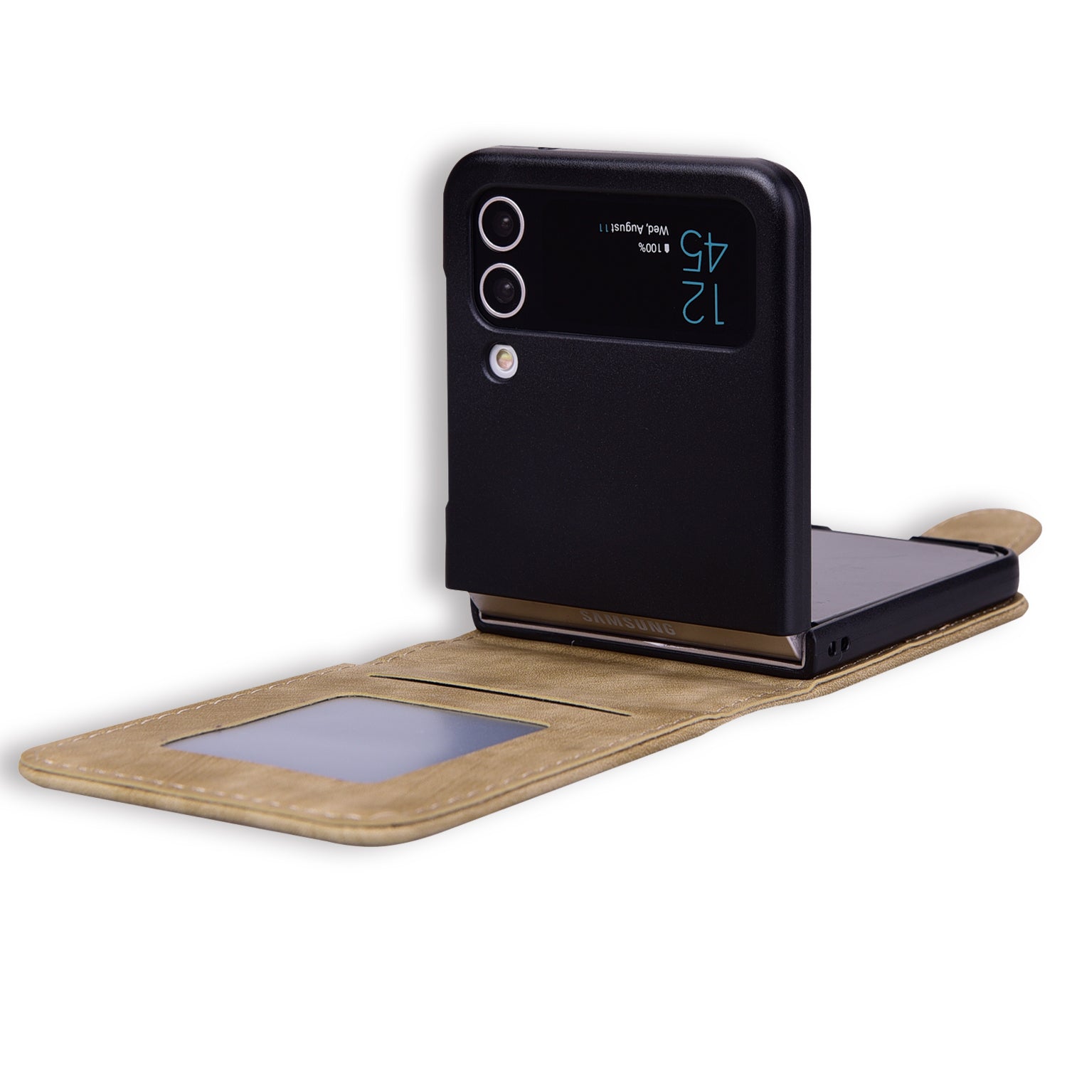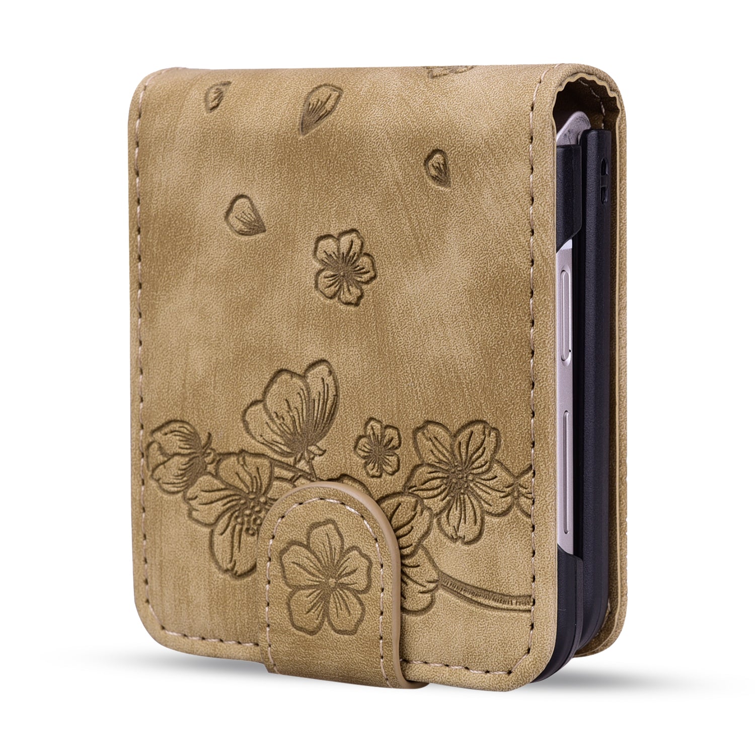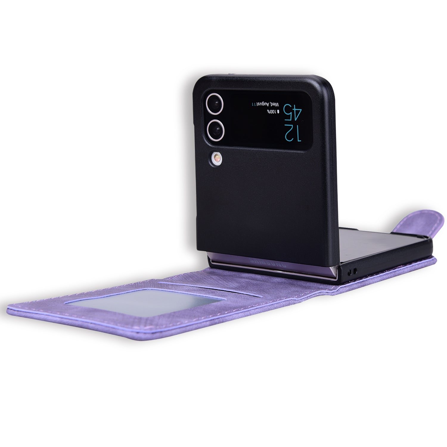 For Samsung Galaxy Z Flip4 5G PU Leather Card Holder Phone Case Imprinted Cat Flower Anti-drop Cover
