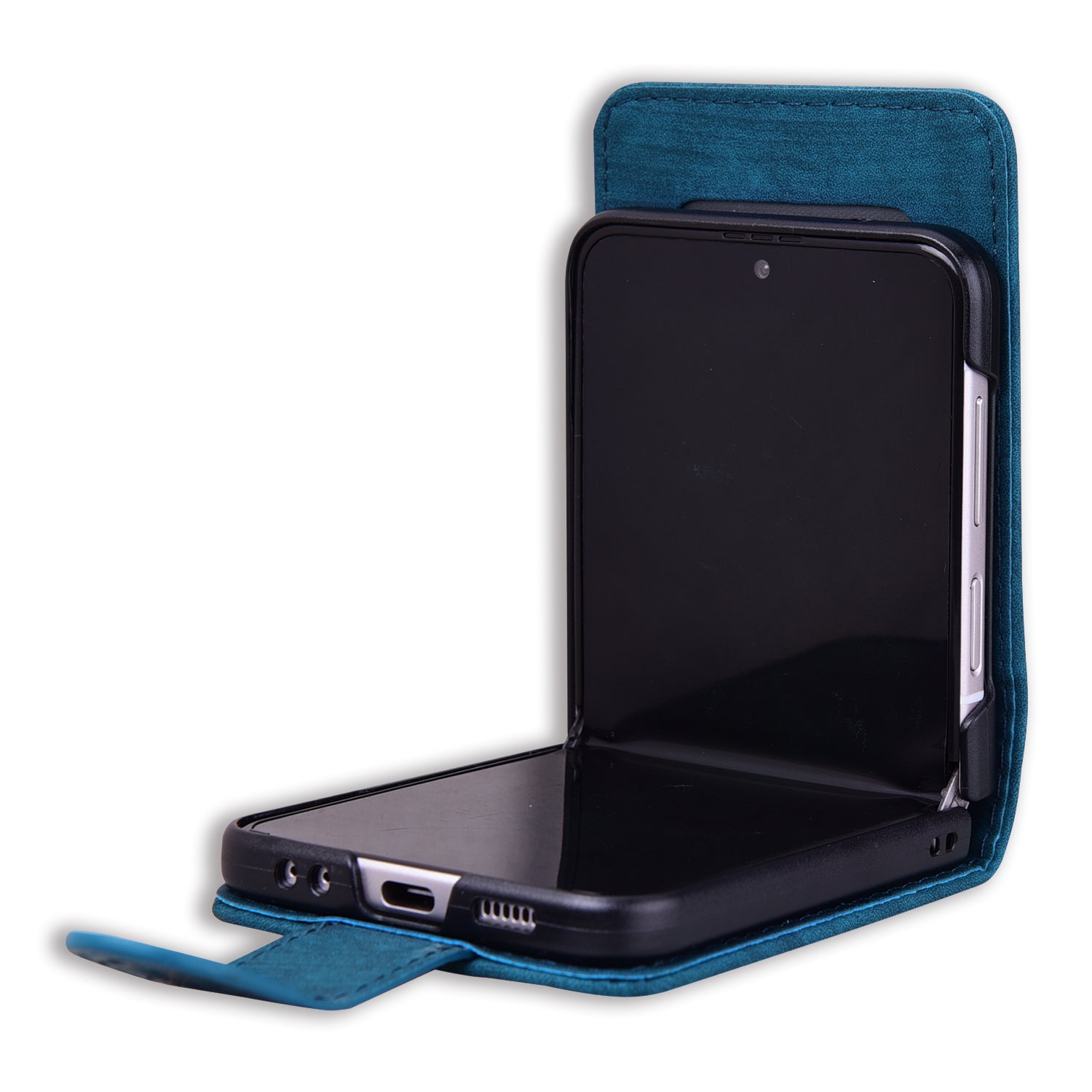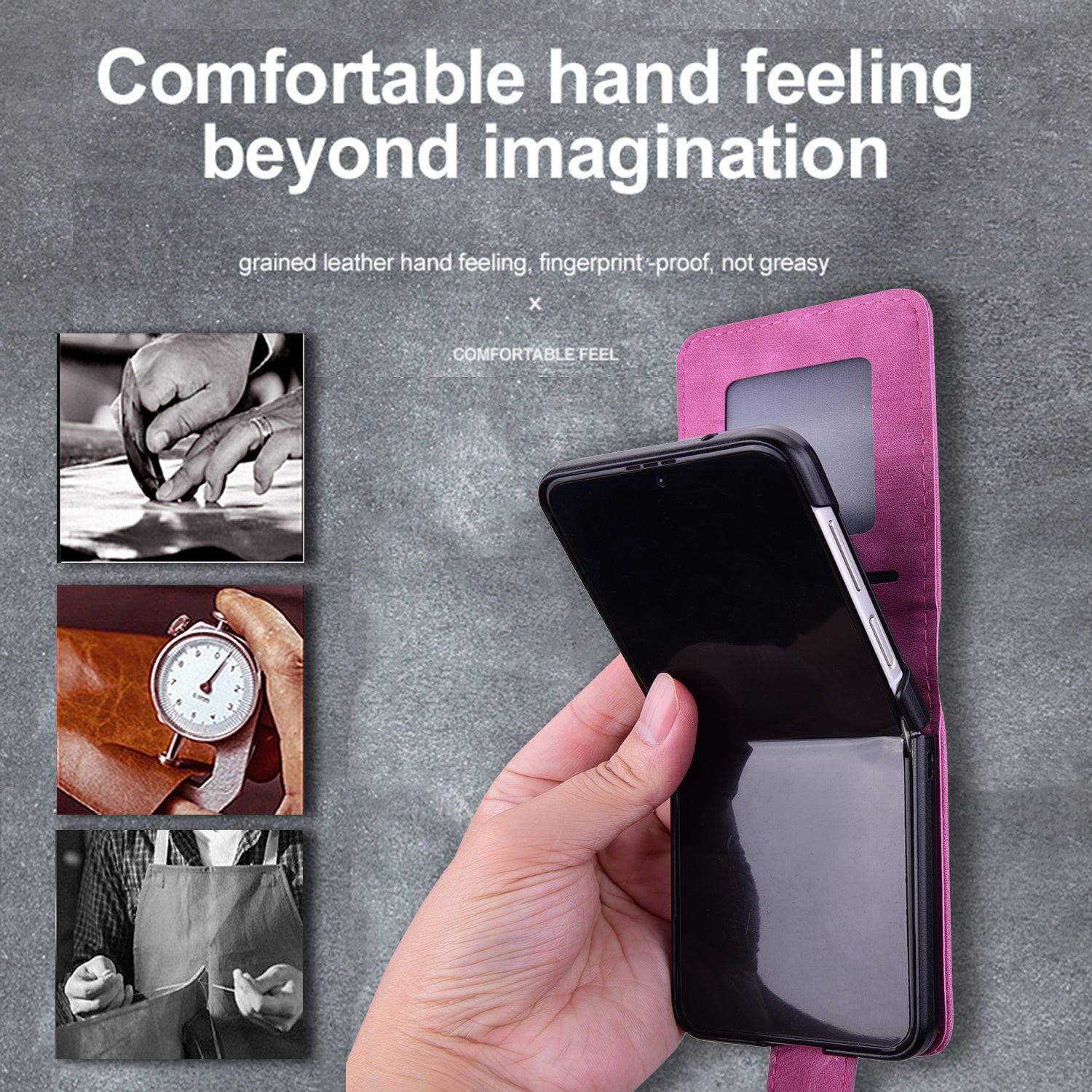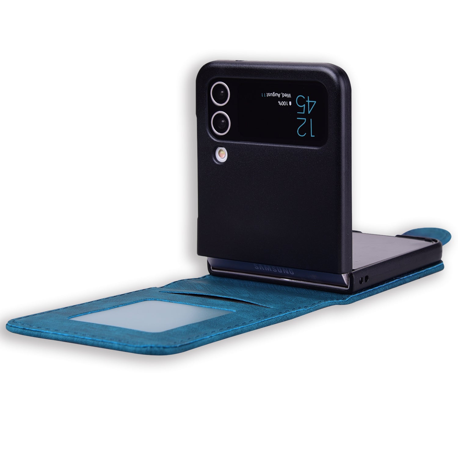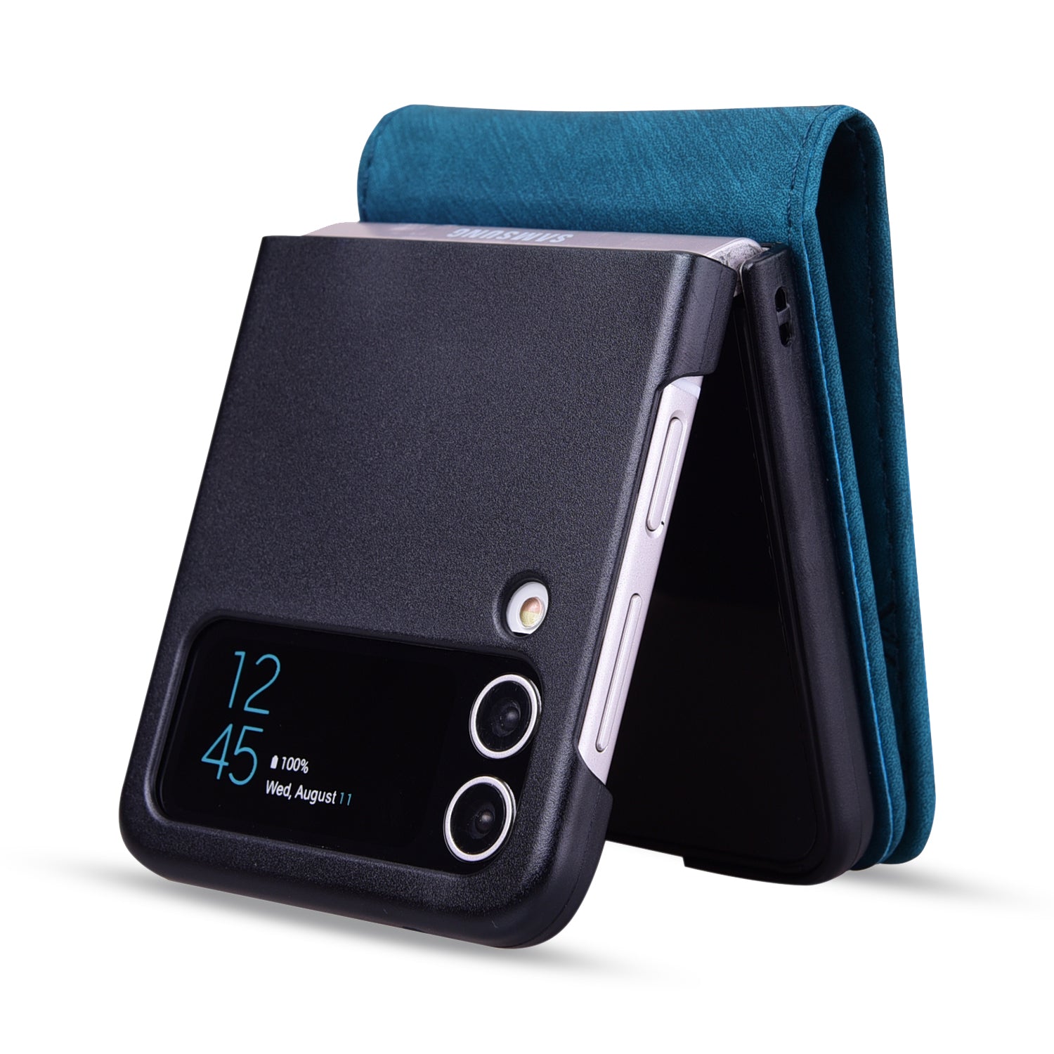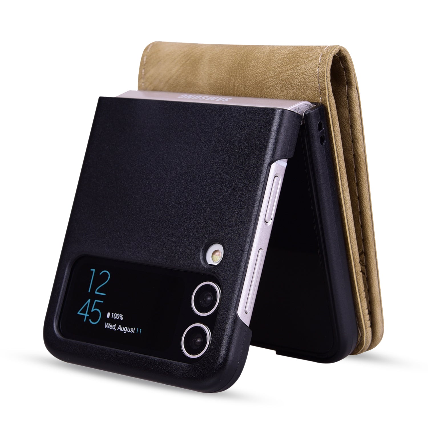For Samsung Galaxy Z Flip4 5G PU Leather Card Holder Phone Case Imprinted Cat Flower Anti-drop Cover
