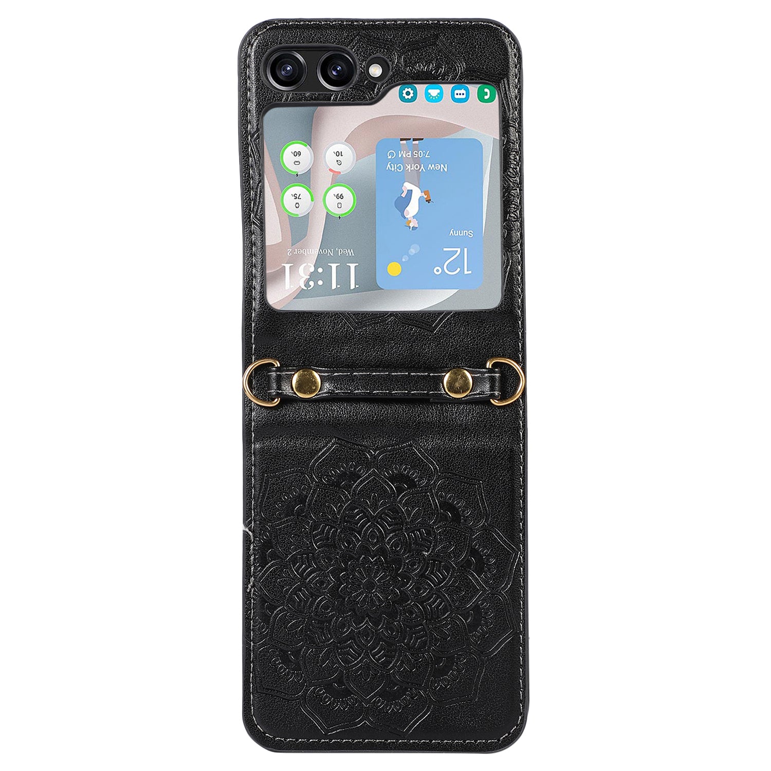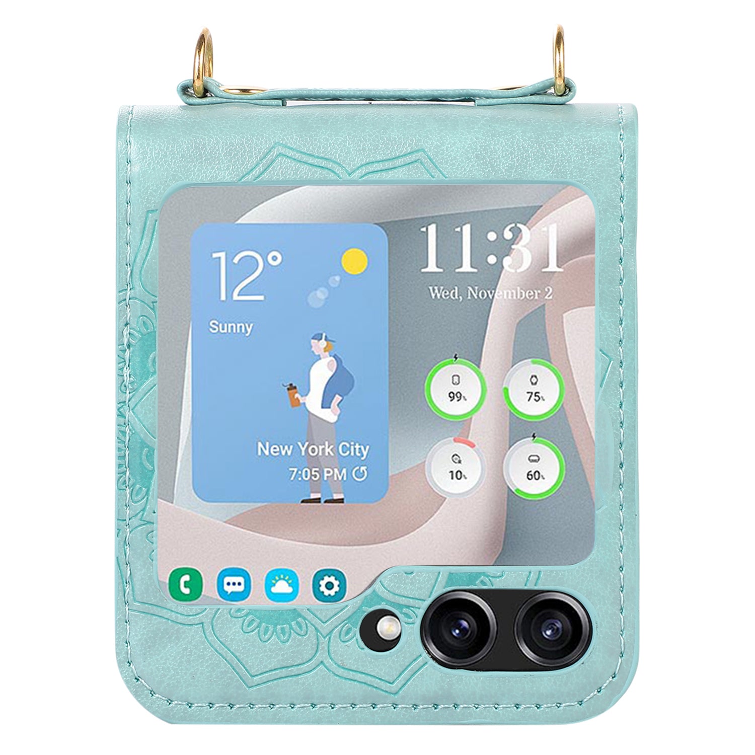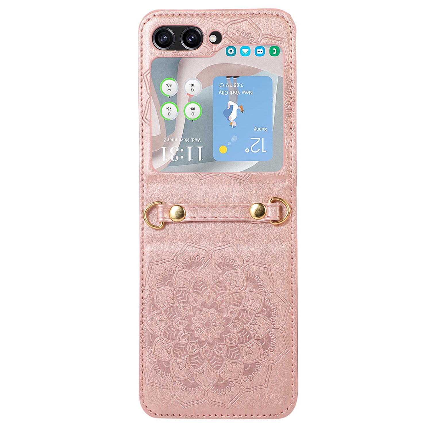For Samsung Galaxy Z Flip5 5G Flower Imprinted Phone Case Anti-Drop PU Leather PC Cover with Shoulder Strap