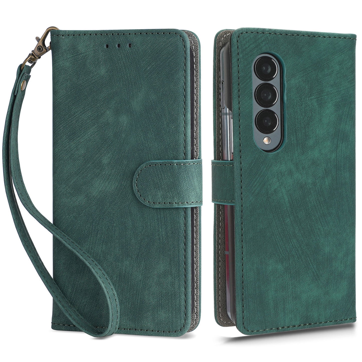 For Samsung Galaxy Z Fold3 5G Leather Phone Case RFID Blocking Wallet Stand Smartphone Cover with Strap