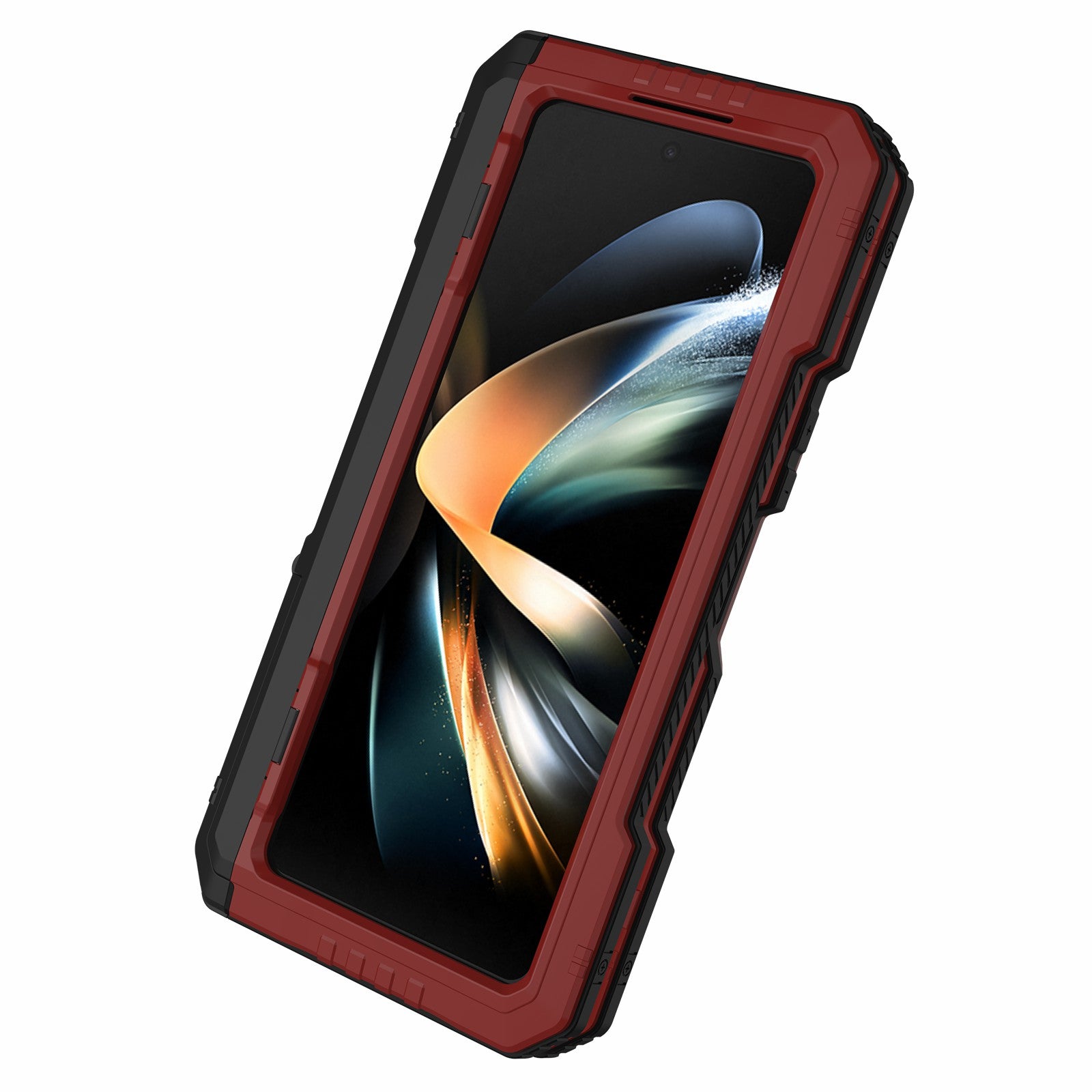 For Samsung Galaxy Z Fold4 5G Aluminium Alloy + Silicone Phone Case Shockproof Dustproof Kickstand Protective Cover with Screen Protector