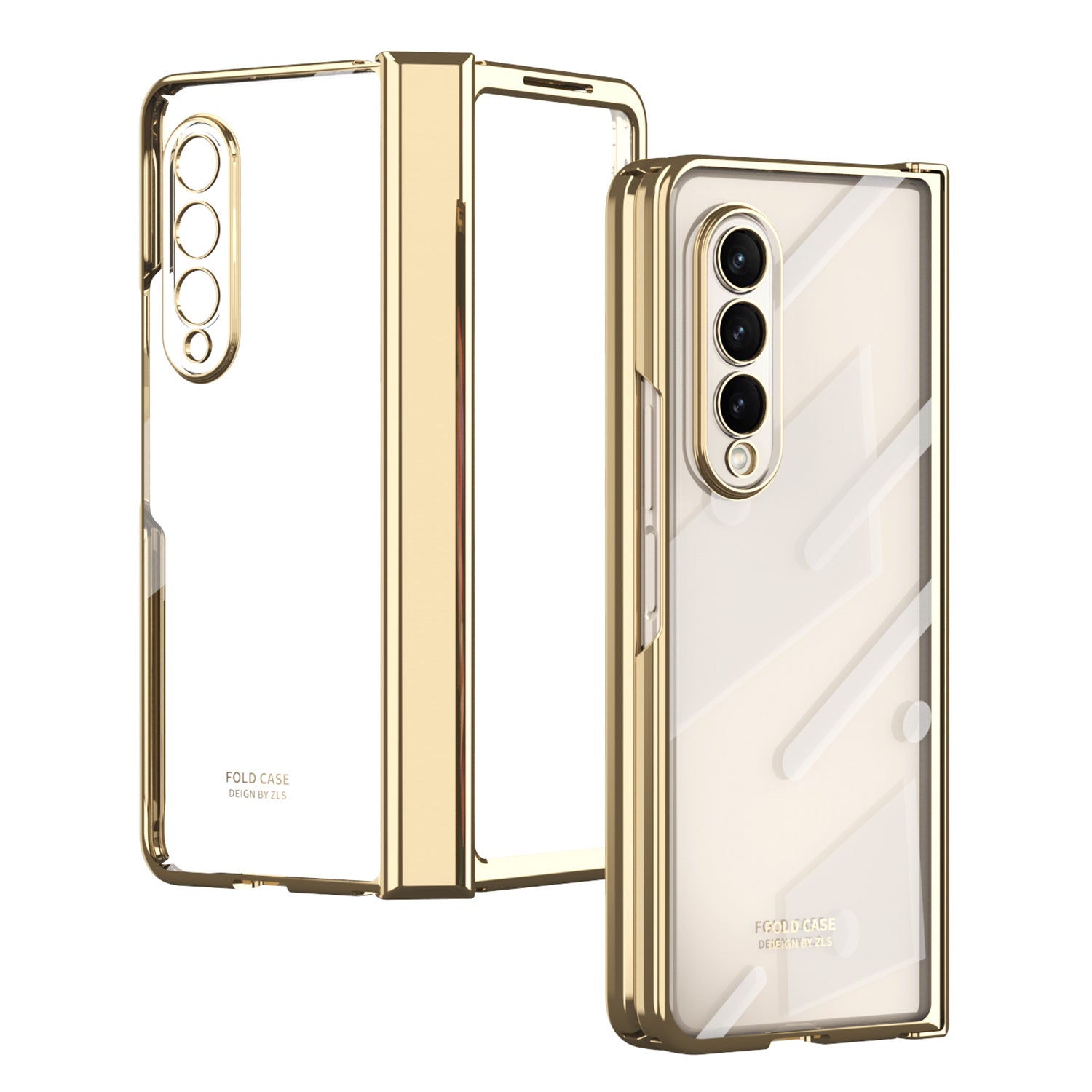 For Samsung Galaxy Z Fold4 5G Electroplating High Transparency Folding Phone Case with Tempered Glass Film