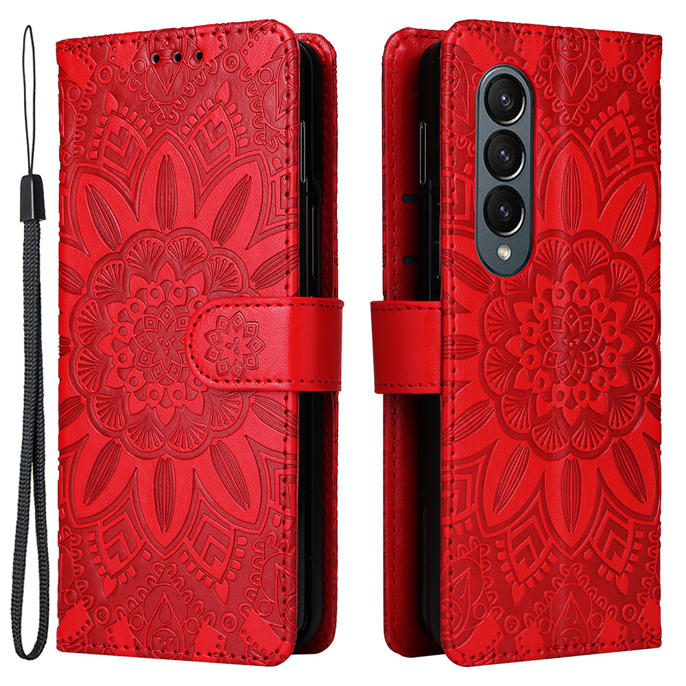 For Samsung Galaxy Z Fold4 5G Leather Stand Phone Case Sunflower Imprinted Wallet Folding Phone Cover with Strap