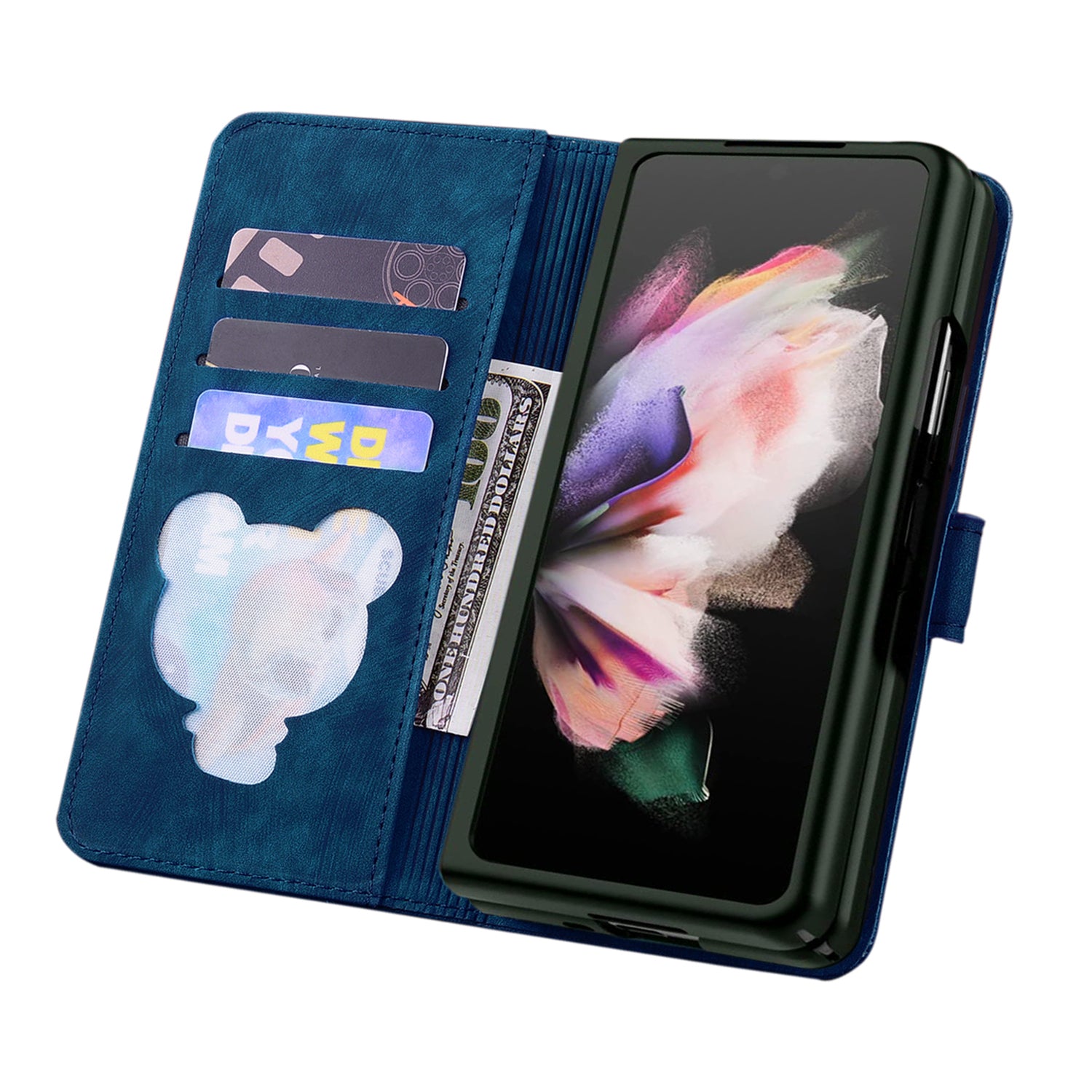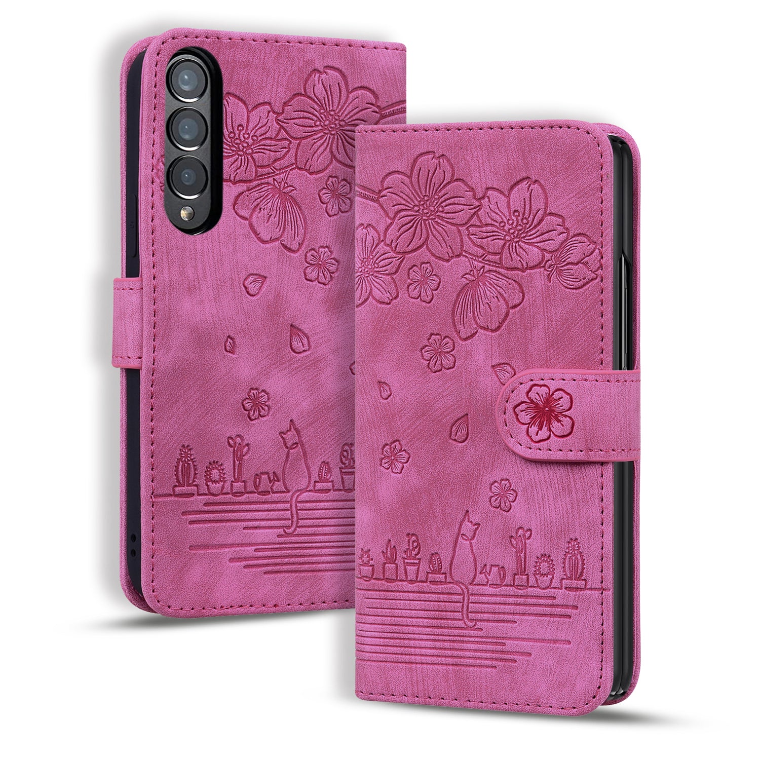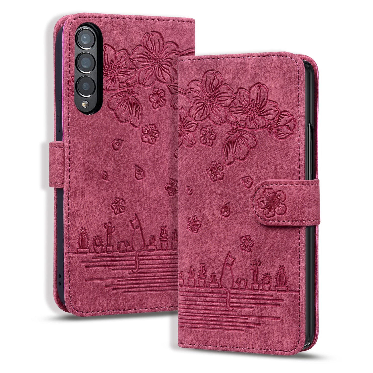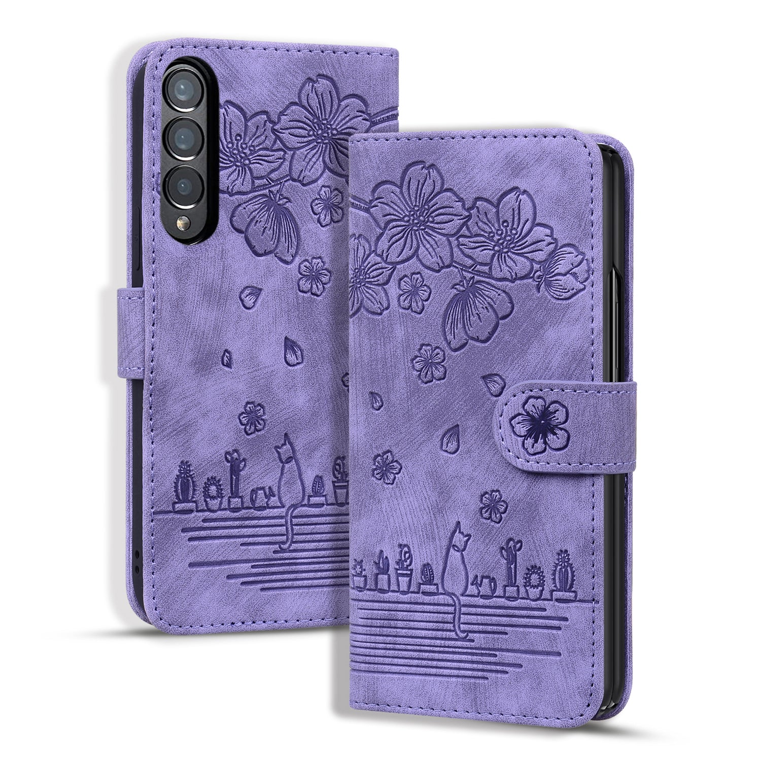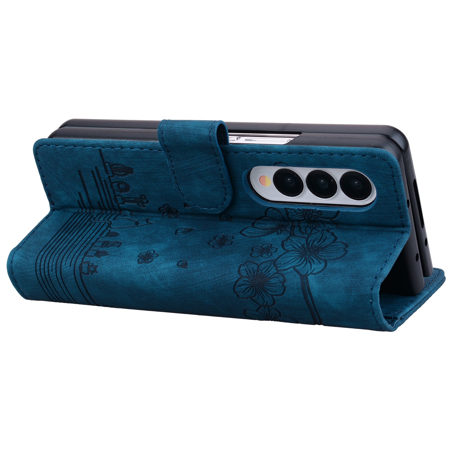 For Samsung Galaxy Z Fold4 5G PU Leather Phone Case Imprinted Cat Stand Wallet Cover with Hand Strap
