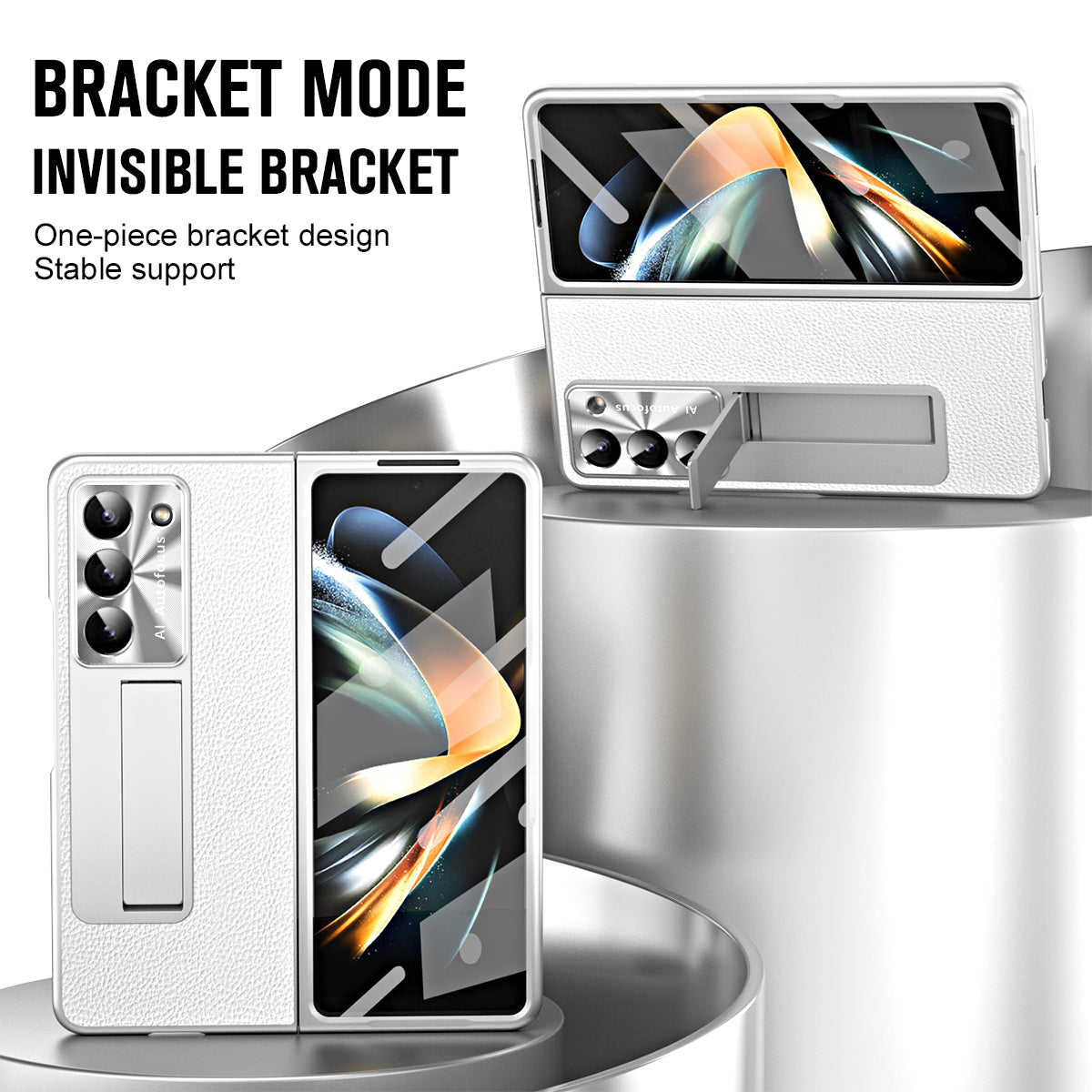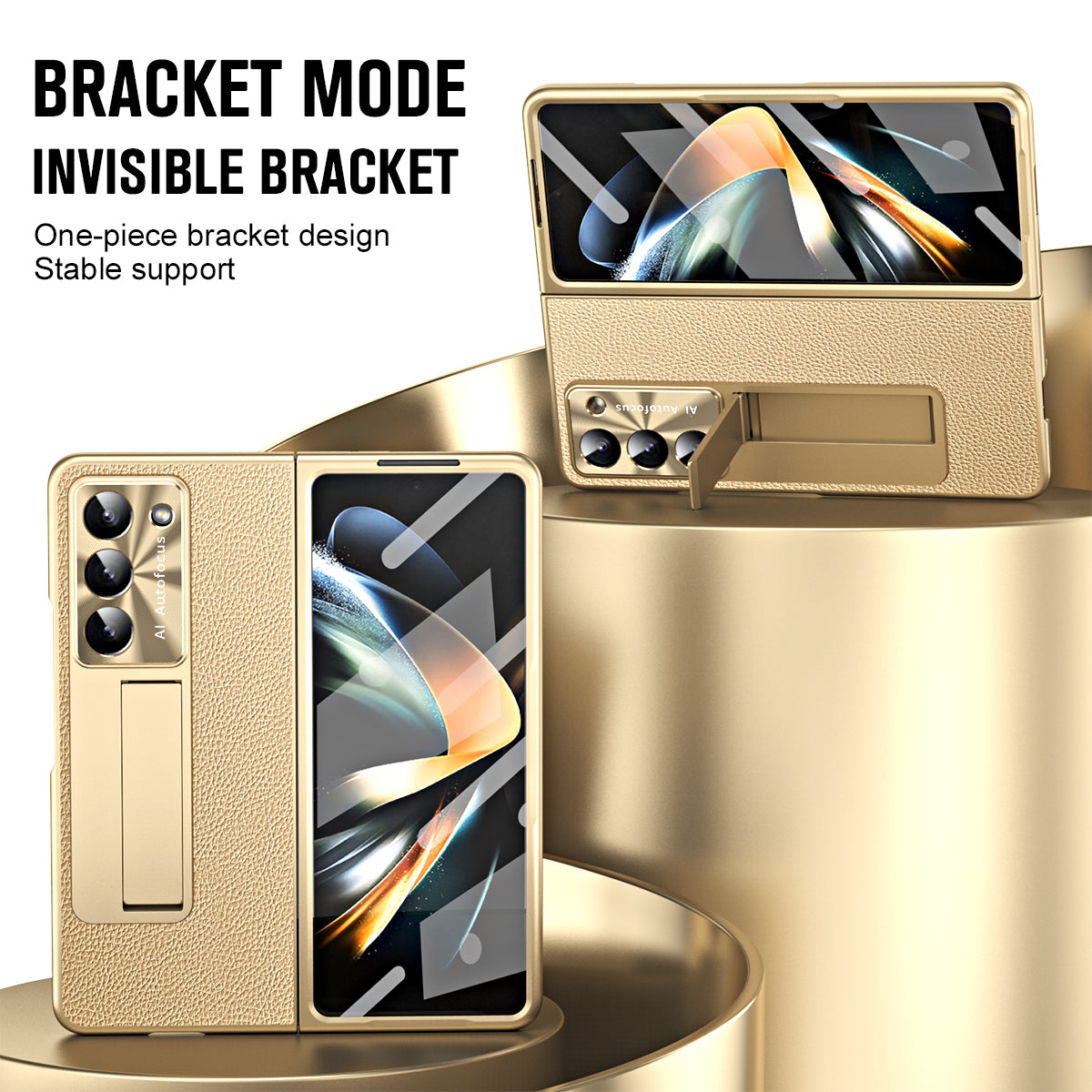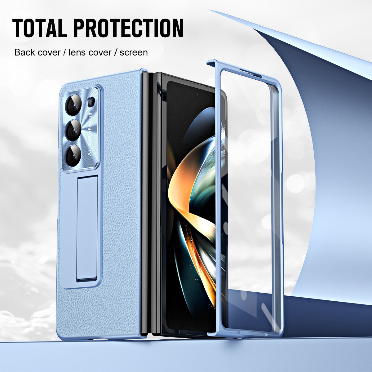 For Samsung Galaxy Z Fold5 5G Litchi Texture Leather PC Case Shockproof Kickstand Phone Cover