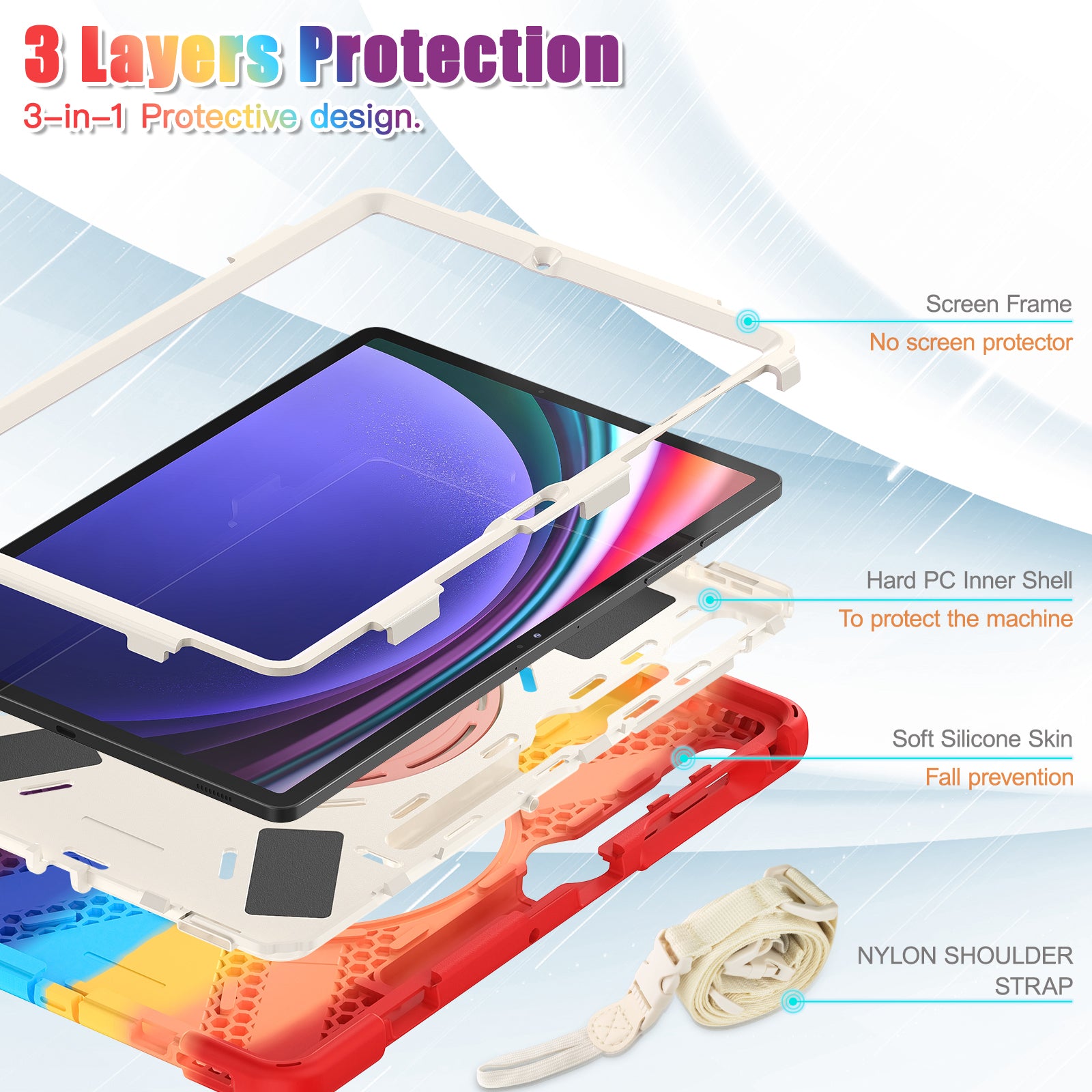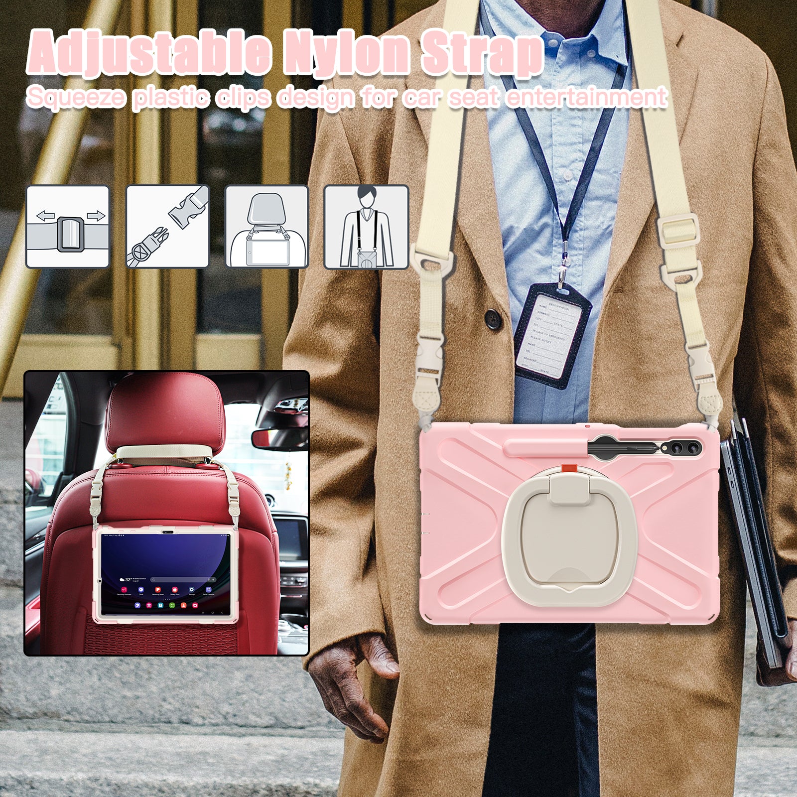 For Samsung Samsung Galaxy Tab S9 FE+ / S9+ / S8+ / S7+ Kickstand Tablet Case Shockproof PC+Silicone Cover, Shoulder Strap