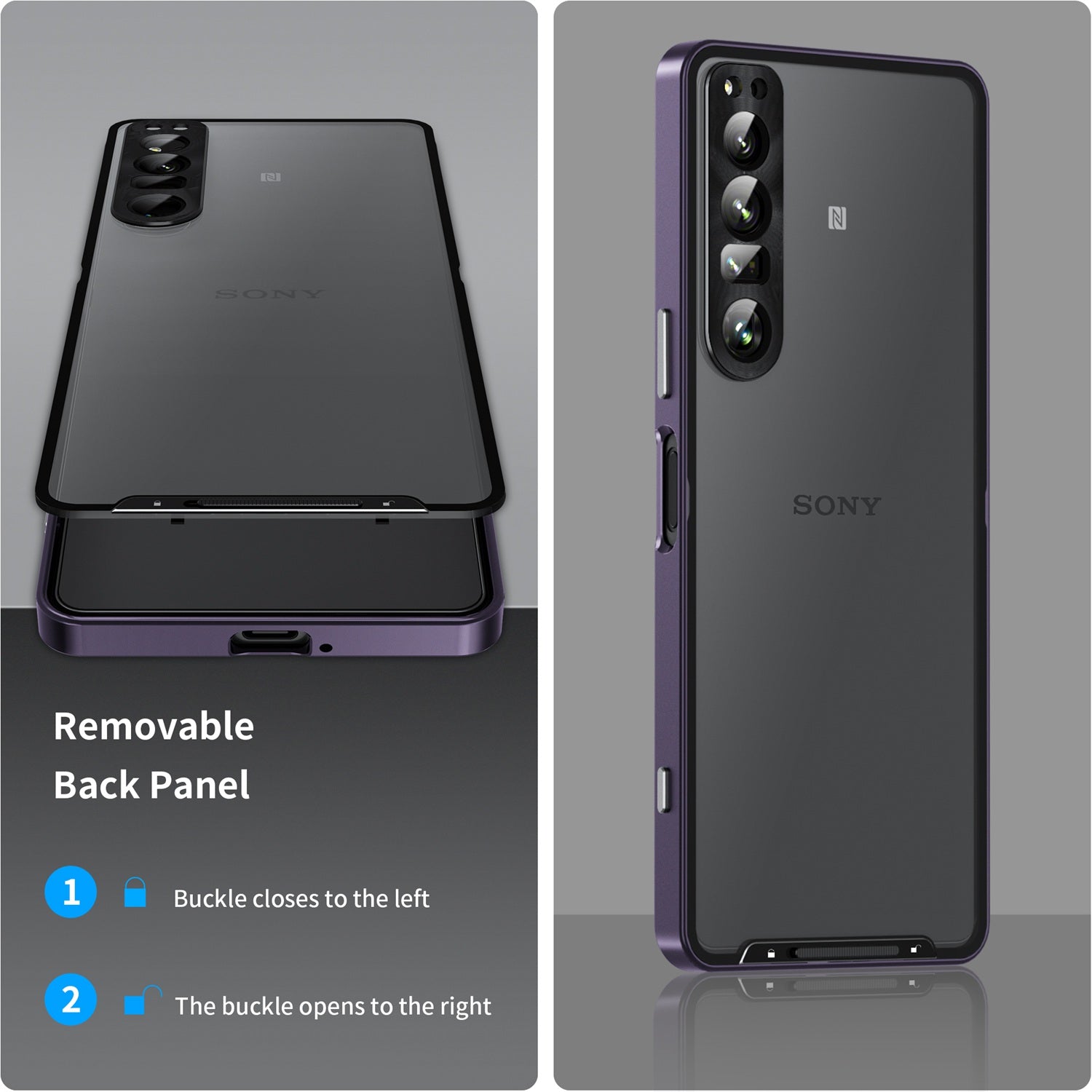 For Sony Xperia 1 IV 5G Aluminium Alloy Frame+TPU Anti-scratch Phone Back Cover Anti-drop Detachable 2-in-1 Matte Phone Case with Lens Cover+Lens Film
