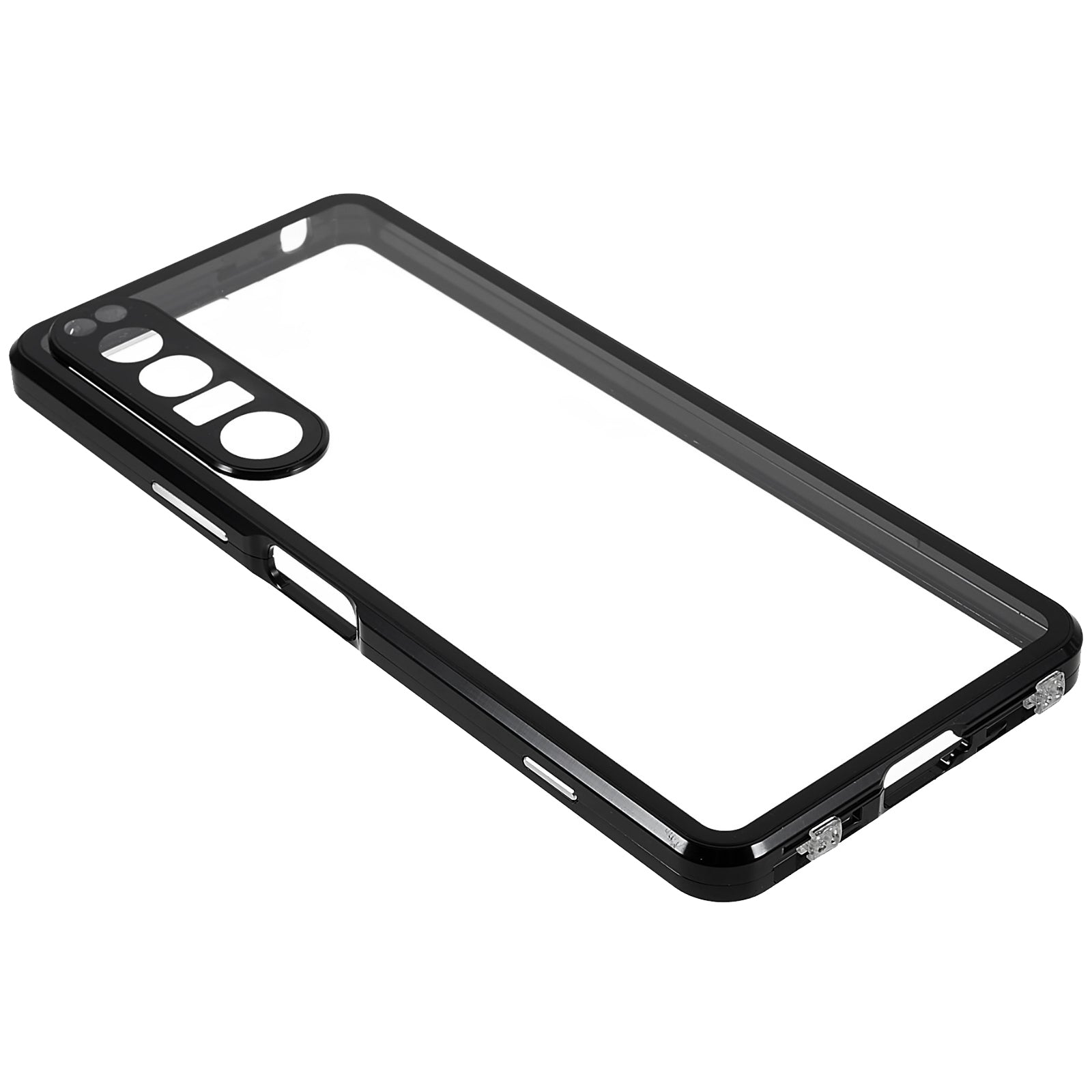 For Sony Xperia 1 IV 5G Anti-drop Anti-wear Metal Frame + Tempered Glass + PC Hybrid Cover Magnetic Closure Phone Shell Case