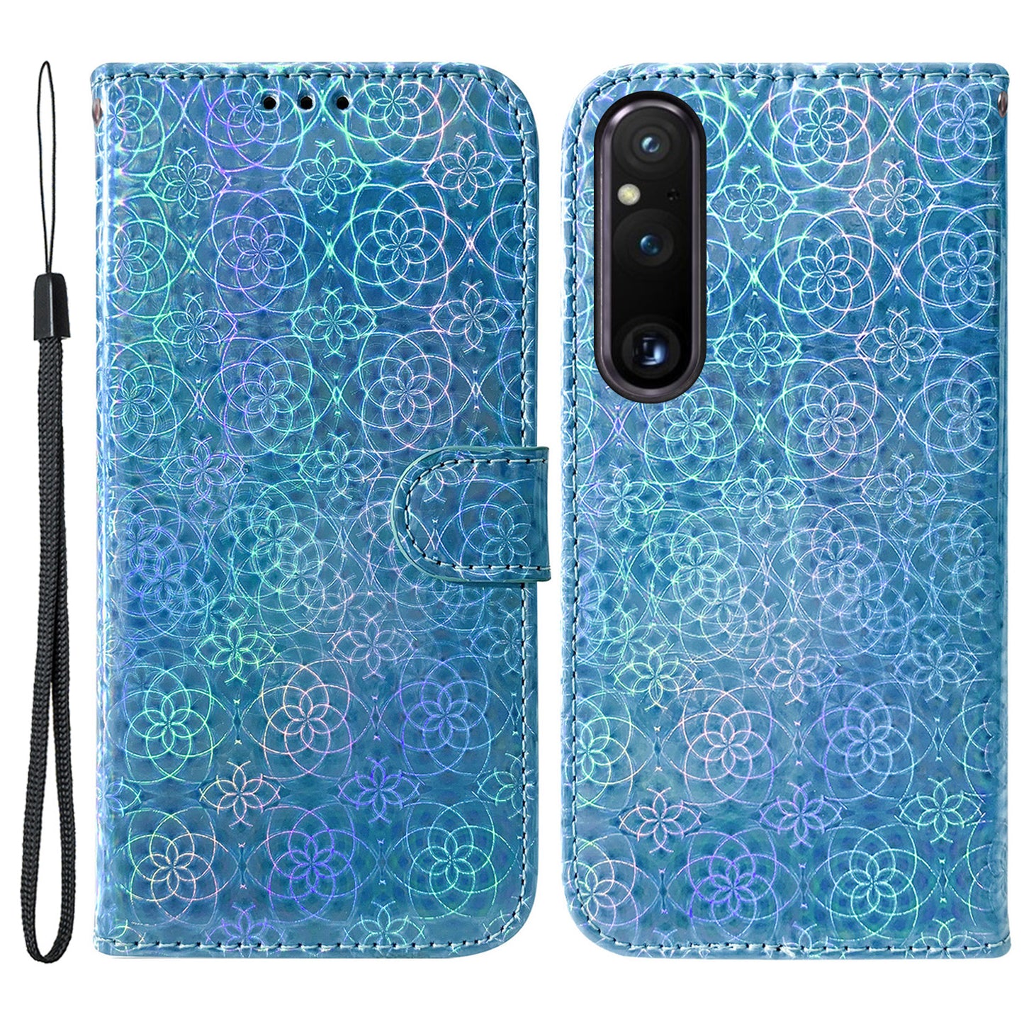 For Sony Xperia 1 V Leather Phone Case Dazzling Flower Pattern Anti-scratch Wallet Stand Cover